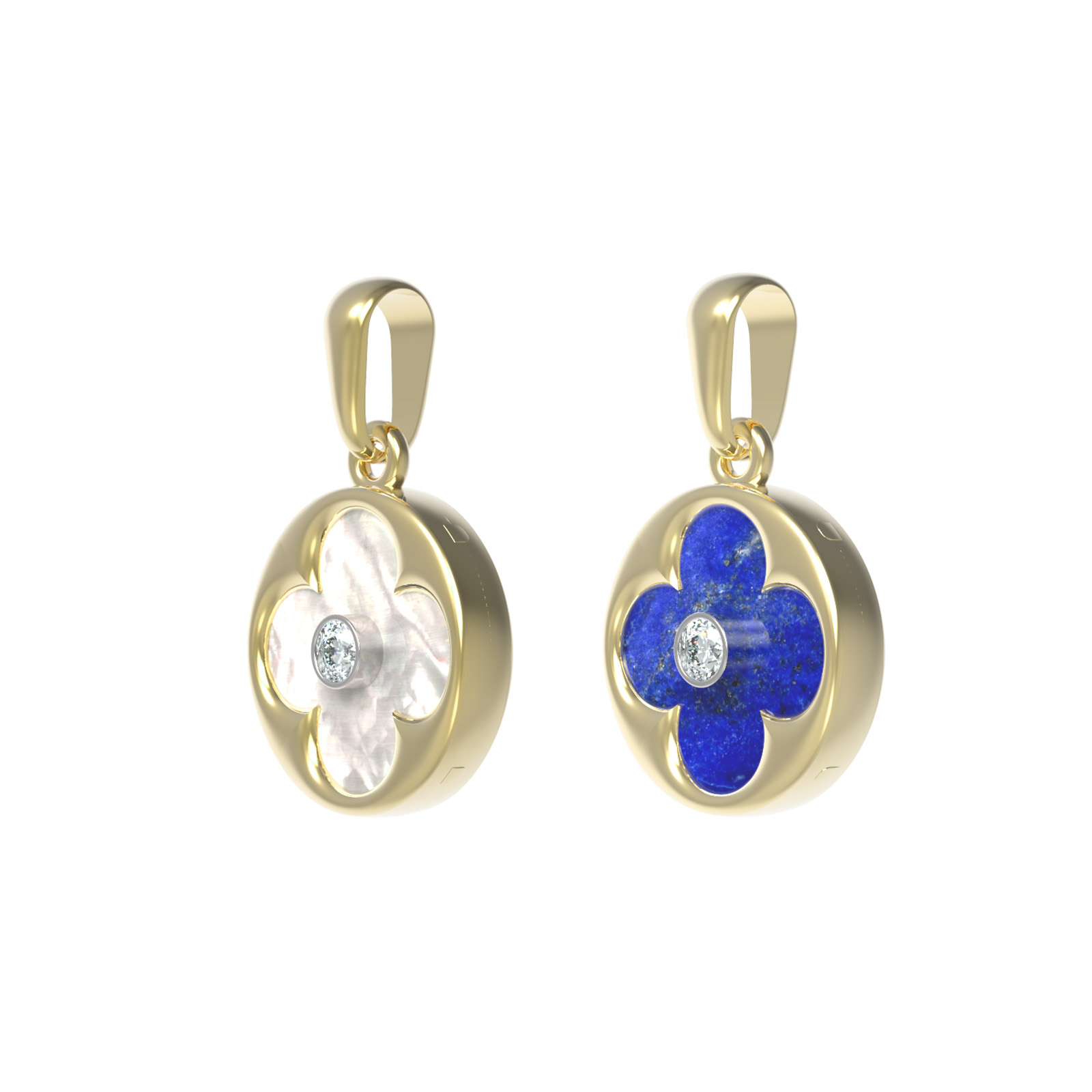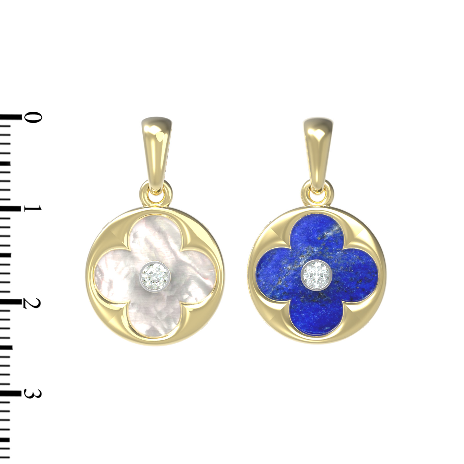 Подвеска из лимонного золота 585 пробы c бриллиантами, лазуритом и перламутром