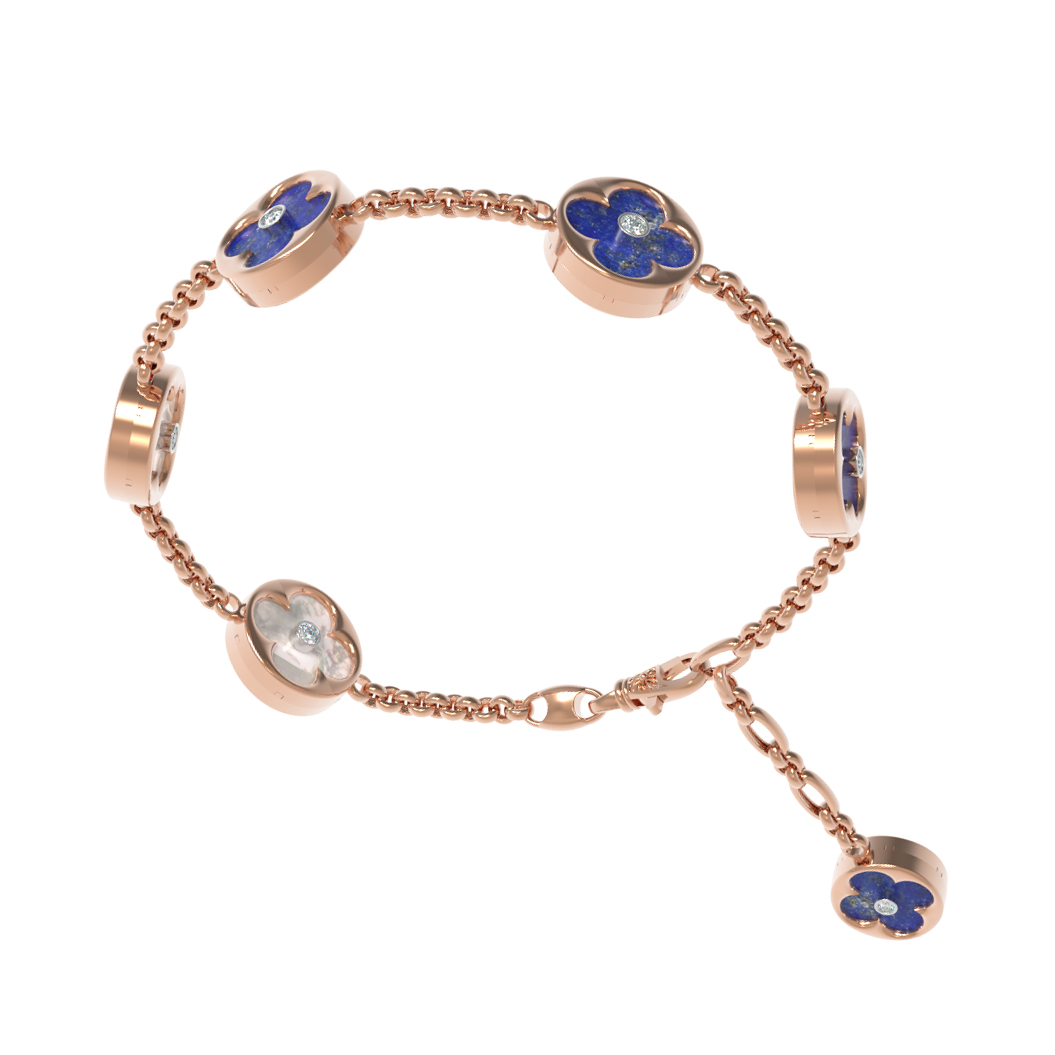 Браслет из золота c бриллиантами, лазуритом и перламутром