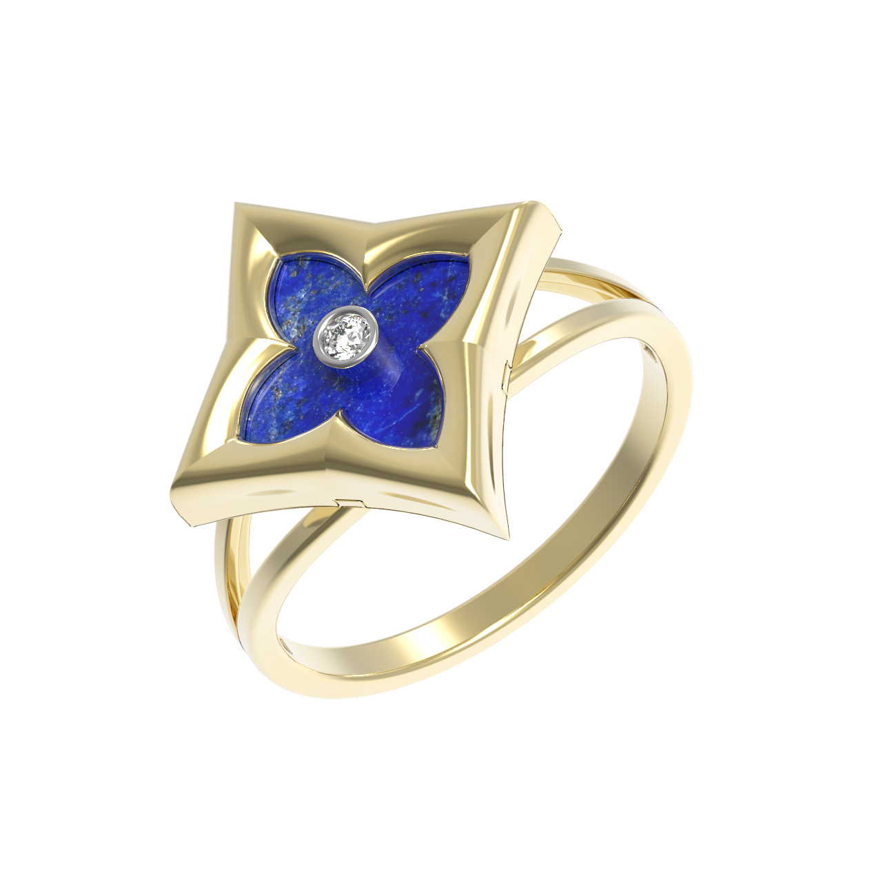 Кольцо из лимонного золота 585 пробы c бриллиантами и лазуритом