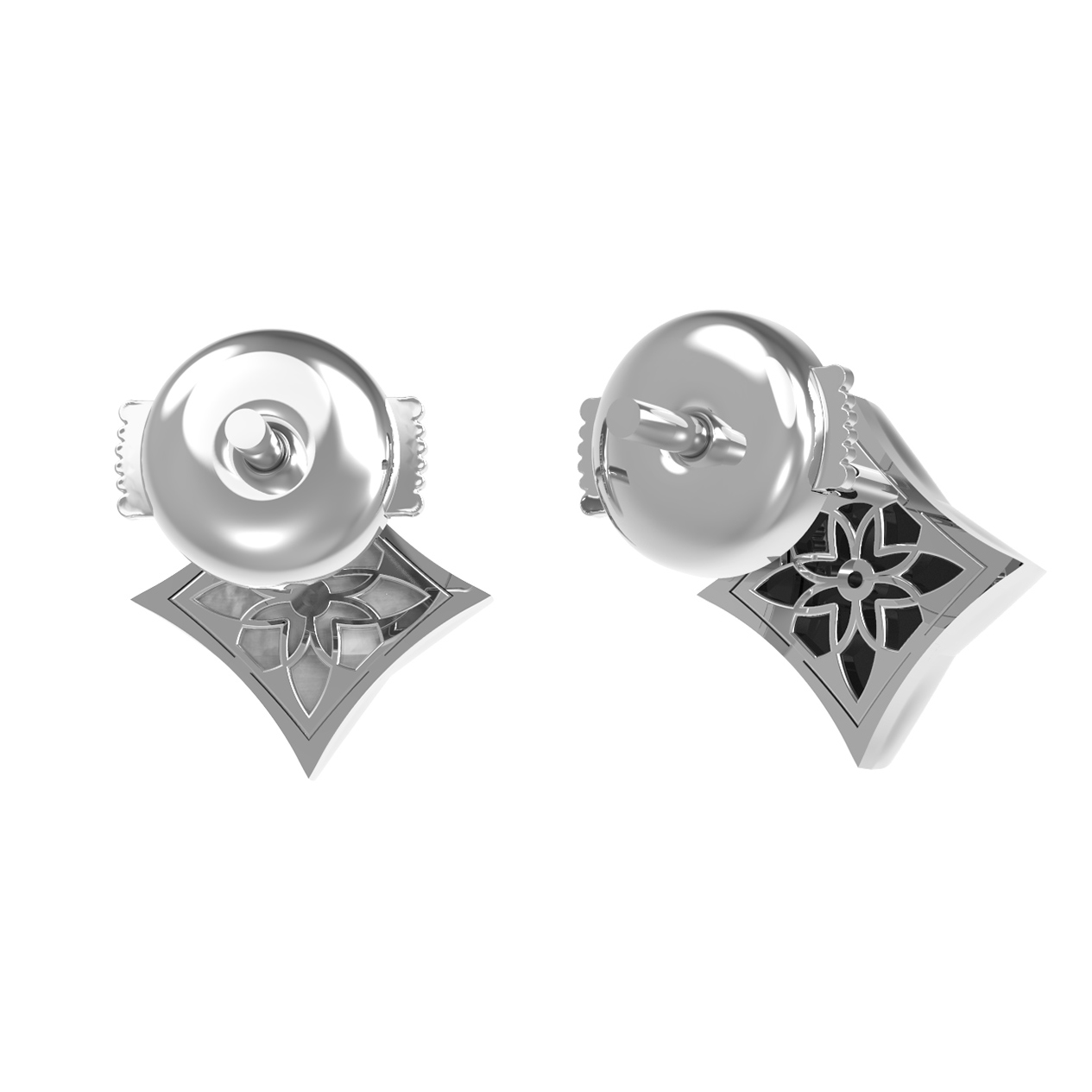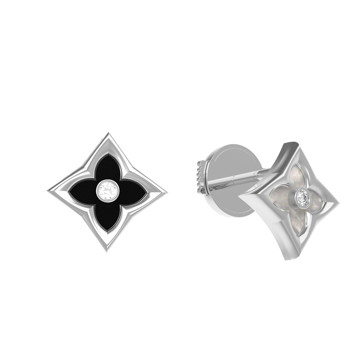Центральным элементом композиции является изящная вставка в форме ромба, внутри которой деликатно расположился круглый бриллиант, придающий аксессуару роскошное сияние. Общий дизайн дополняют глубокий черный оникс и нежный перламутр, создавая элегантный баланс между строгой классикой и современным стилем. В изделии используется всего 3 вставки, что подчеркивает лаконичность и завершенность формы. Белый цвет золотого основания идеально гармонирует с белыми, перламутровыми и черными оттенками вставок, позволяя серьгам безупречно вписаться в любой гардероб.