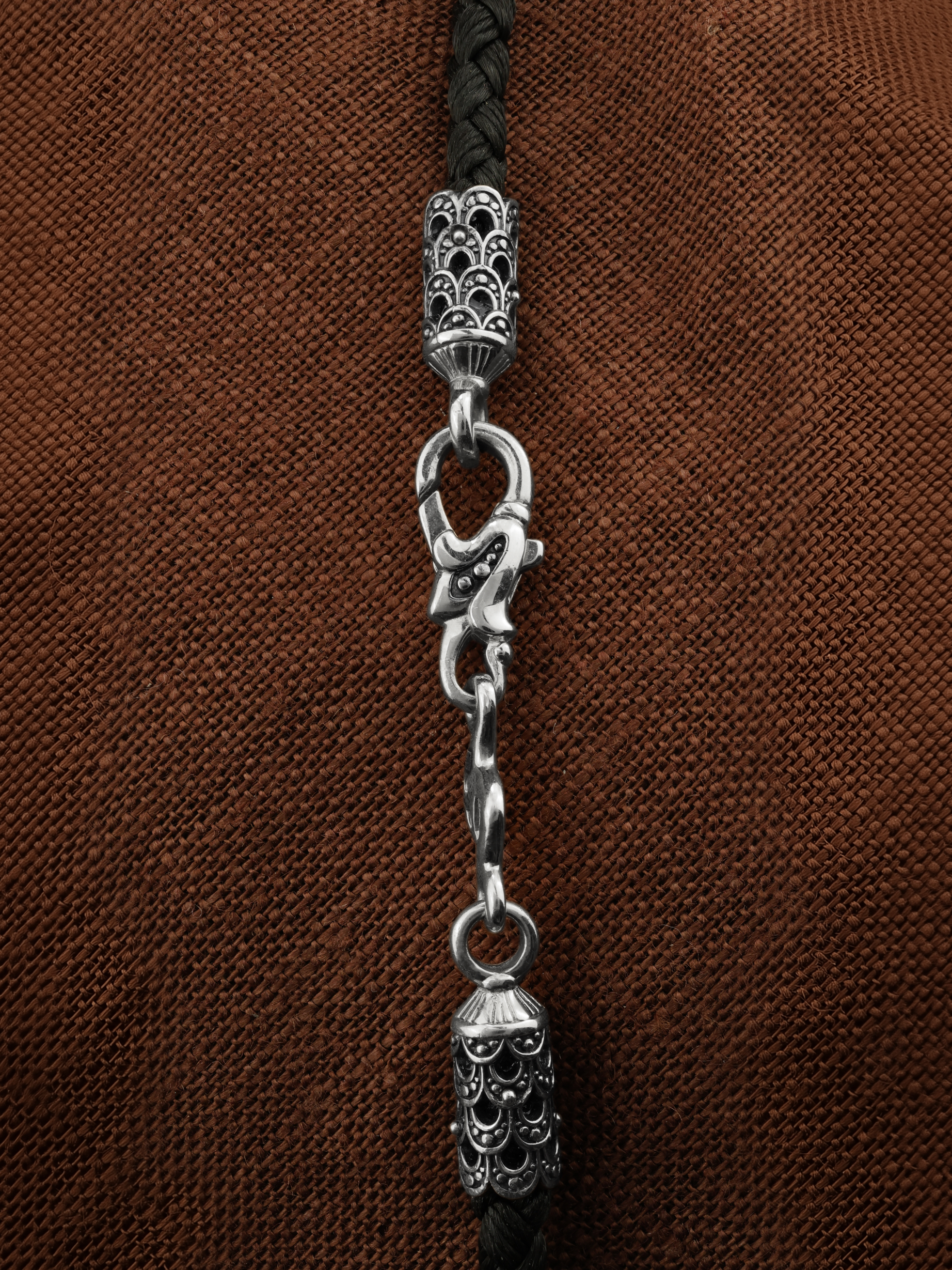 Шнурок шёлковый из белого золота c шёлковым шнурком