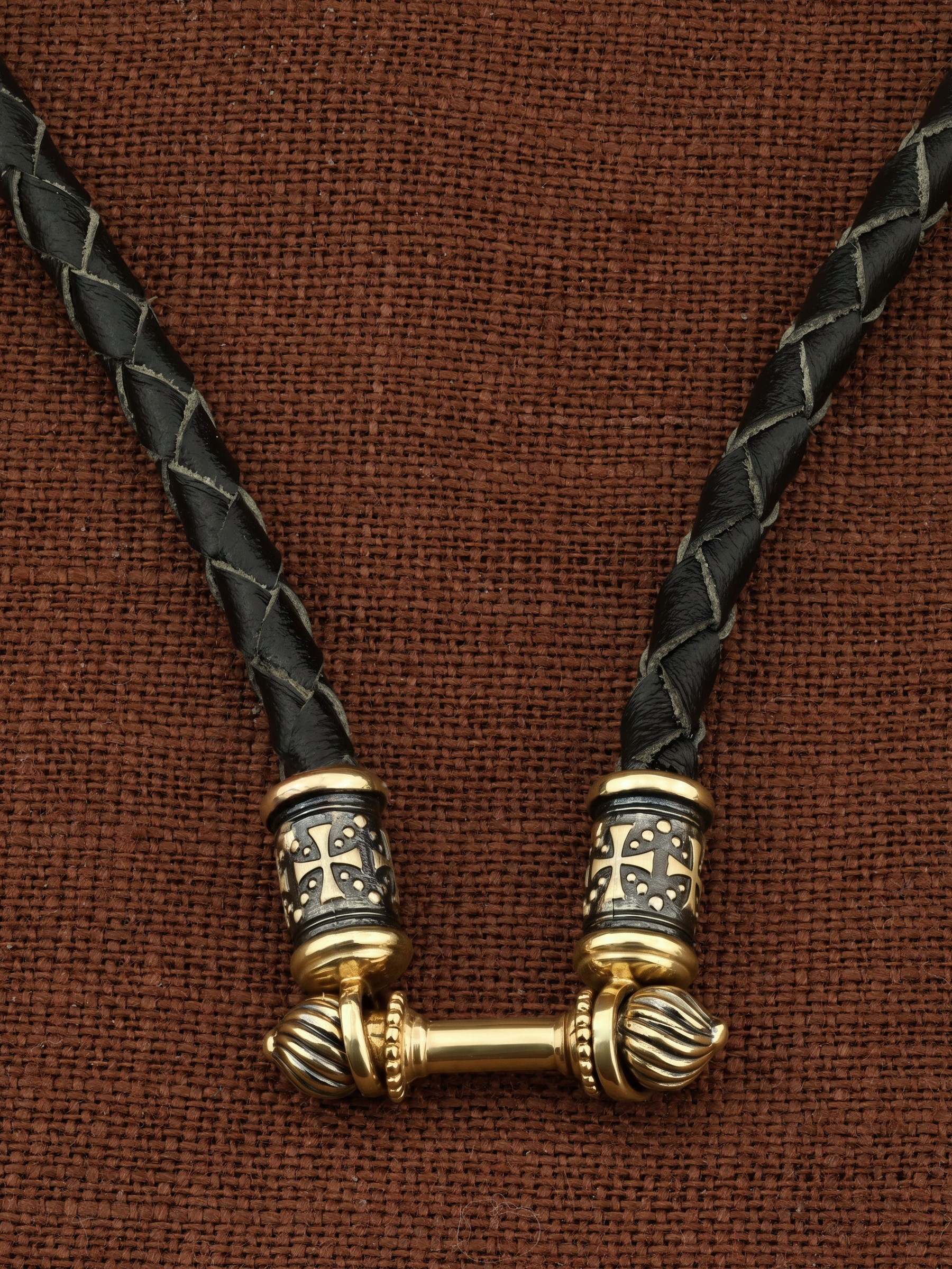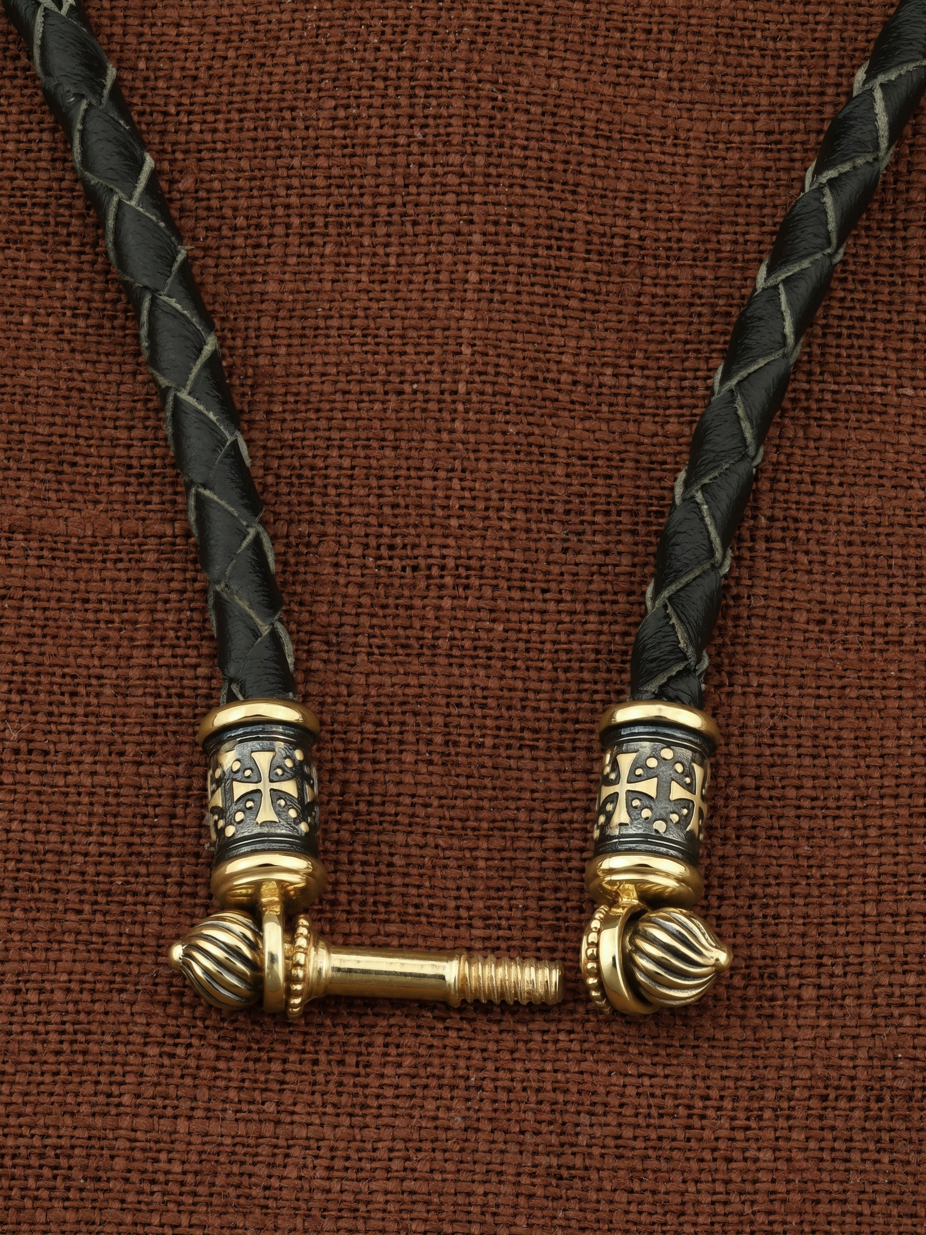 Гайтан из лимонного золота c кожаным шнурком