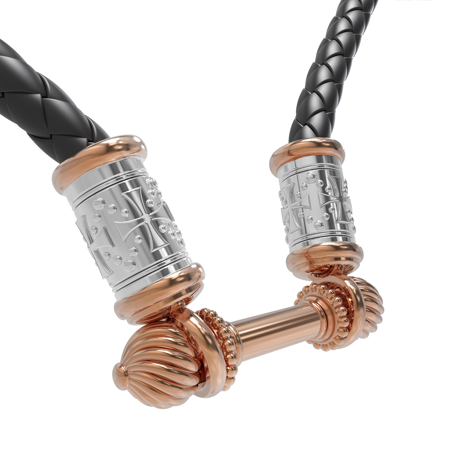 Цепь-шнурок кожа из красного золота 585 пробы c кожаным шнурком