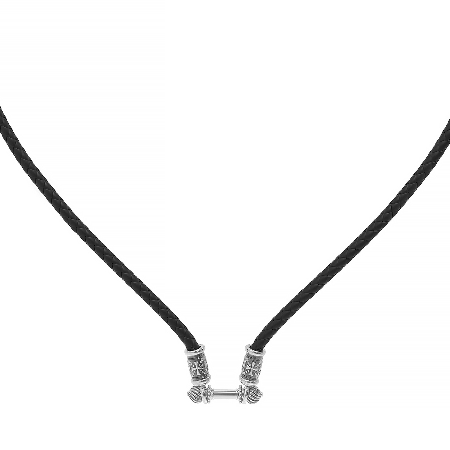 Цепь-шнурок кожа из белого золота 585 пробы c кожаным шнурком