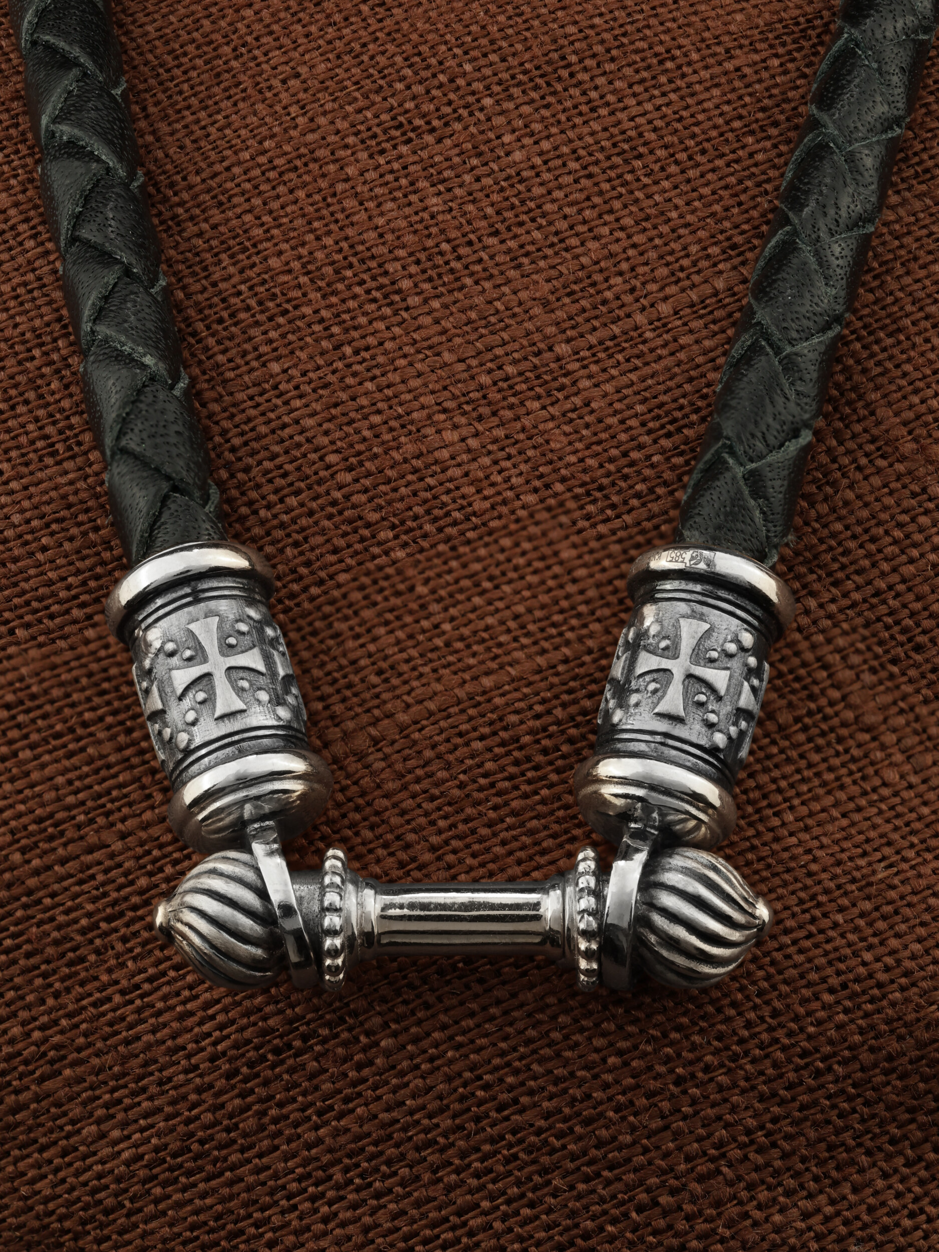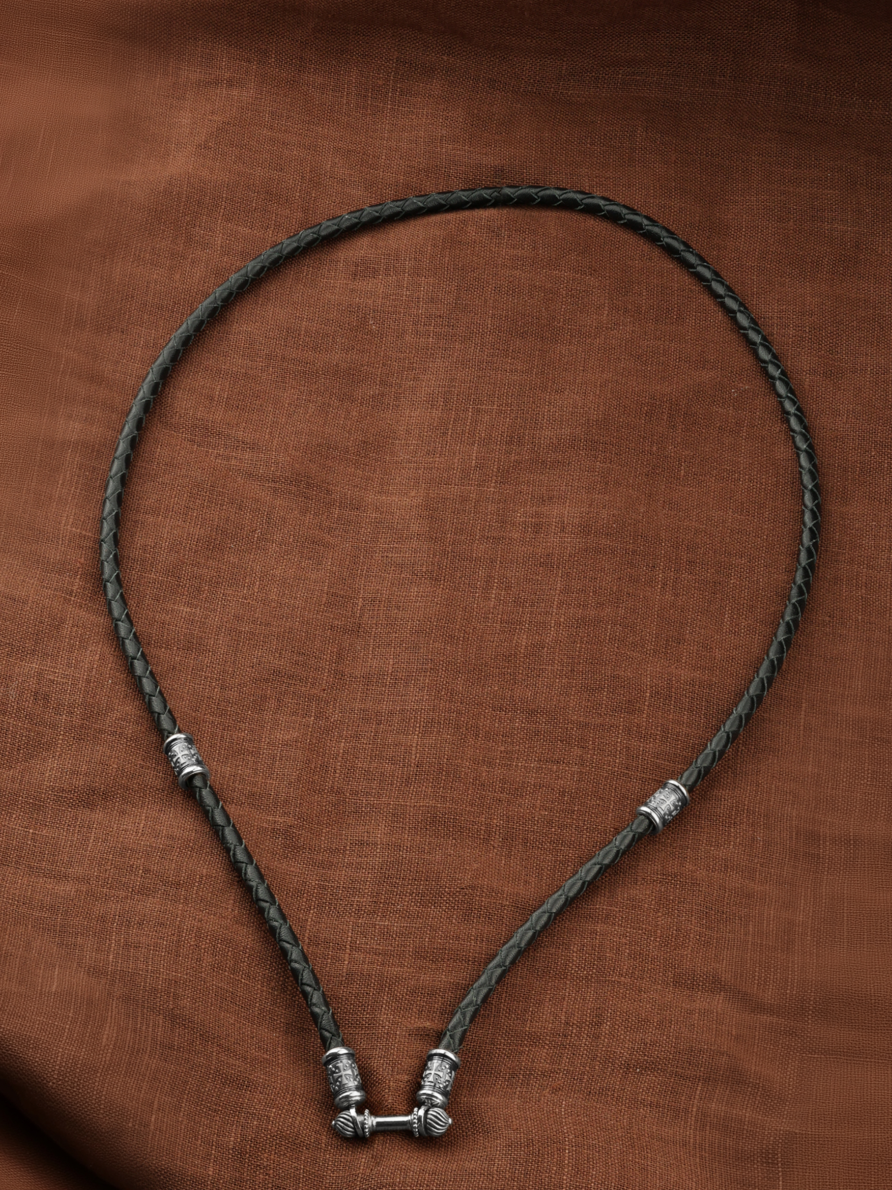 Цепь-шнурок кожа из белого золота 585 пробы c кожаным шнурком