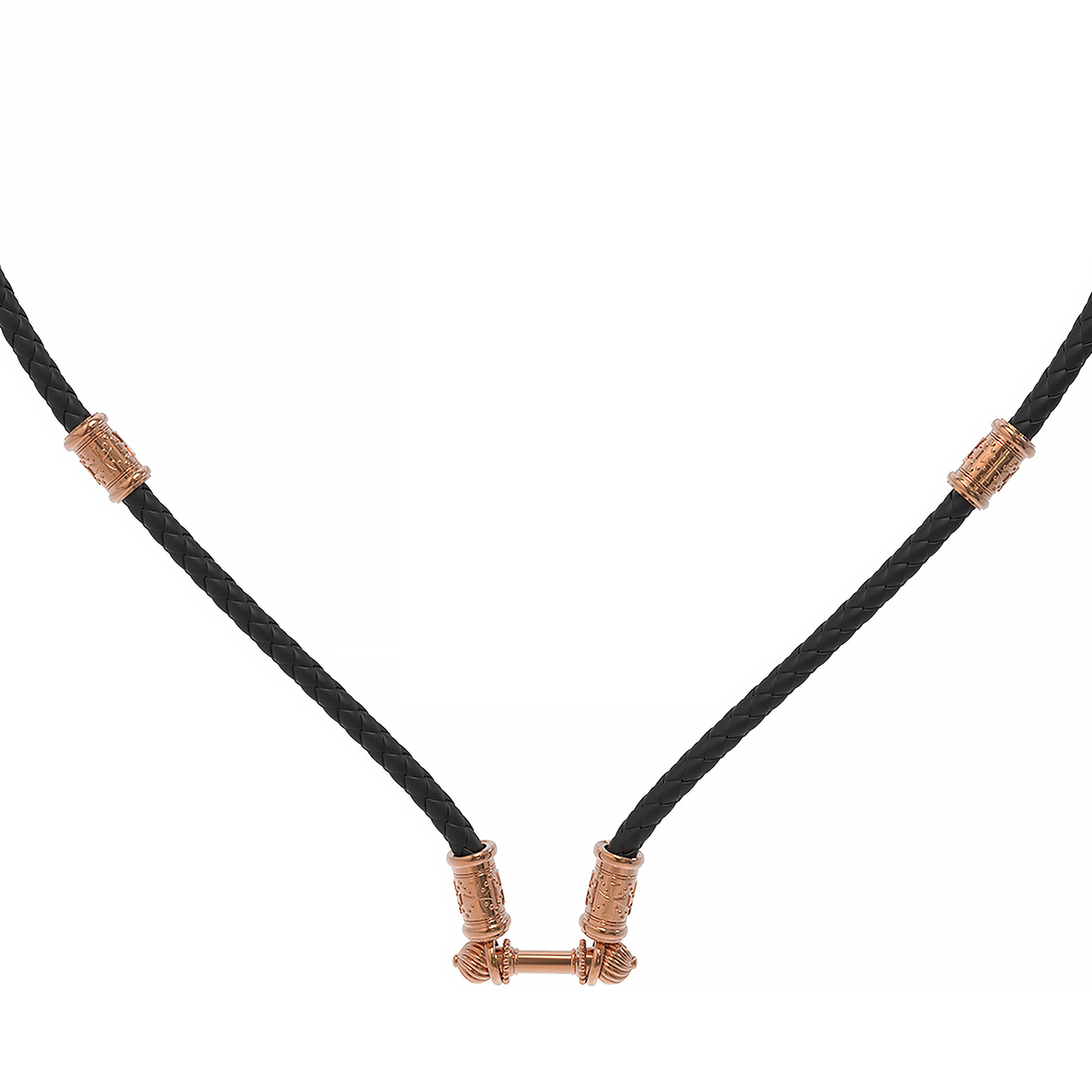 Цепь-шнурок кожа из красного золота 585 пробы c кожаным шнурком