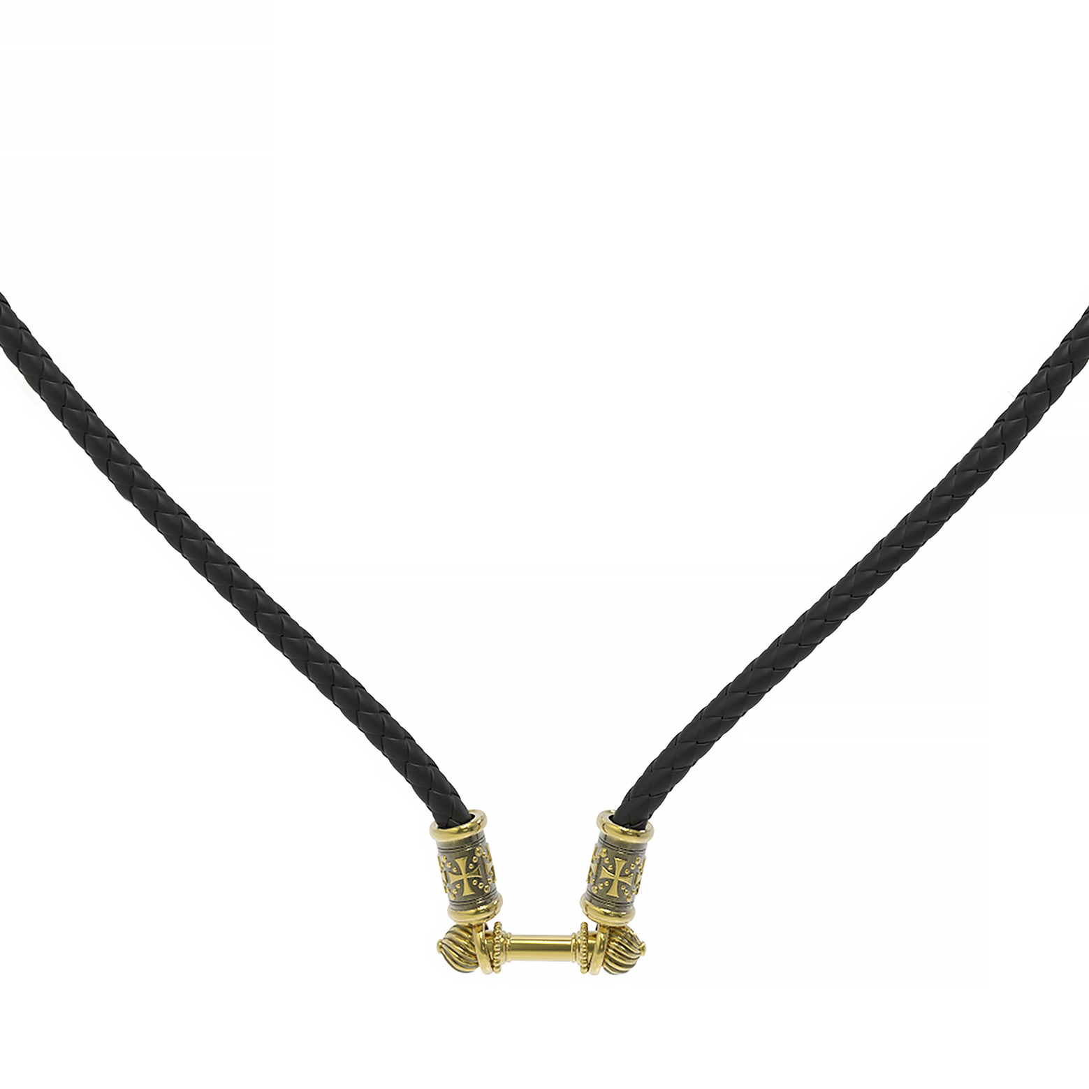 Цепь-шнурок кожа из лимонного золота 585 пробы c кожаным шнурком