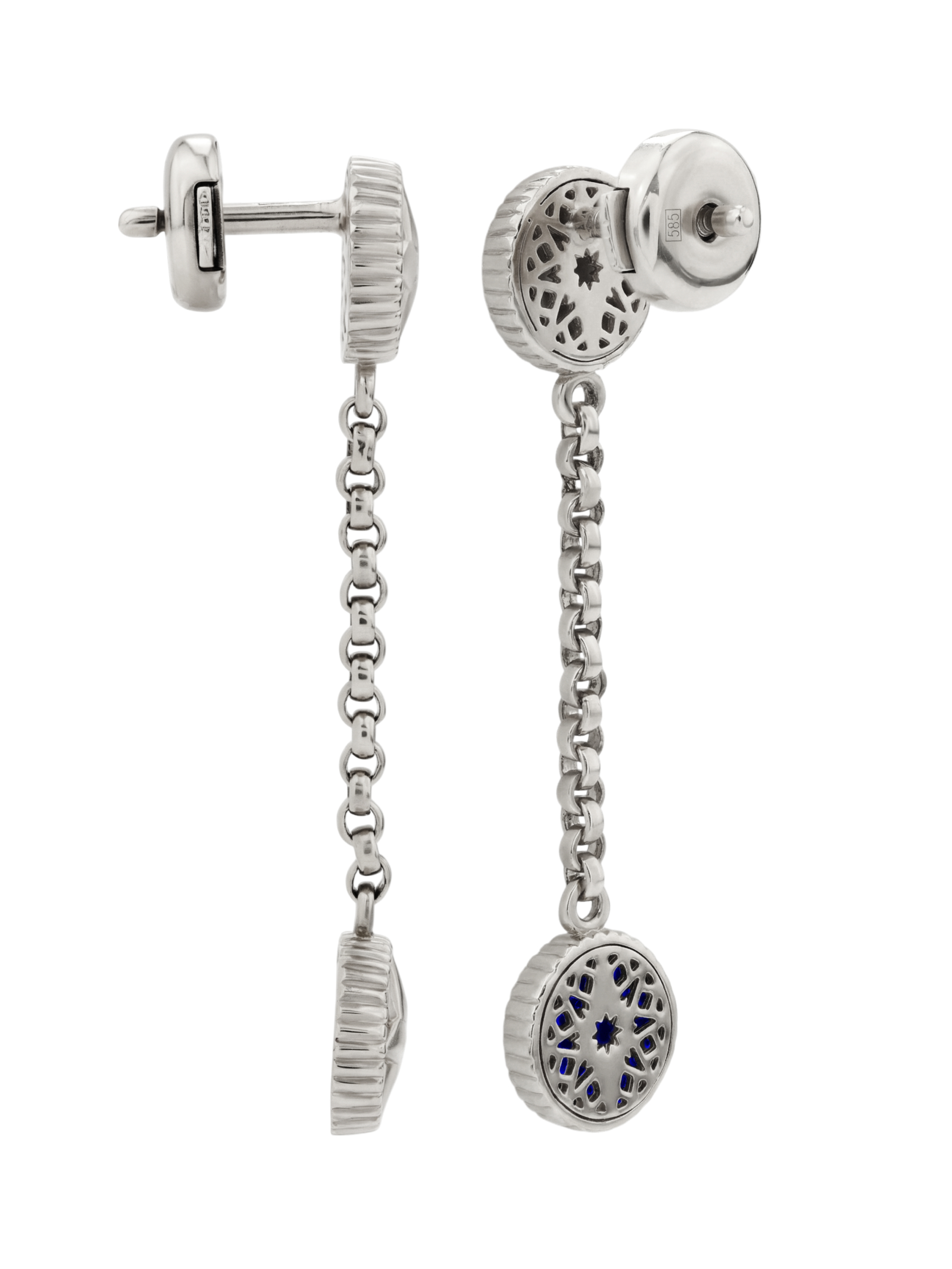 Эффектные серьги из белого золота 585 пробы из коллекции De Luxe — Звёзды — Бриллианты станут воплощением утонченного стиля и глубокого смысла. Дизайн изделия вдохновлен образом звезд, которые издавна служили ориентиром для путешественников, превращая украшение в символ верного пути и вдохновения. Каждая деталь продумана до мелочей: элегантная подвесная часть на цепочке гармонично сочетает строгость линий и роскошь материалов.