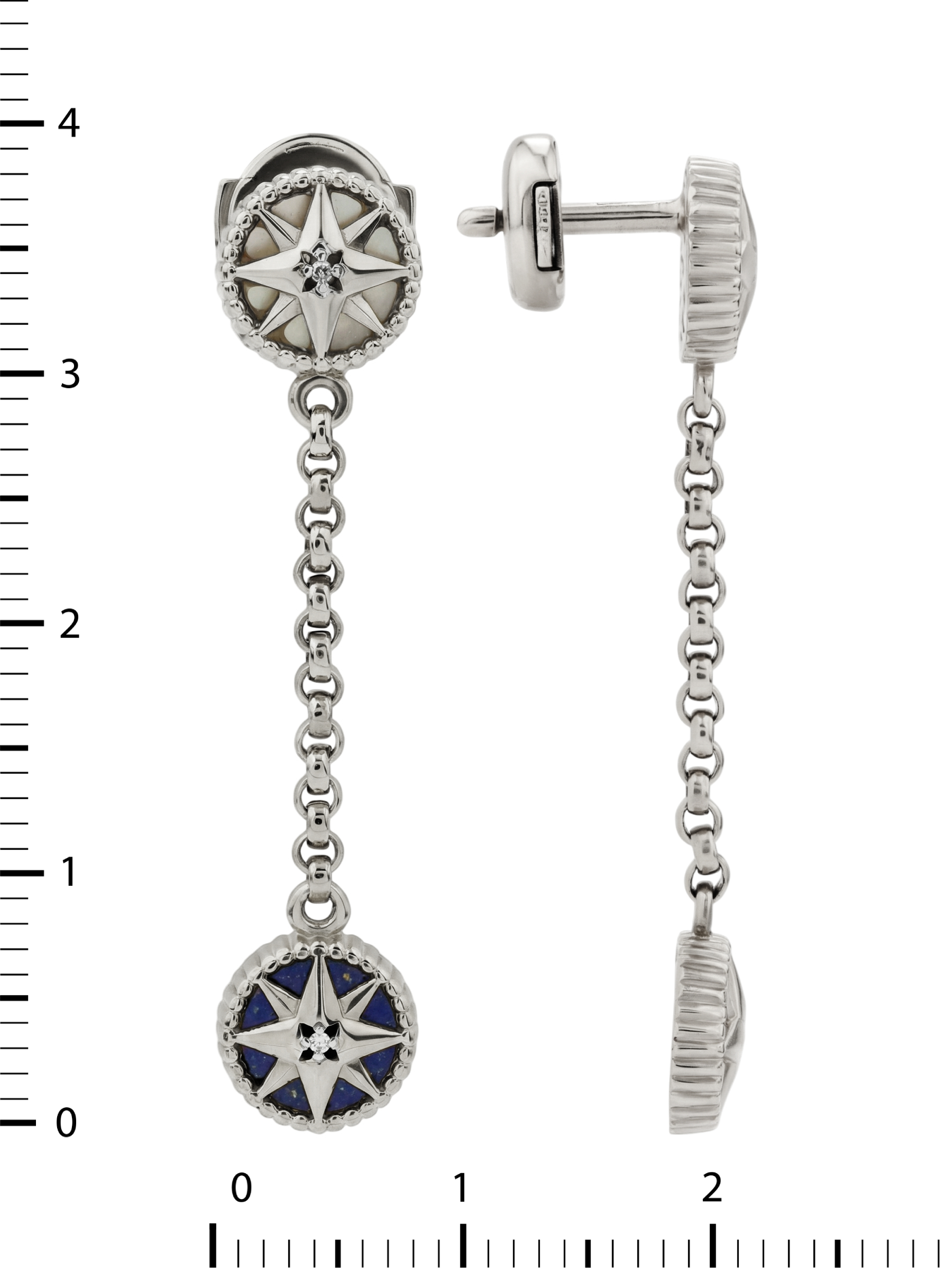 Серьги из белого золота c бриллиантами, лазуритом и перламутром
