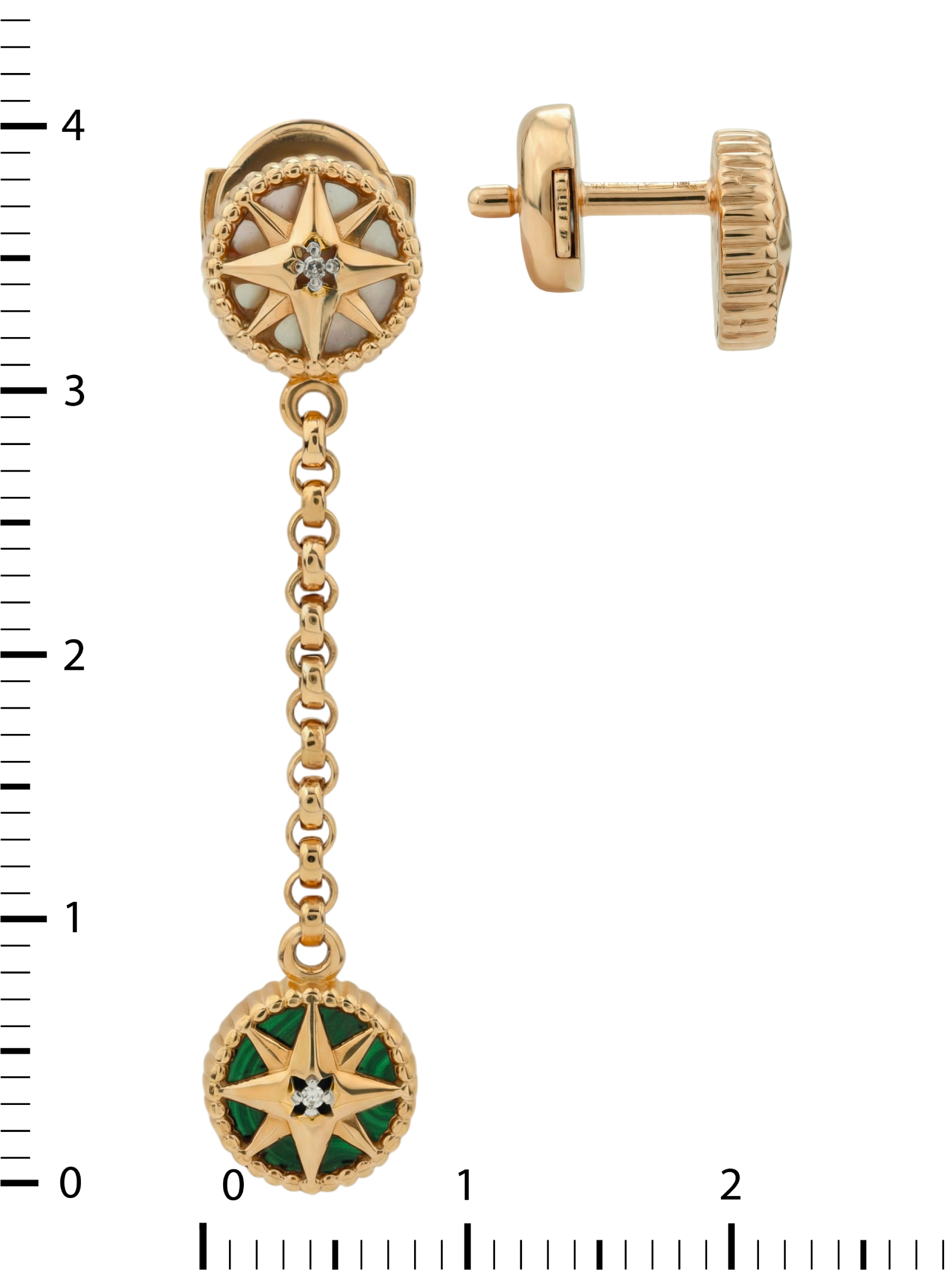 Серьги из золота c бриллиантами, малахитом и перламутром