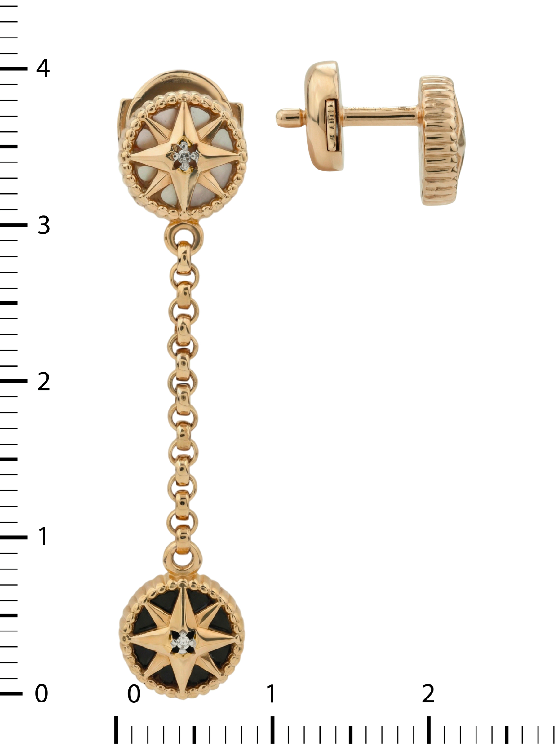 Серьги из золота c бриллиантами, ониксом и перламутром