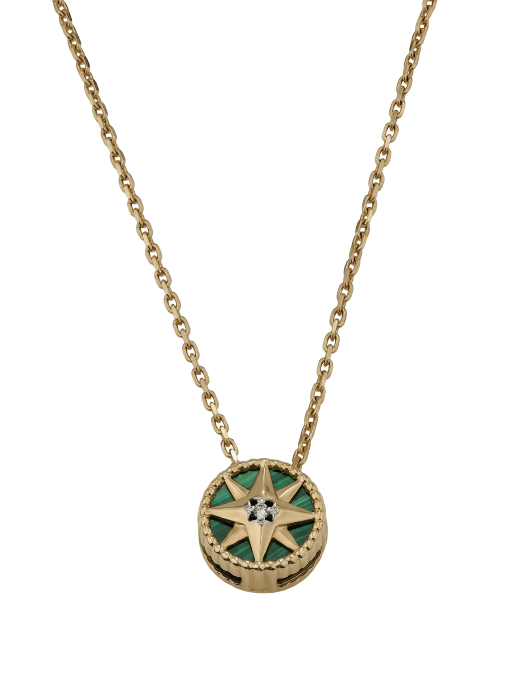 Мастерство ювелиров позволило объединить в одном изделии два контрастных материала: таинственный зеленый малахит круглой формы и сияющий белый бриллиант. Вставка из малахита придает колье глубину и насыщенный оттенок, а бриллиант добавляет благородный блеск. Такое сочетание делает украшение универсальным и запоминающимся.