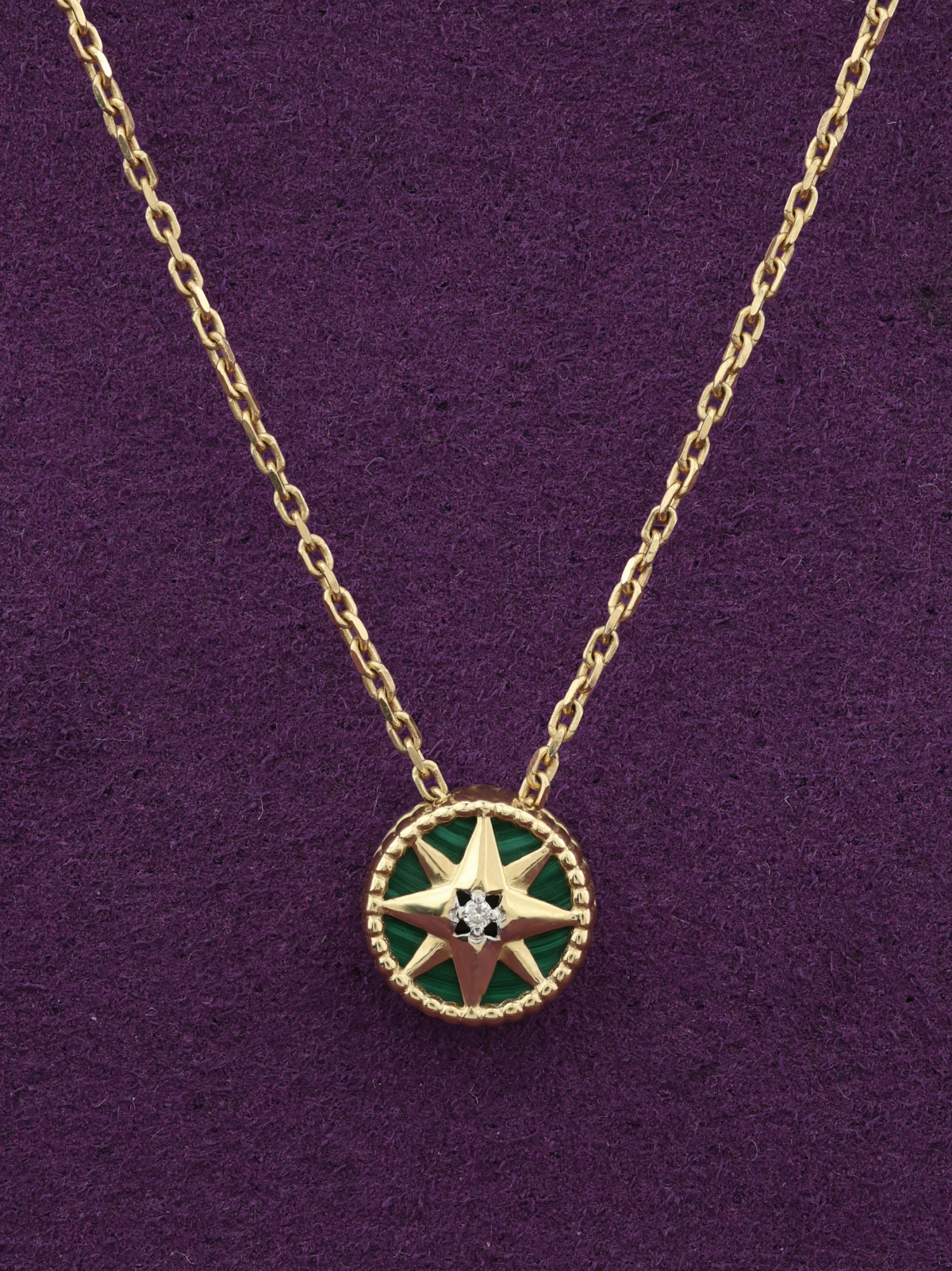 Данная модель отличается универсальностью и лаконичностью, поэтому подходит как для женщин, так и для мужчин, предпочитающих премиальные аксессуары. Всего в колье использовано 2 вставки: искрящийся бриллиант белого цвета и природный малахит зеленого цвета. Мастерская проработка каждой детали — от изящной цепочки до оправы подвески — гарантирует комфорт при повседневном ношении и долговечность изделия. Это колье прекрасно смотрится как самостоятельный аксессуар, так и в сочетании с другими украшениями. Вы можете дополнить свой образ, собрав полноценный ювелирный комплект, используя другие изделия из серии, представленные в нашем каталоге.