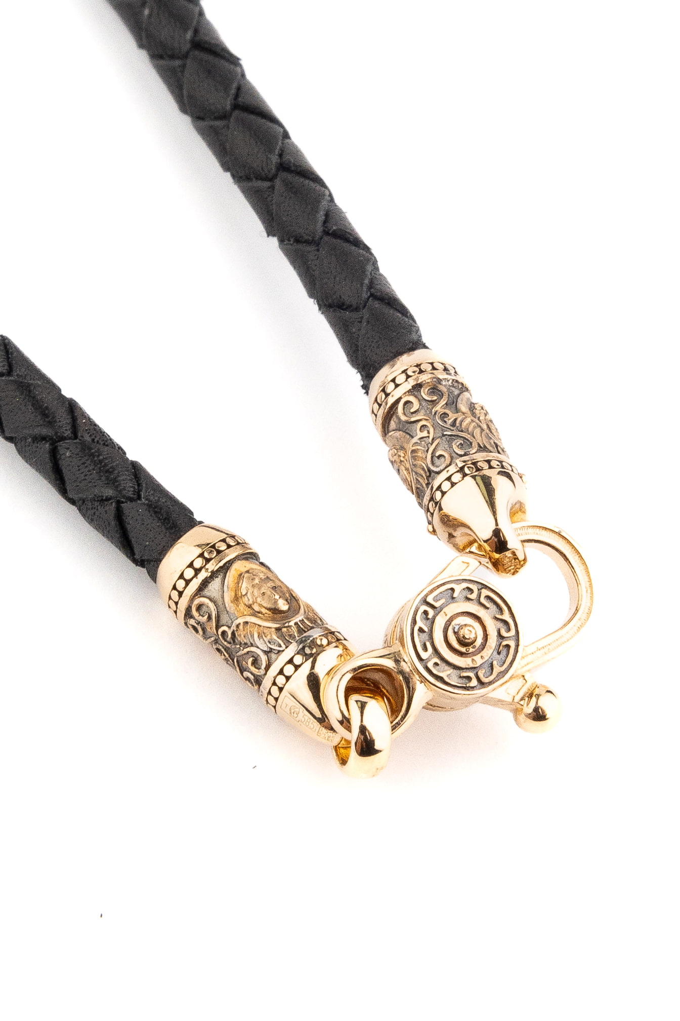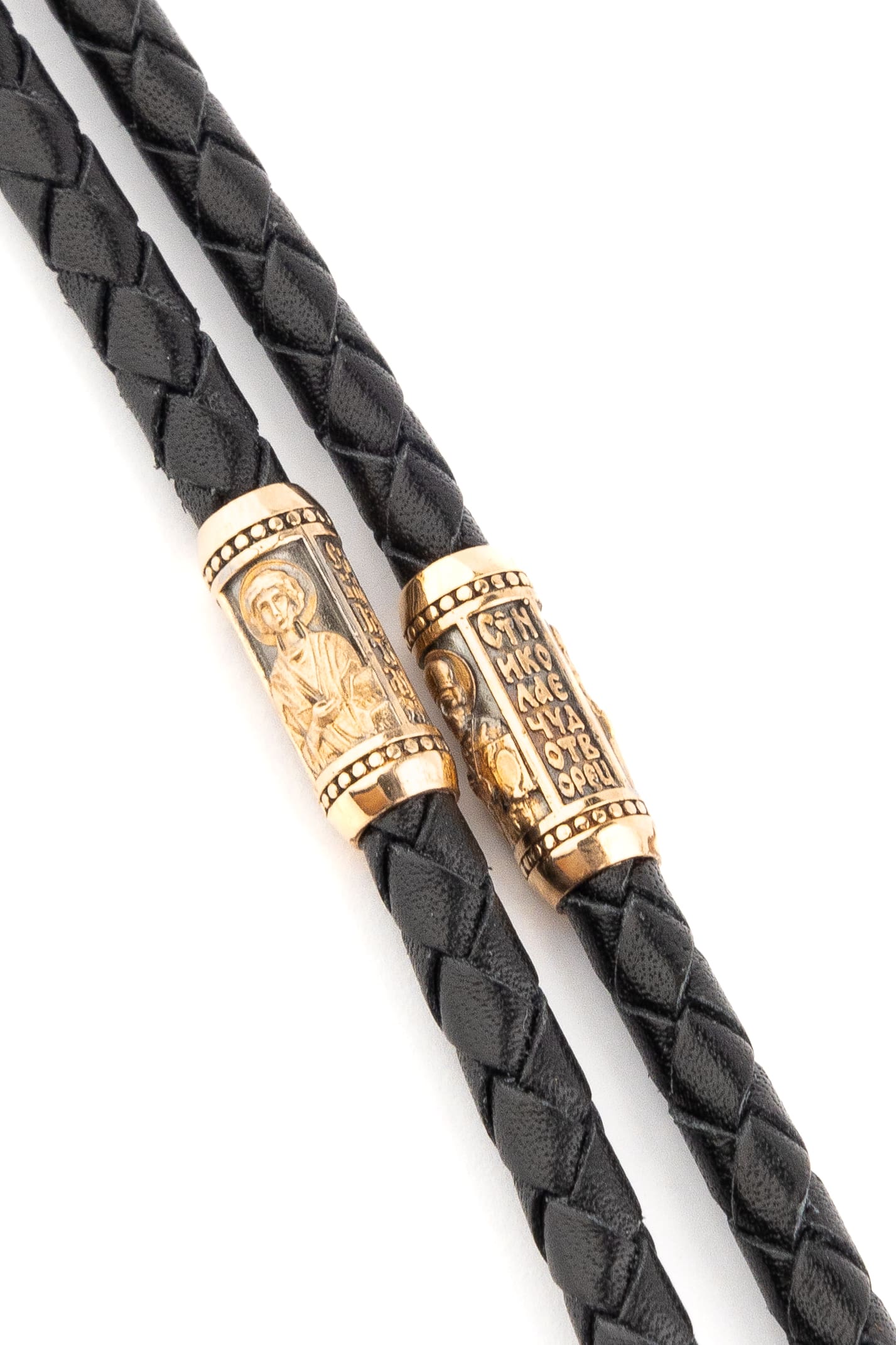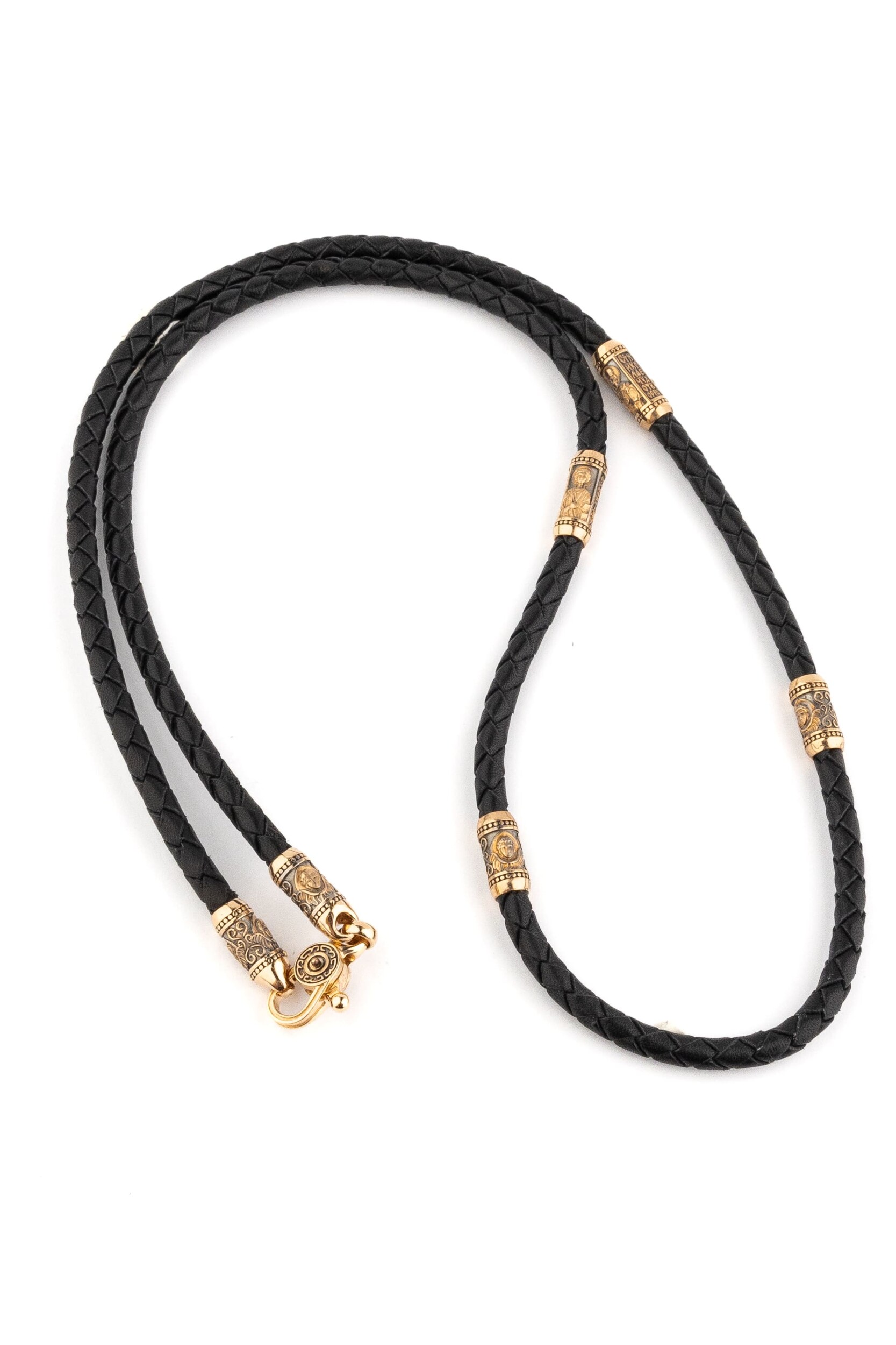 Цепь-шнурок кожа из красного золота 585 пробы c кожаным шнурком