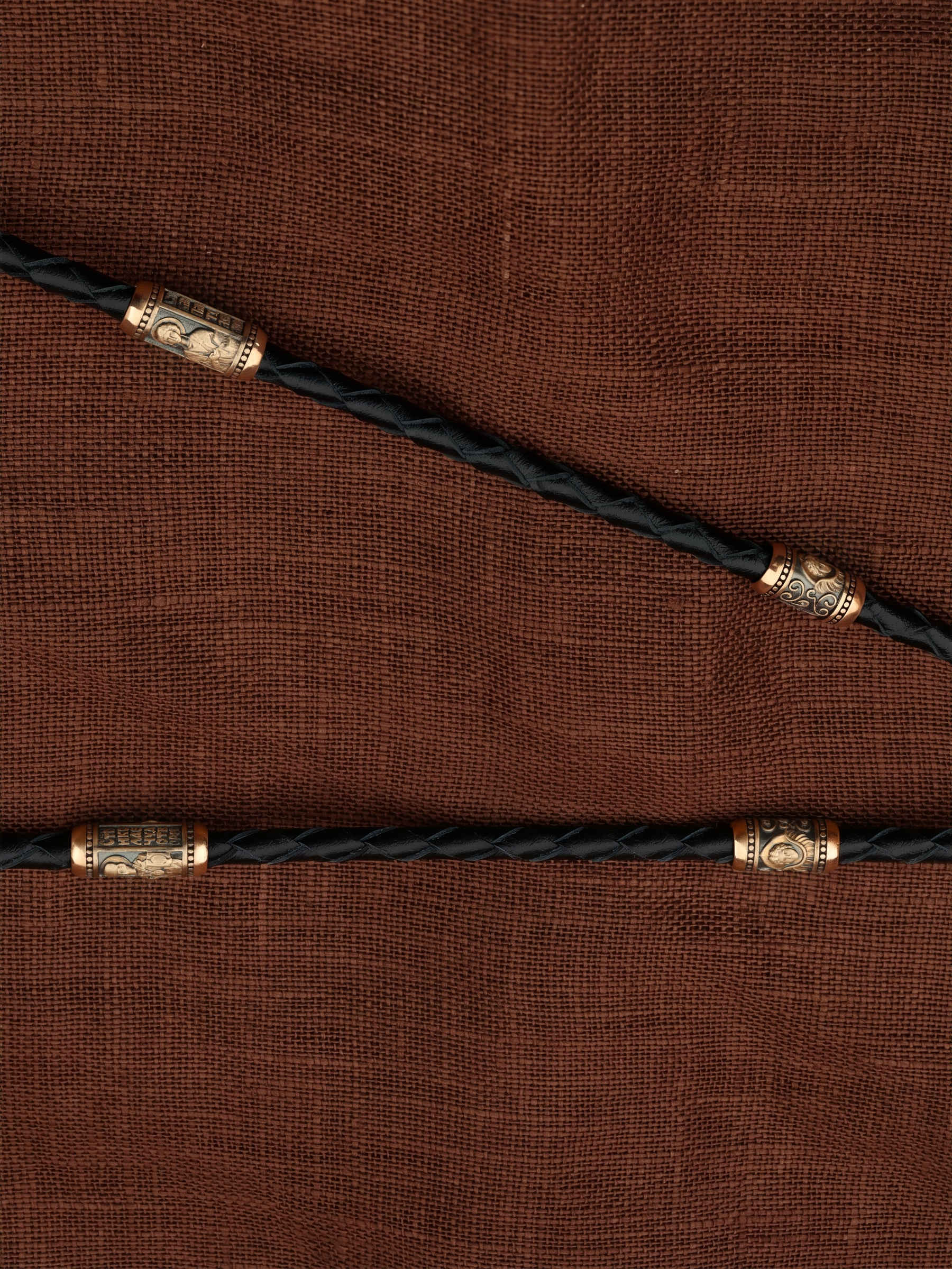 Гайтан из золота c кожаным шнурком