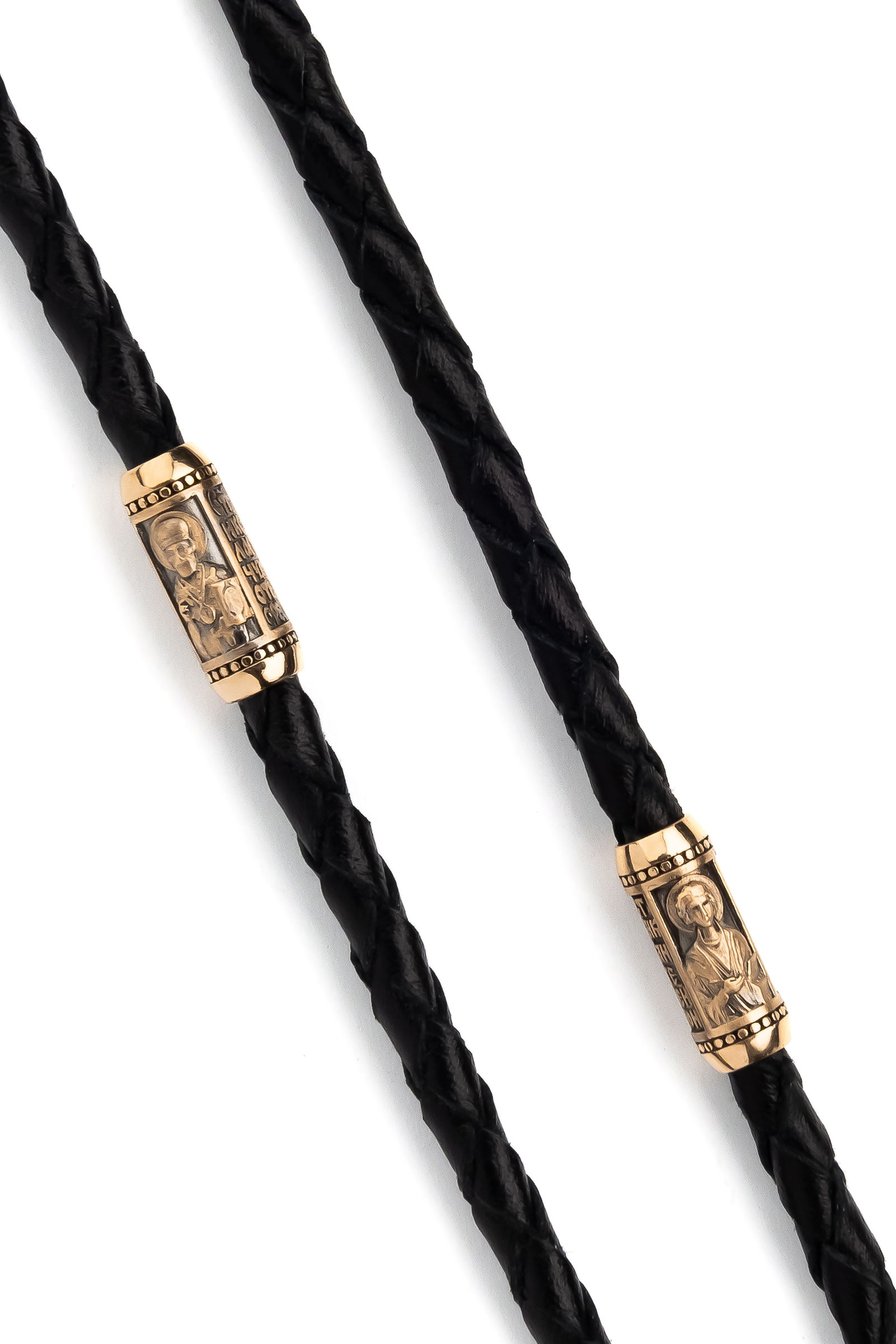 Цепь-шнурок кожа из красного золота 585 пробы c кожаным шнурком