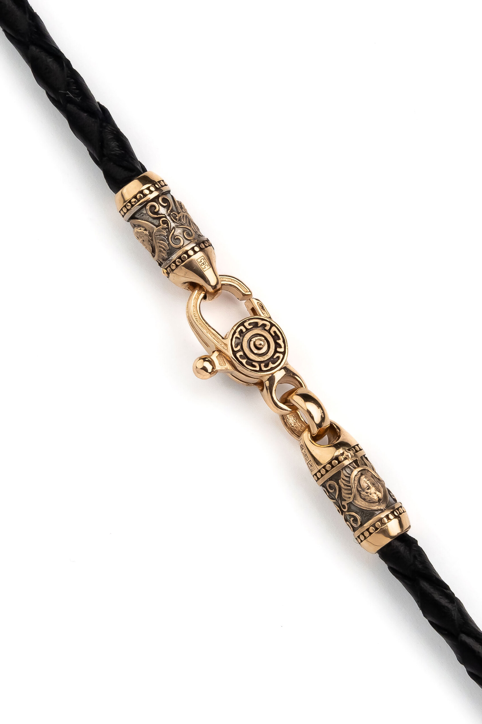 Цепь-шнурок кожа из красного золота 585 пробы c кожаным шнурком