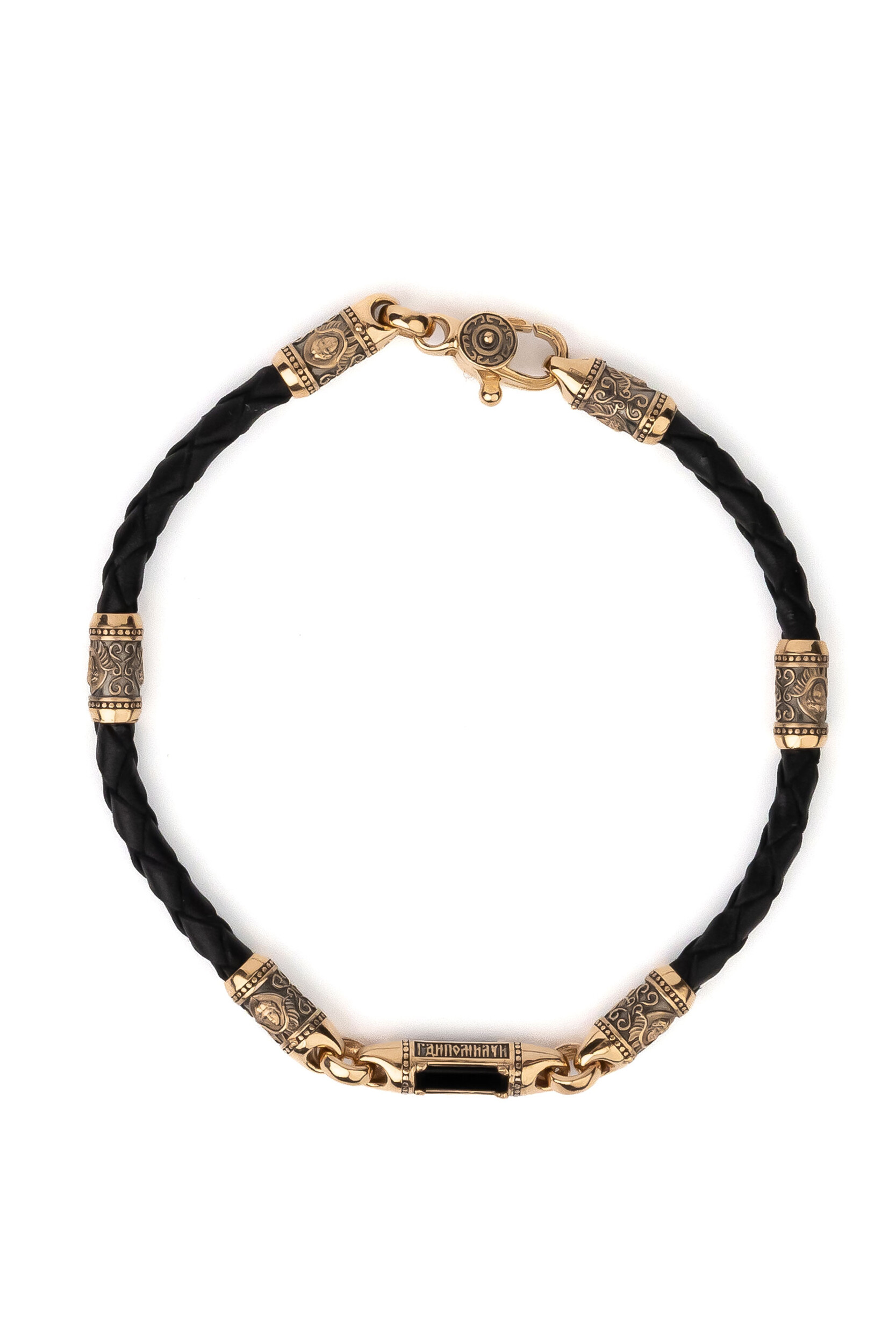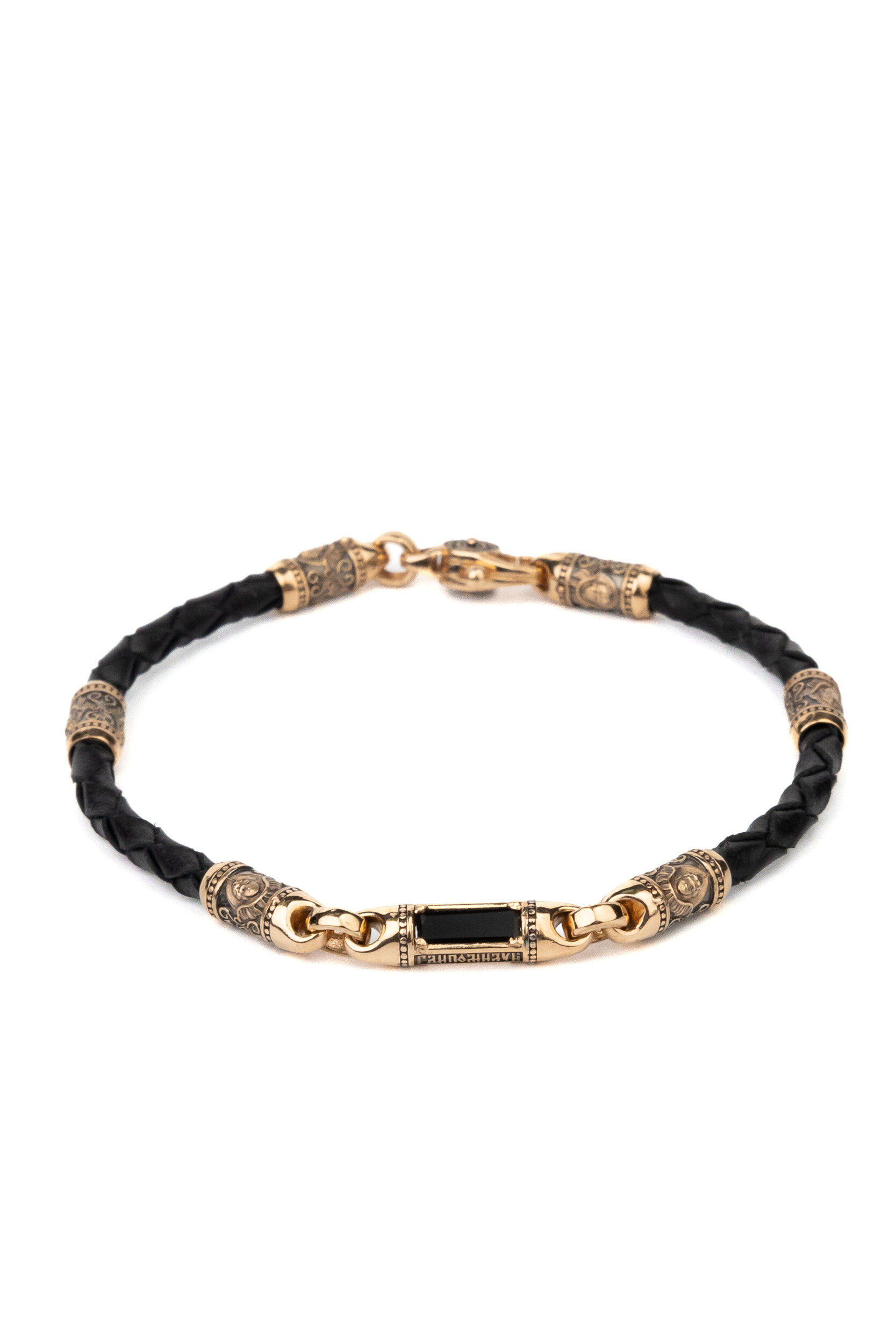Браслет-шнурок из красного золота 585 пробы c кожаным шнурком и ониксом
