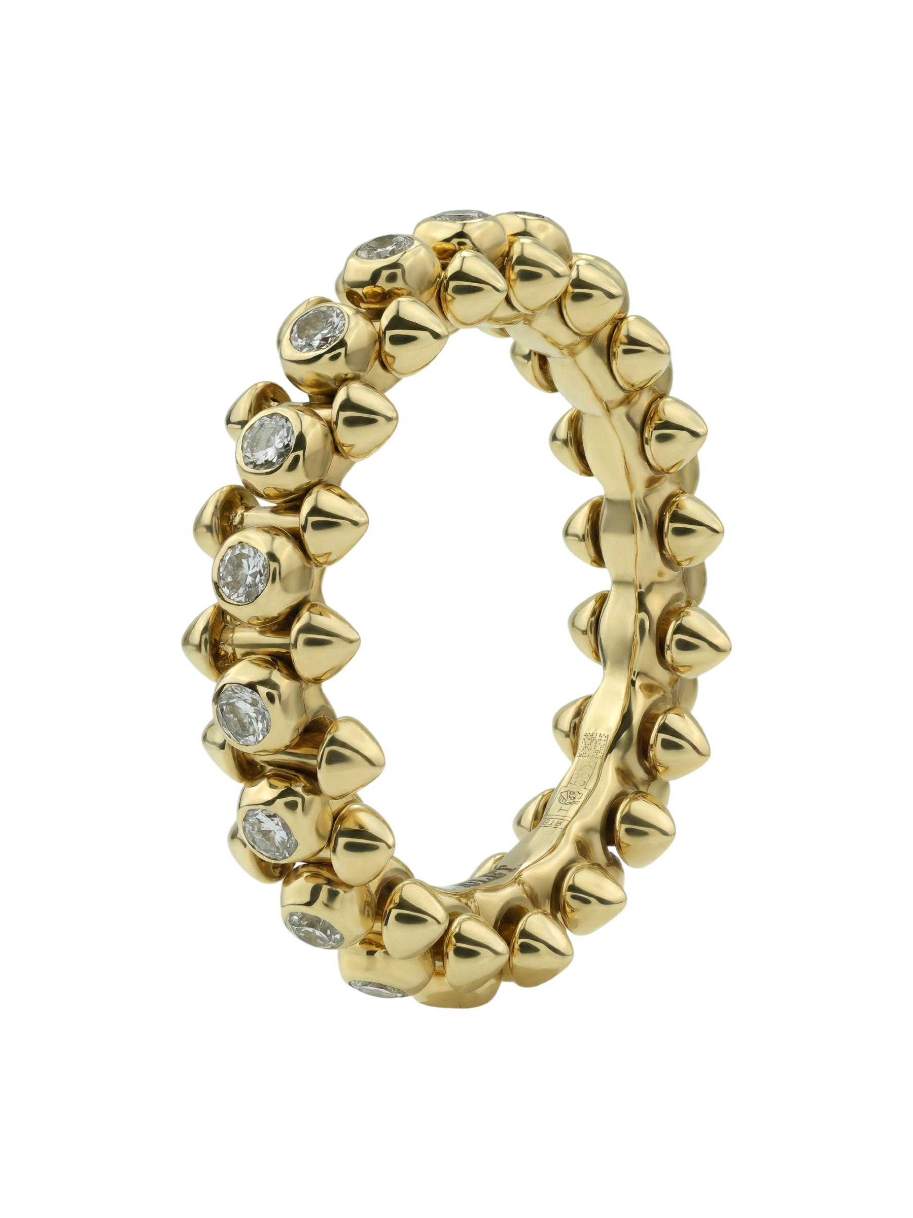 Декор кольца продуман до мелочей: по всей поверхности расположены 111 бриллиантов круглой огранки. Белый цвет вставок эффектно контрастирует с теплым оттенком лимонного золота, создавая динамичную игру света при каждом движении руки. Это украшение станет ярким завершением образа, а возможность выбора подходящего размера (16, 16.5, 17, 17.5, 18, 18.5) обеспечит идеальную посадку. Также изделие может стать частью комплекта, дополнив ваш персональный ювелирный ансамбль.