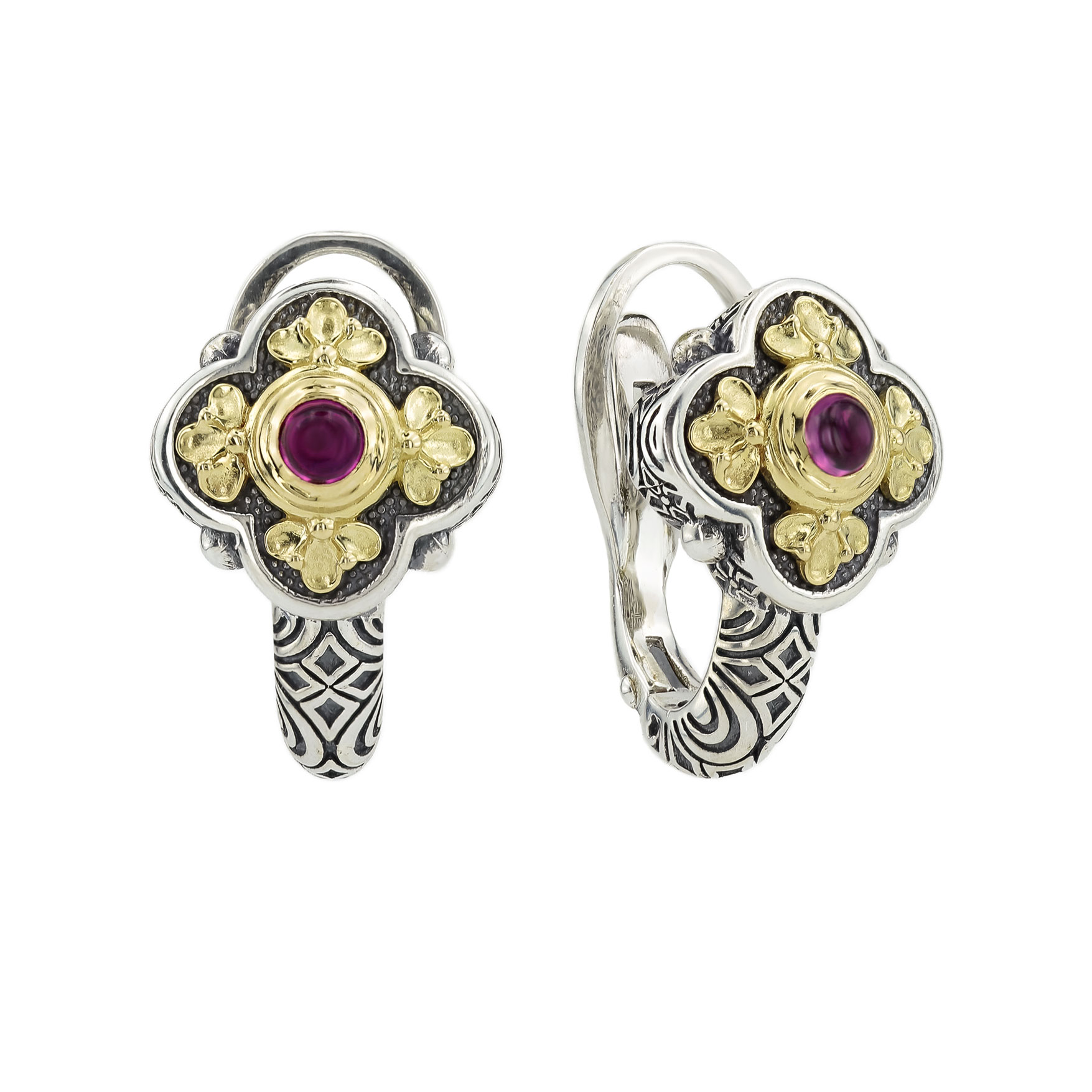 Серьги из серебра и золота c рубином и рубином