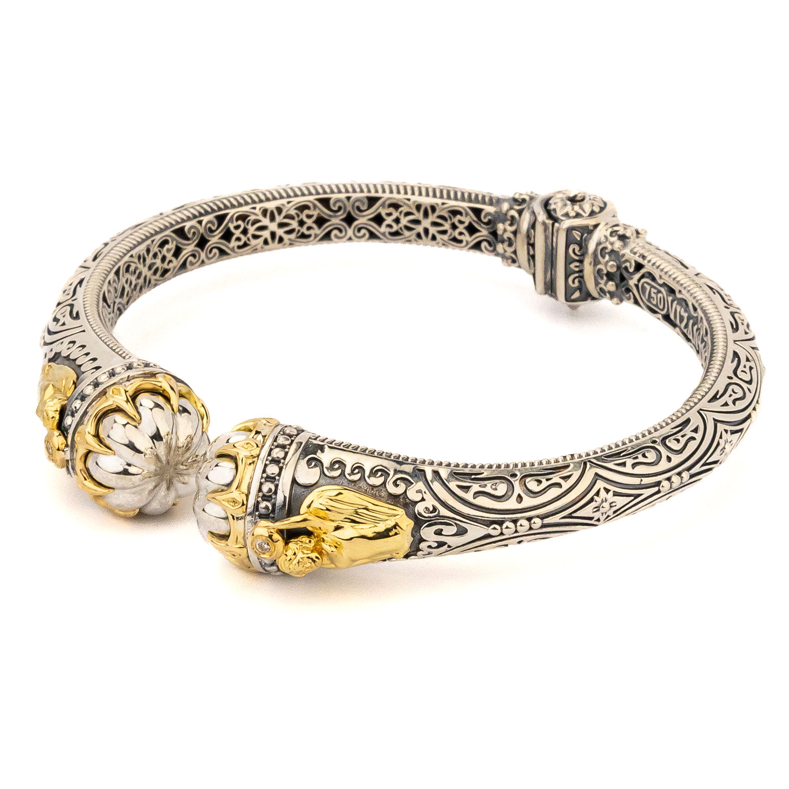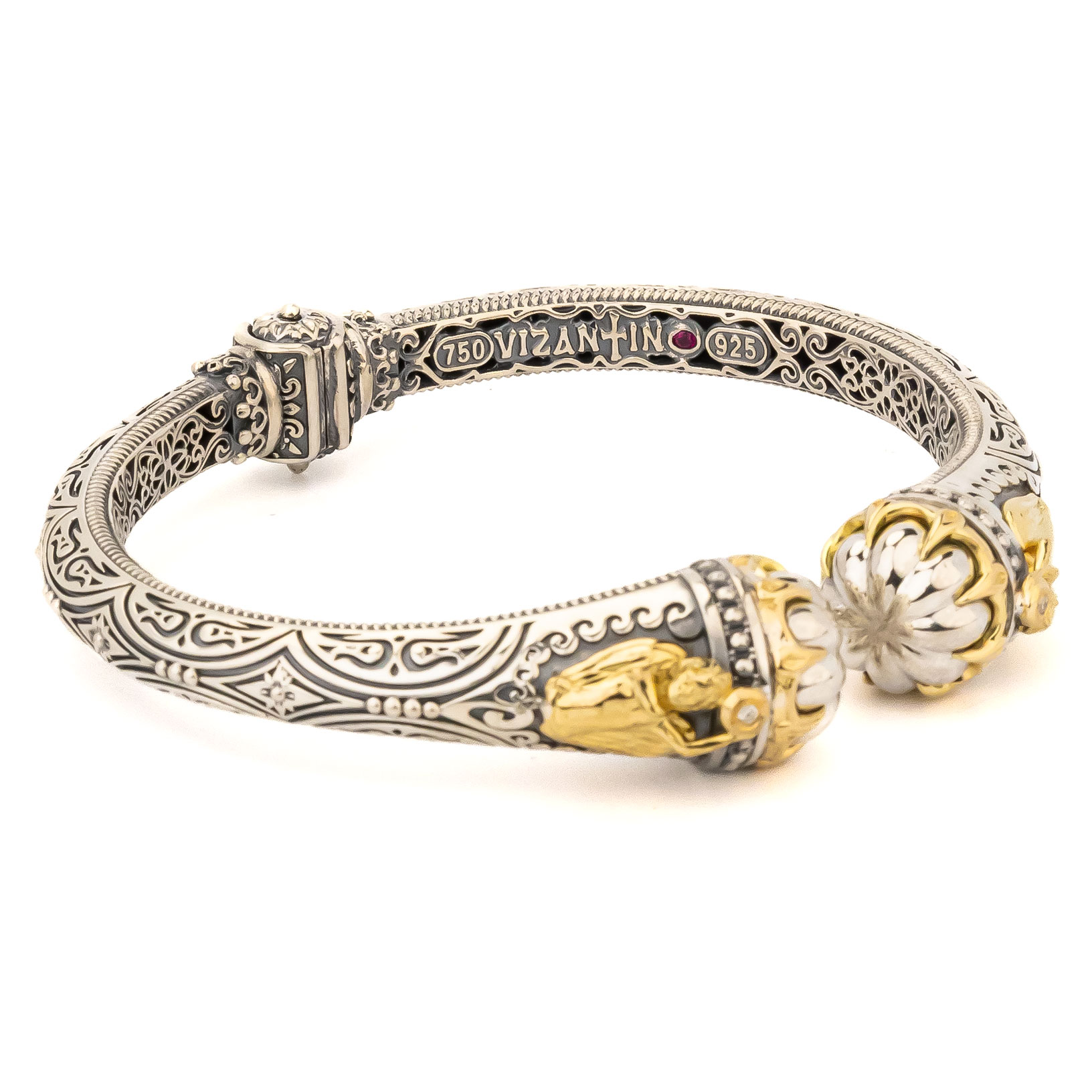 Браслет из серебра 925 пробы и золота 750 пробы c бриллиантами и рубином