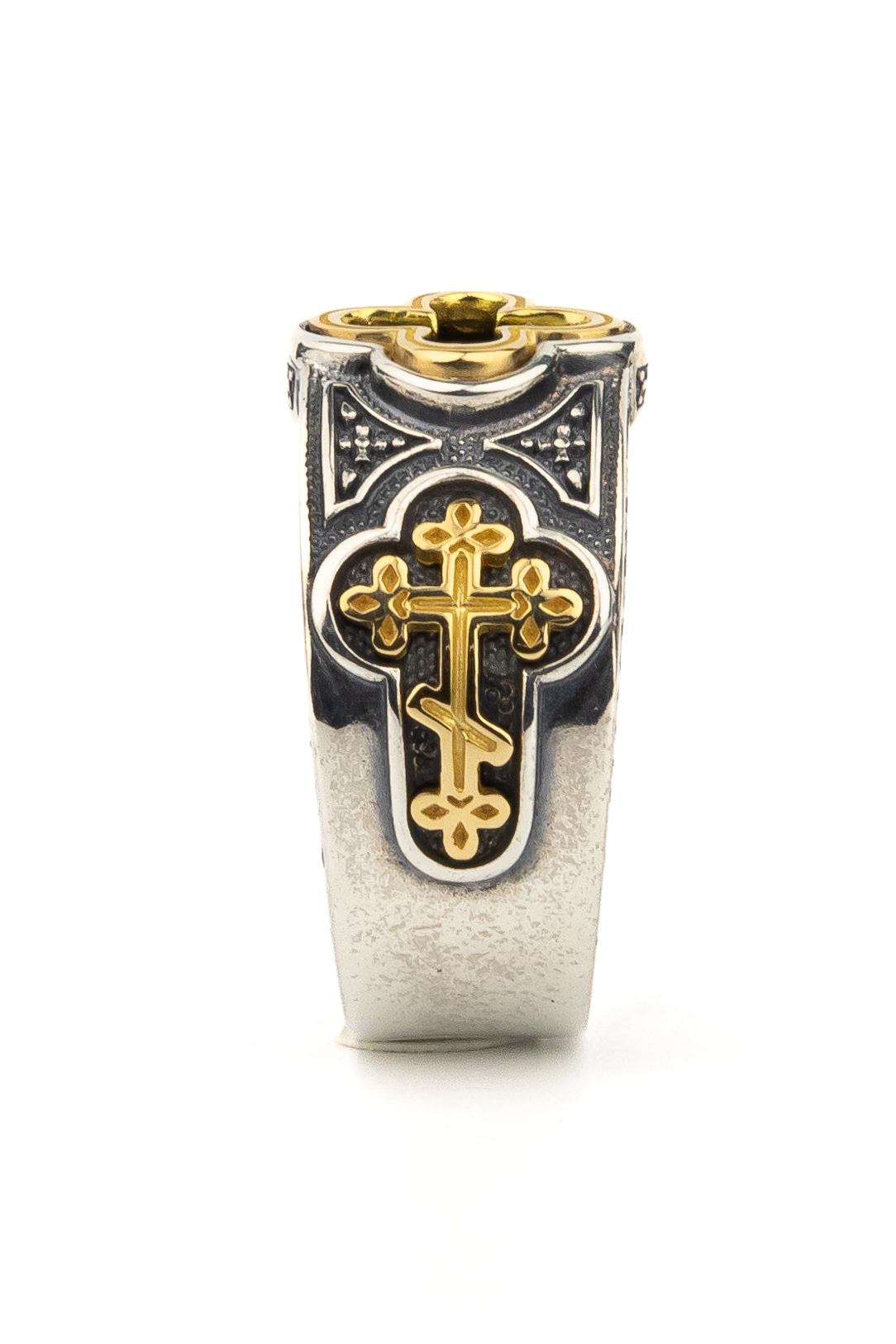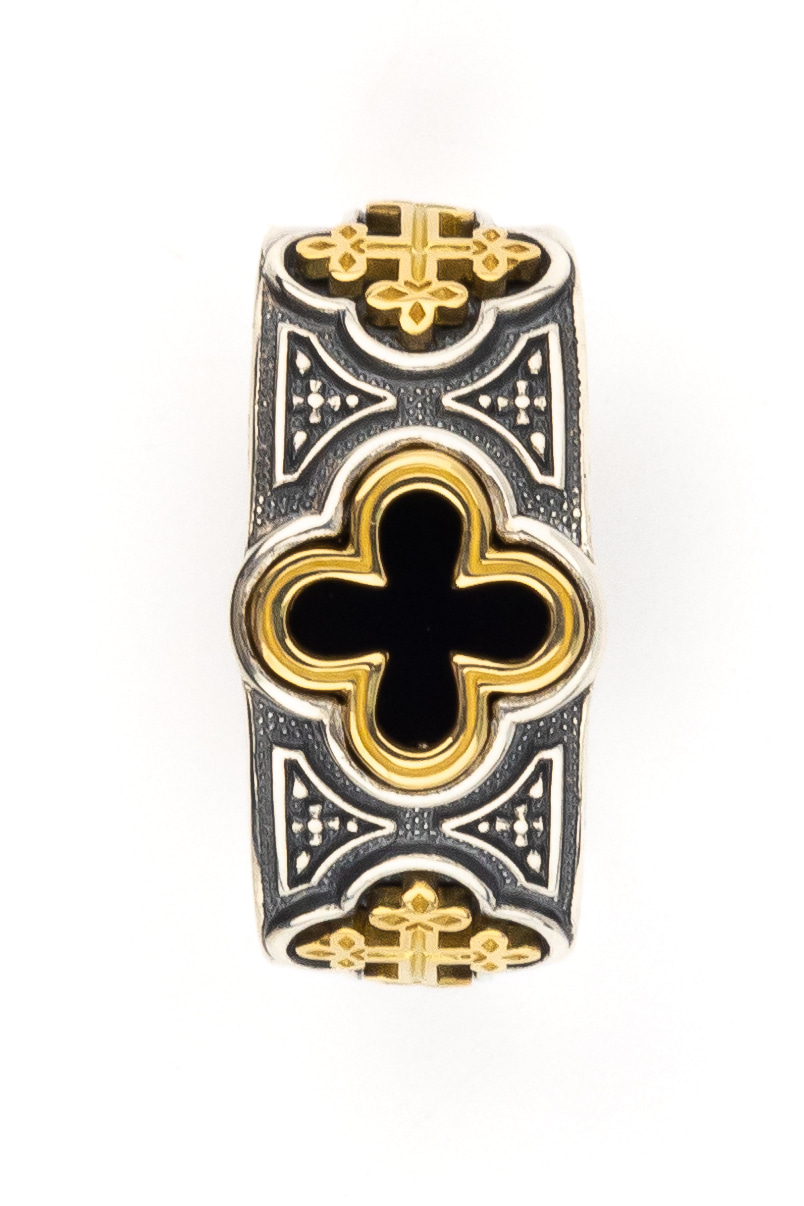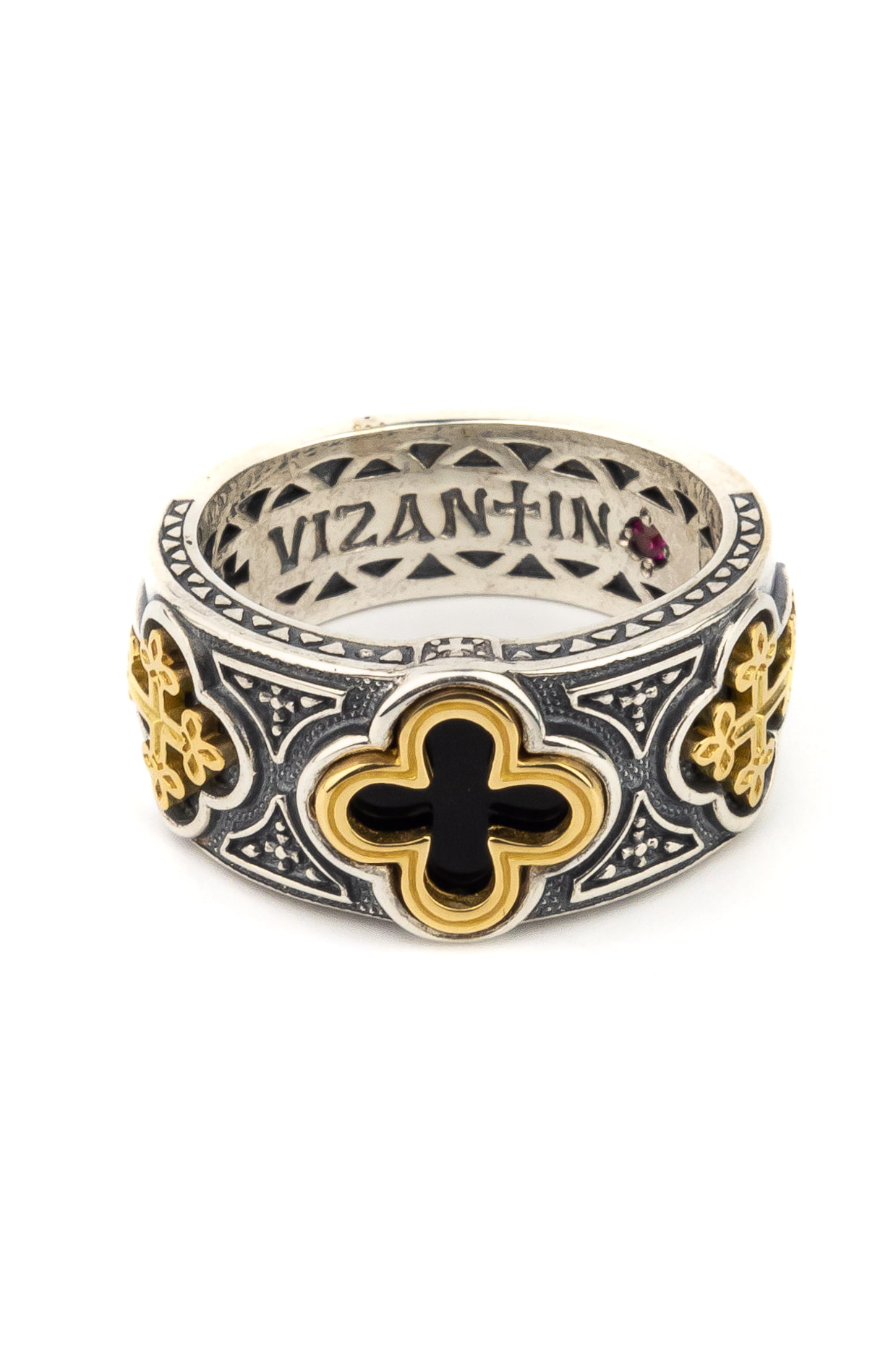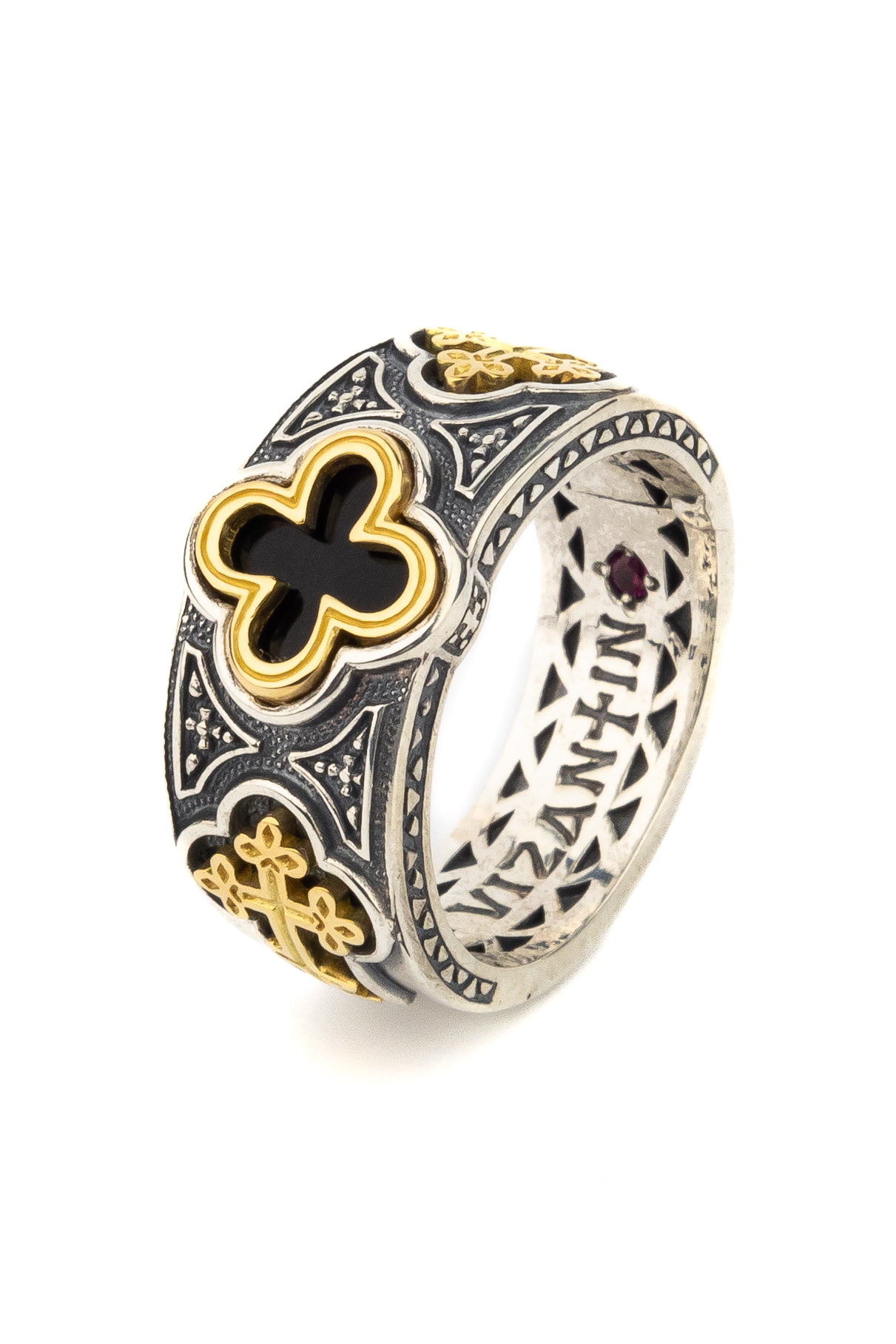 Кольцо из серебра 925 пробы и золота 750 пробы c ониксом и рубином