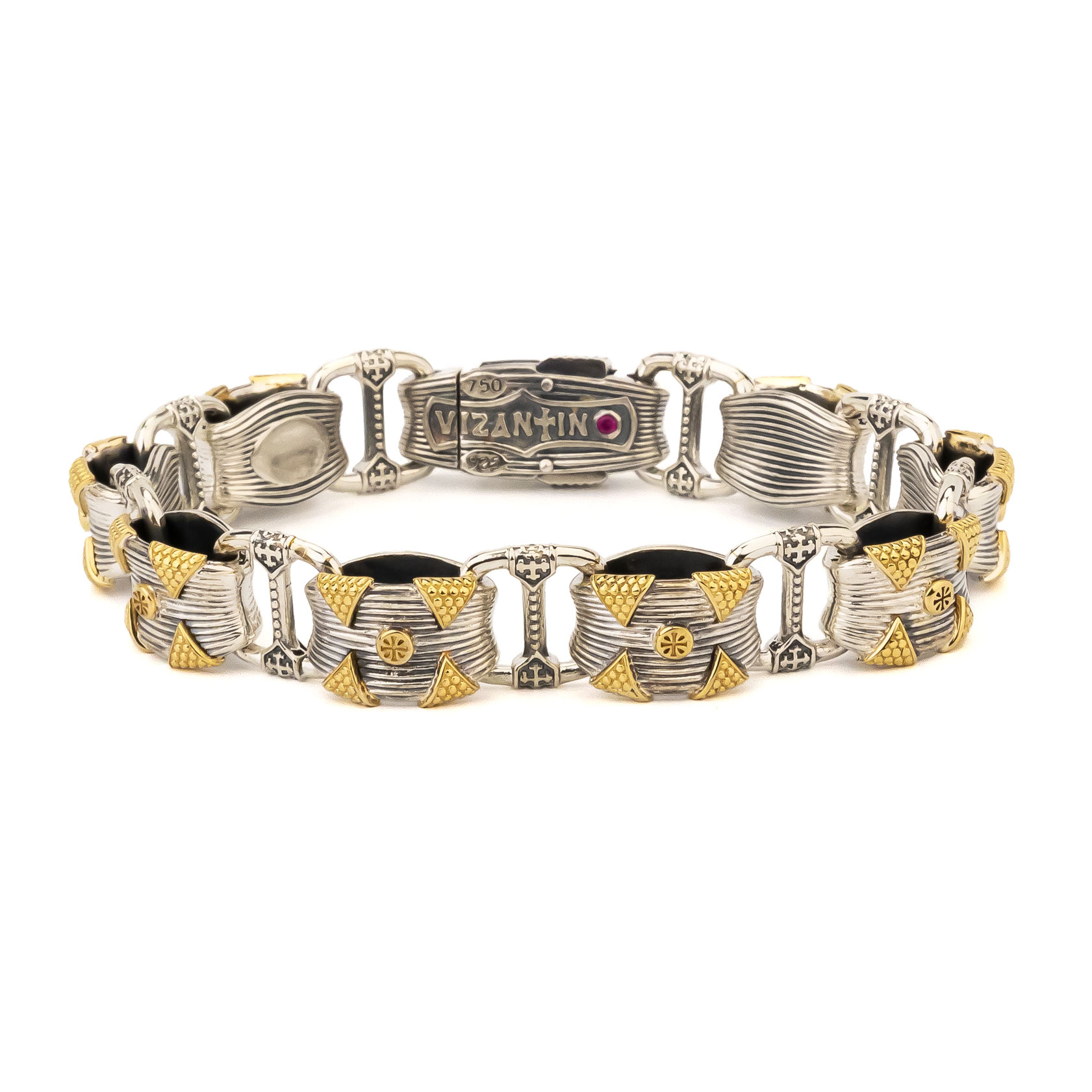 Браслет из серебра 925 пробы и золота 750 пробы c рубином