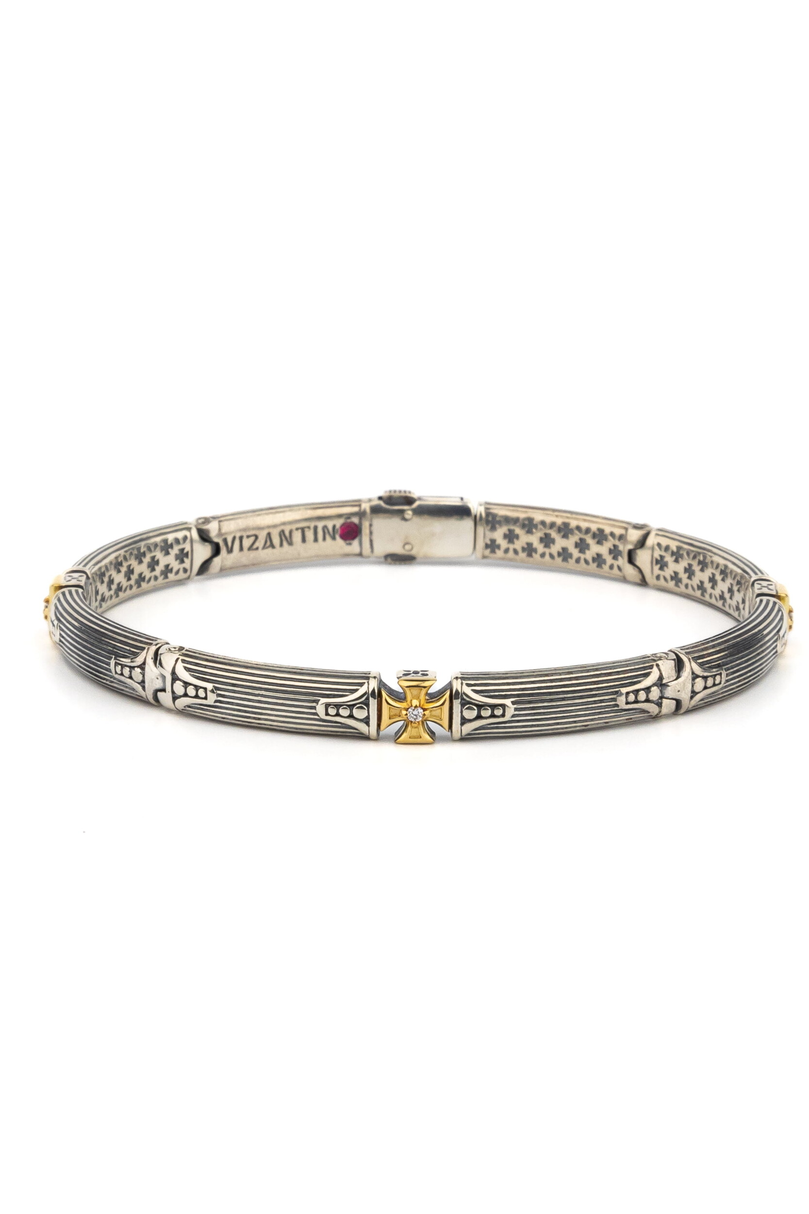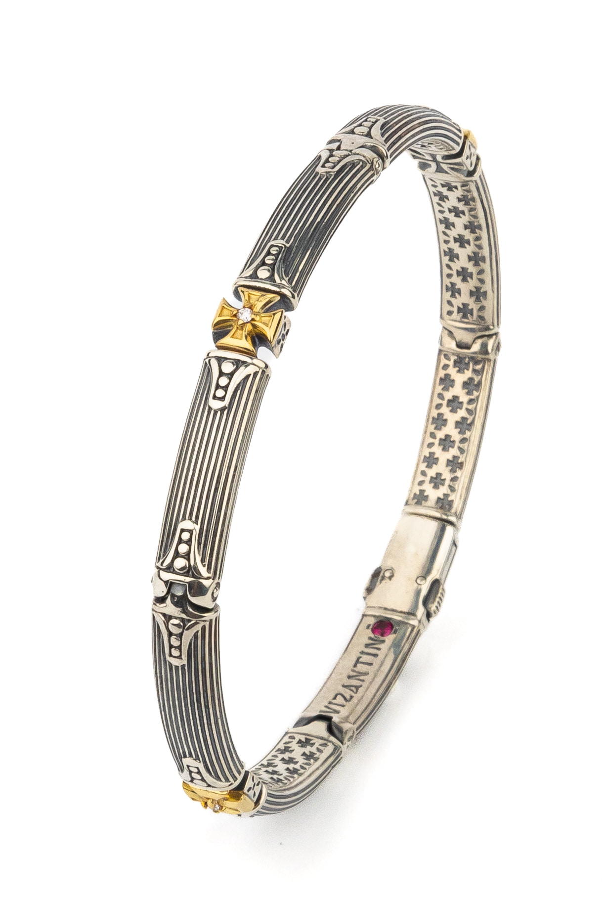 Браслет из серебра 925 пробы и золота 750 пробы c бриллиантами и рубином