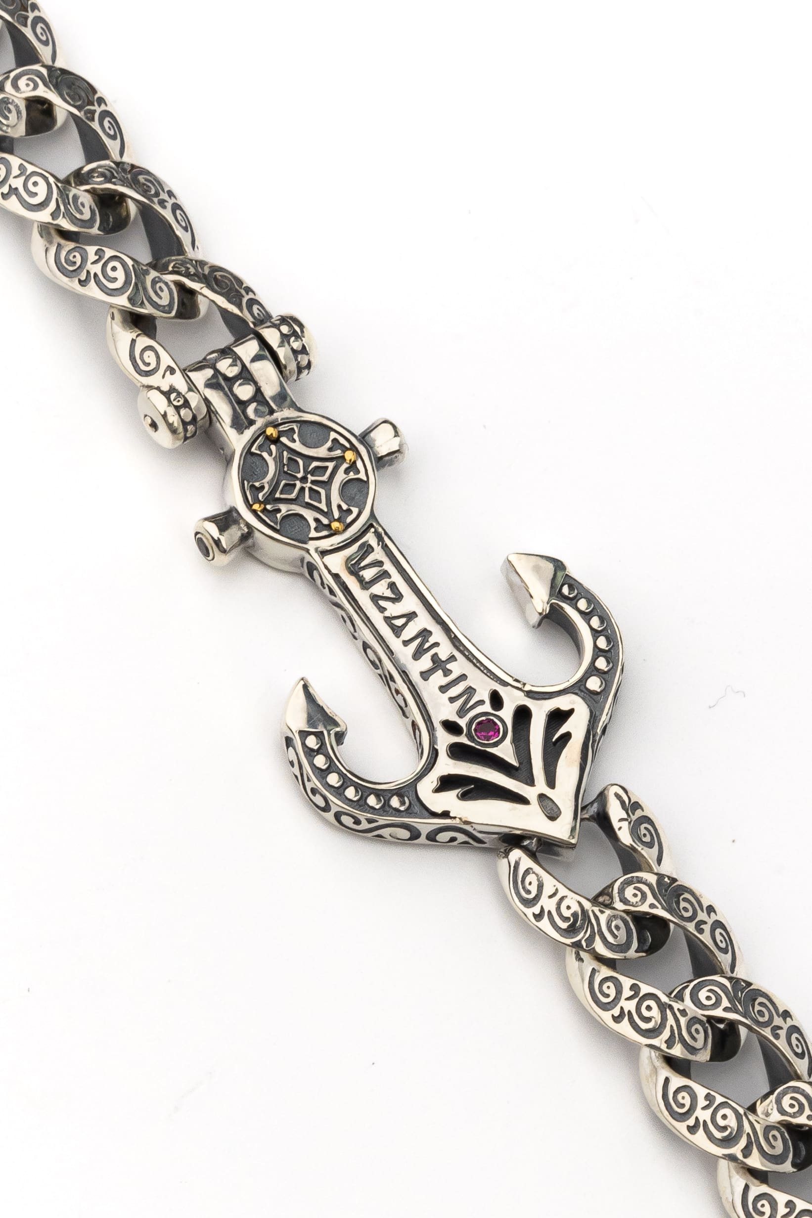 Браслет из серебра 925 пробы и золота 750 пробы c бриллиантами и рубином