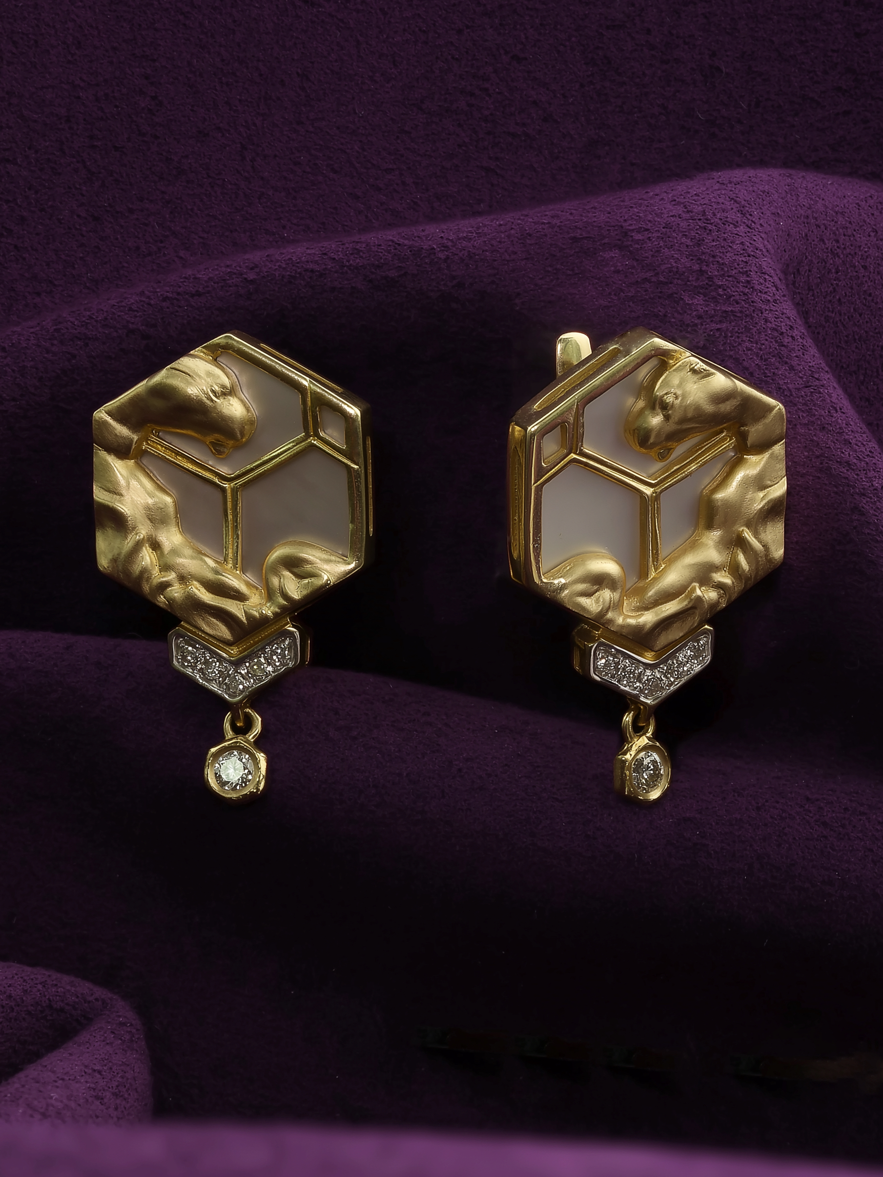 Серьги из лимонного золота 585 пробы c бриллиантами и перламутром