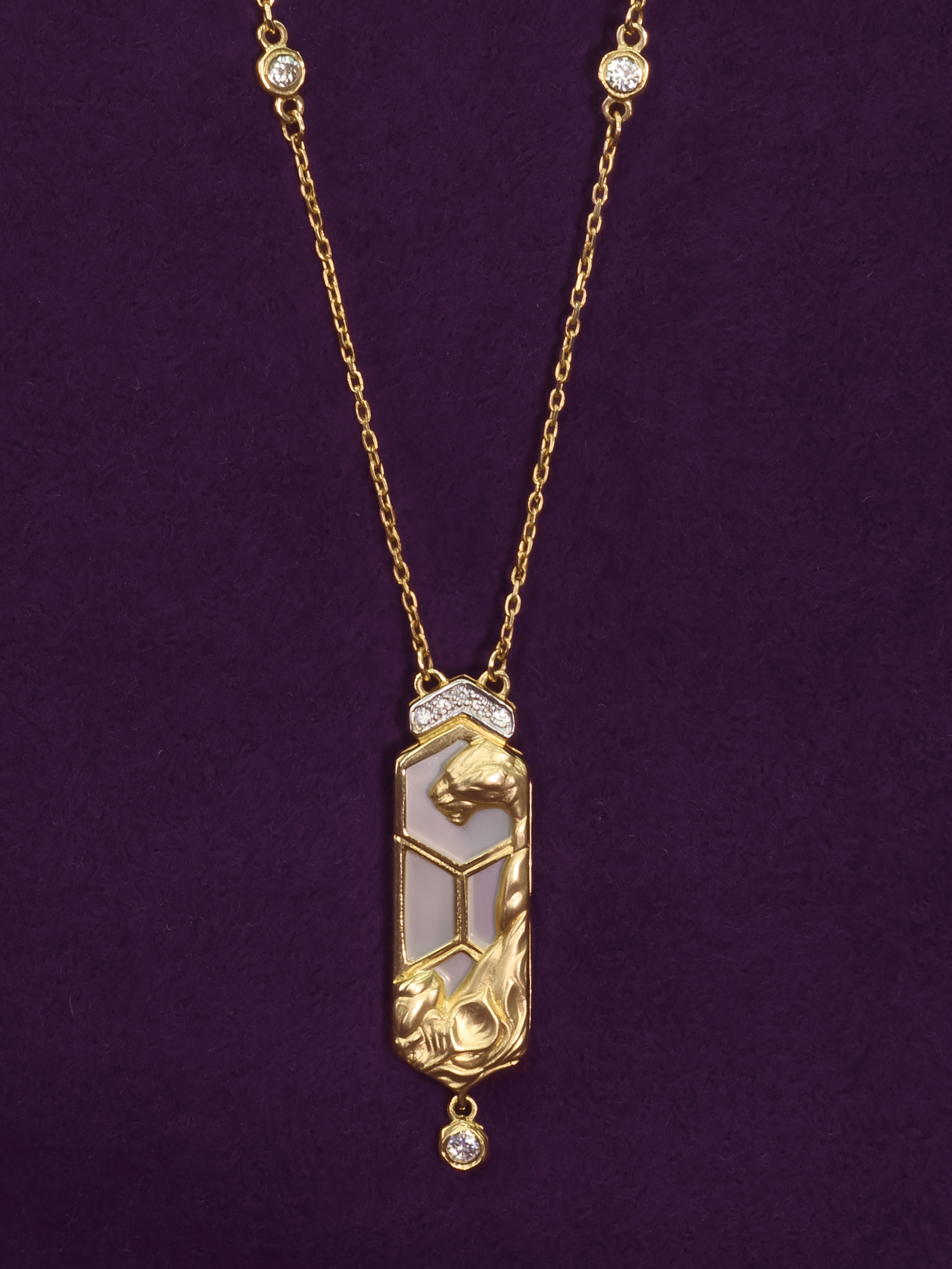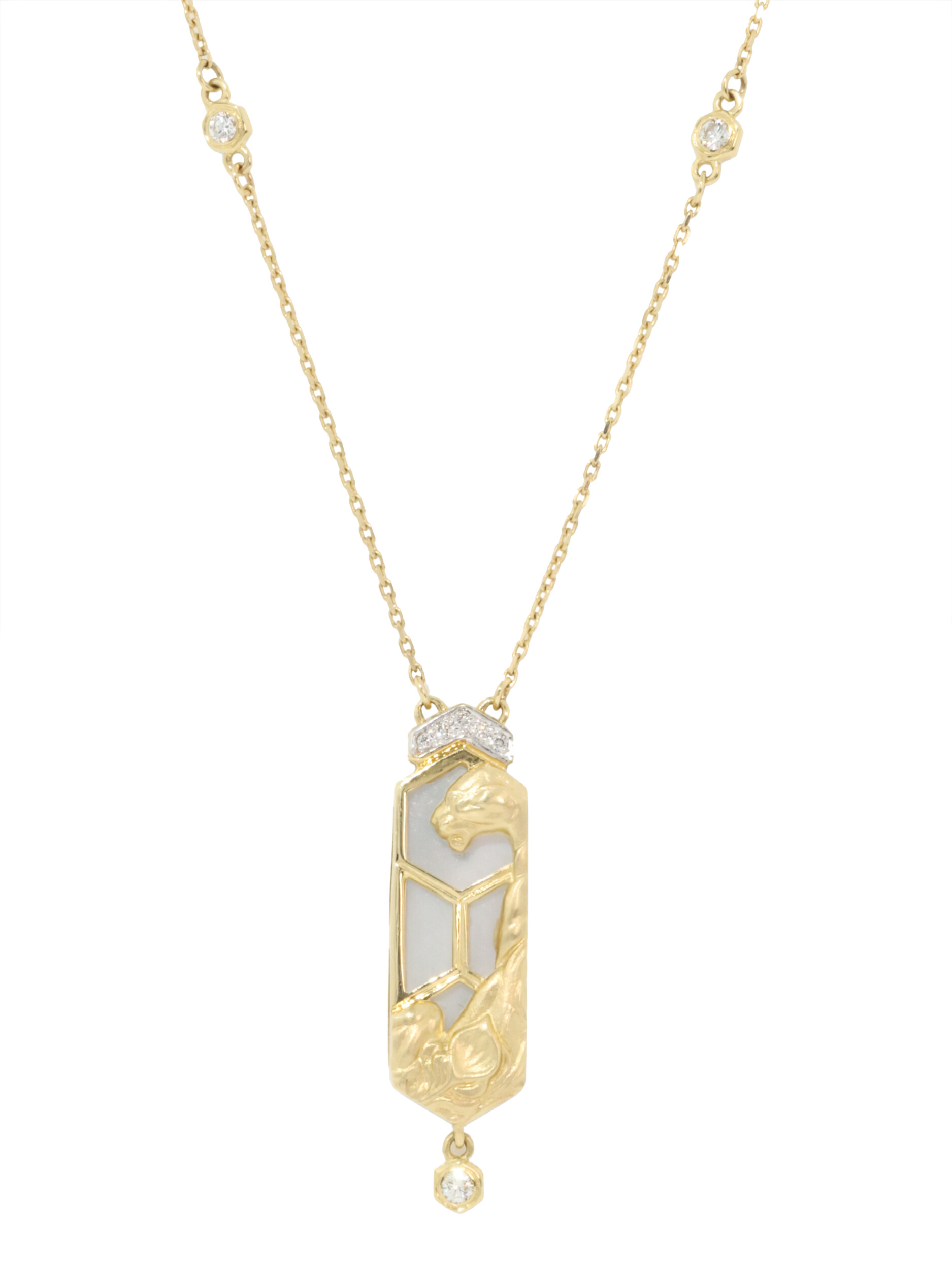 Колье из лимонного золота 585 пробы c бриллиантами и перламутром