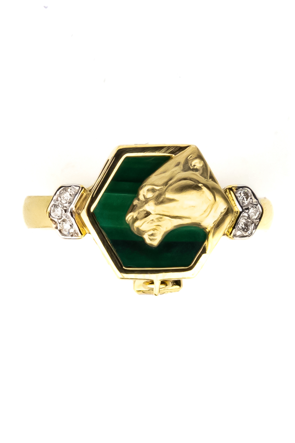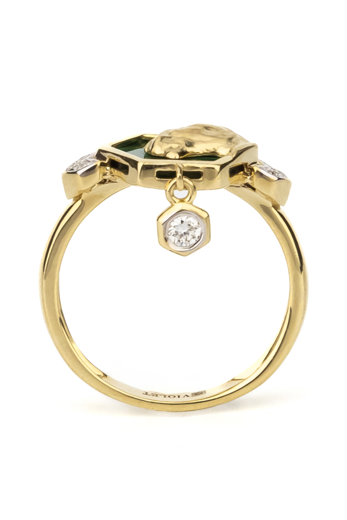 Кольцо из лимонного золота 585 пробы c бриллиантами и малахитом