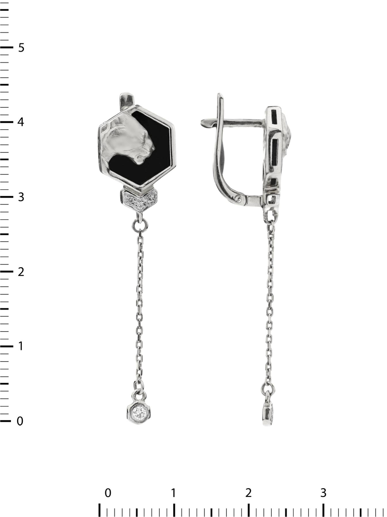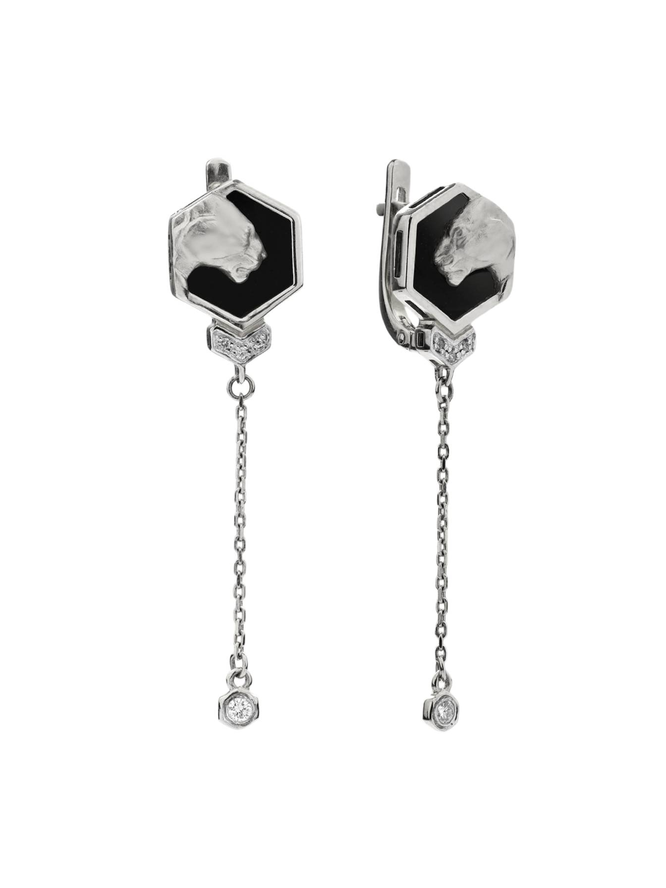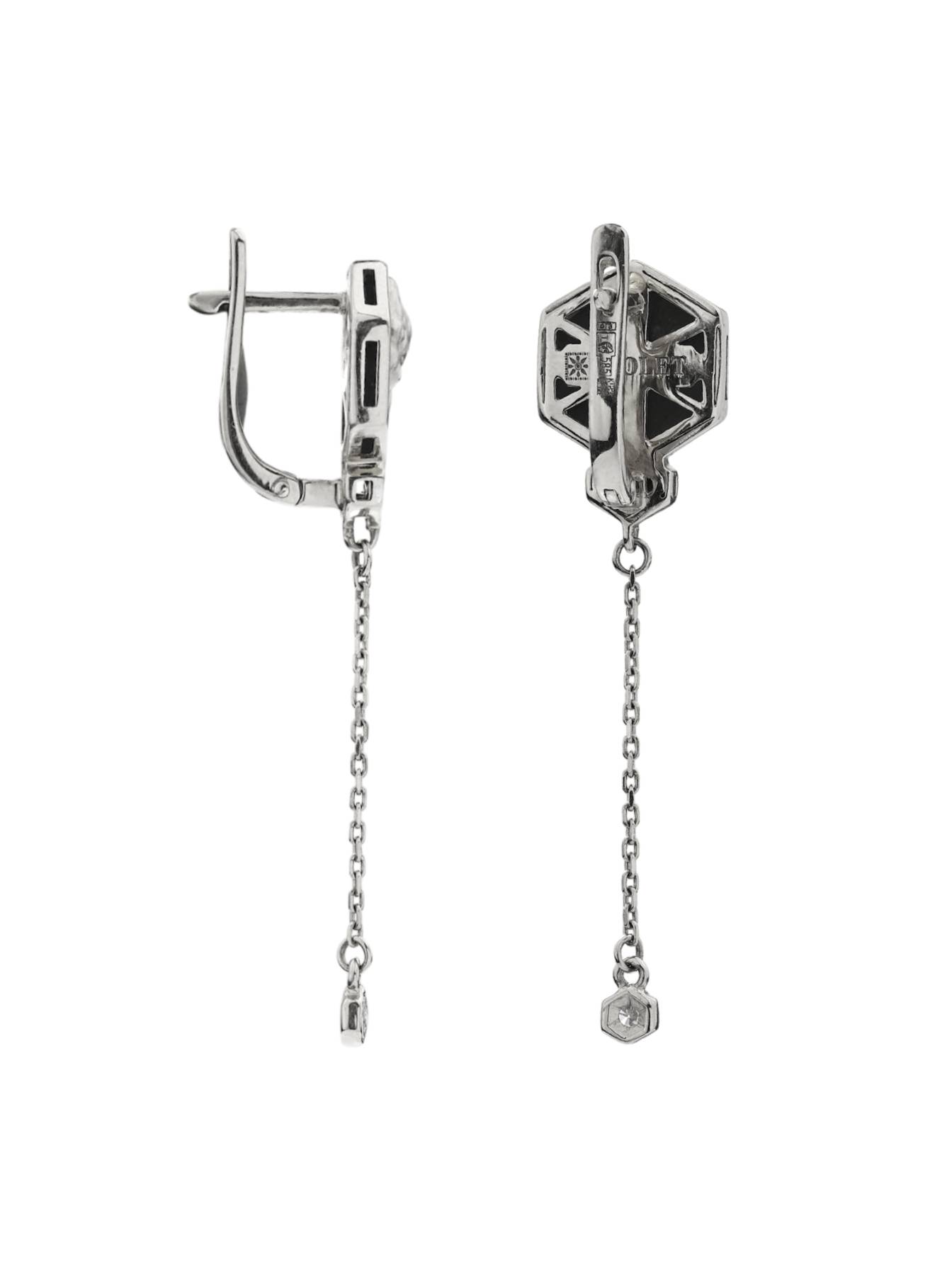 Серьги из белого золота 585 пробы c бриллиантами и ониксом
