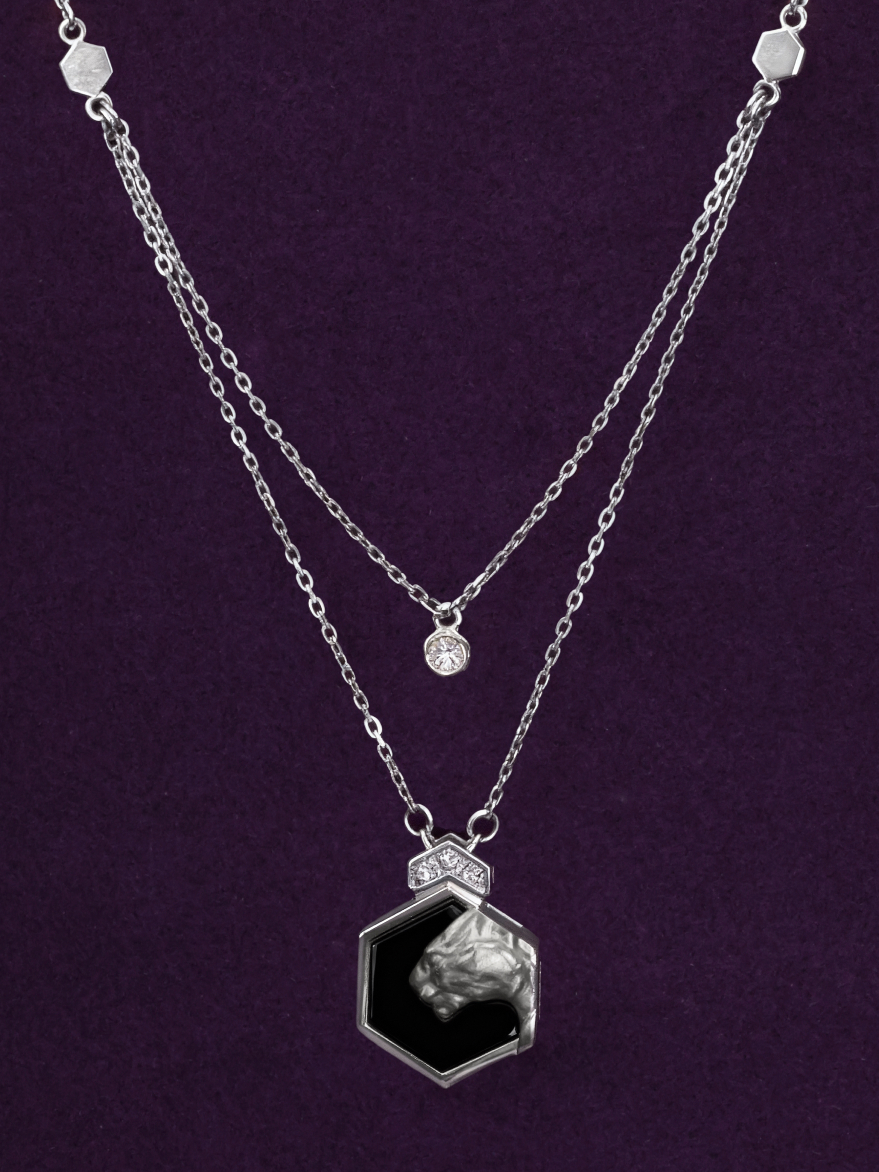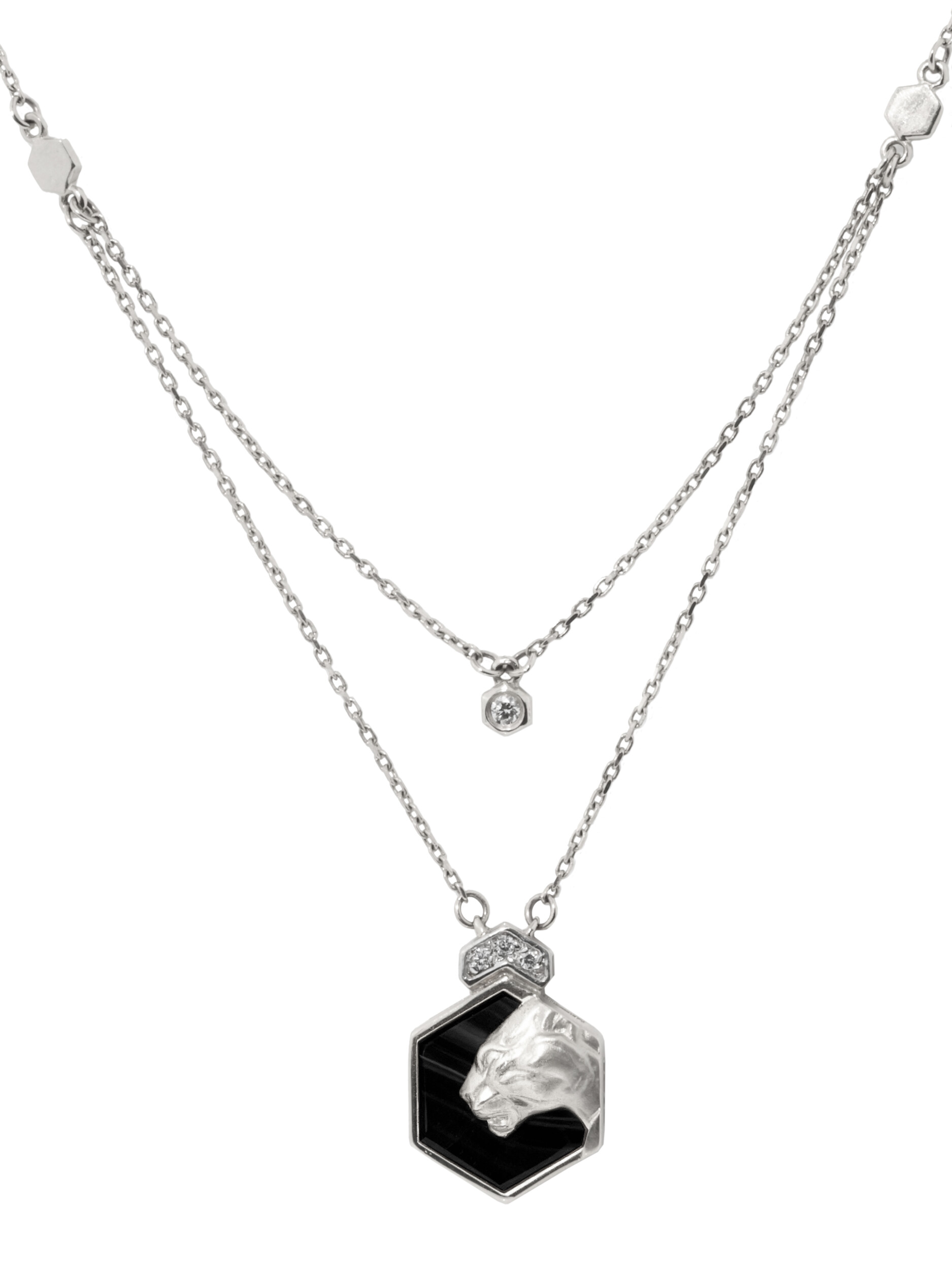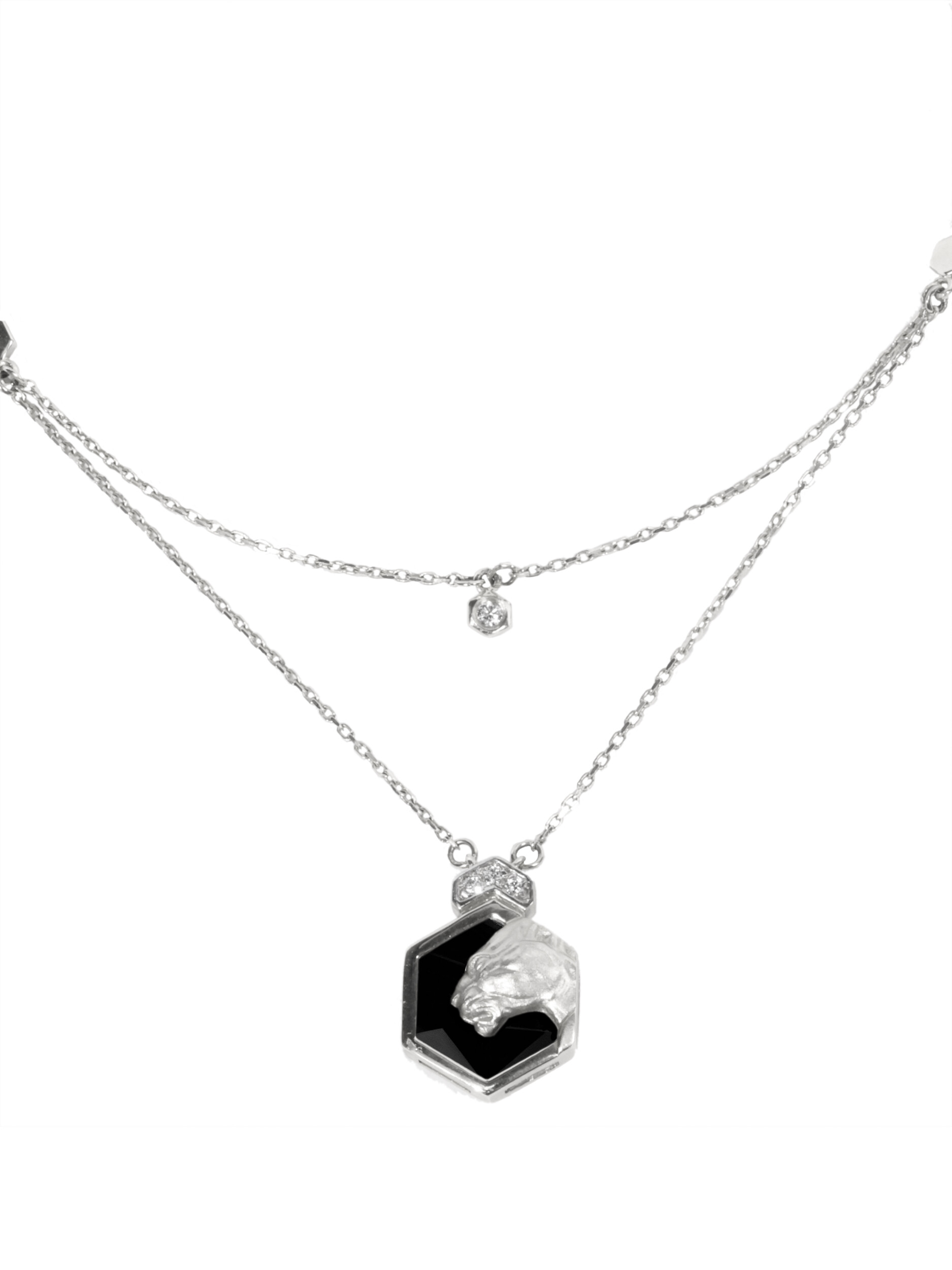 Колье из белого золота 585 пробы c бриллиантами и ониксом