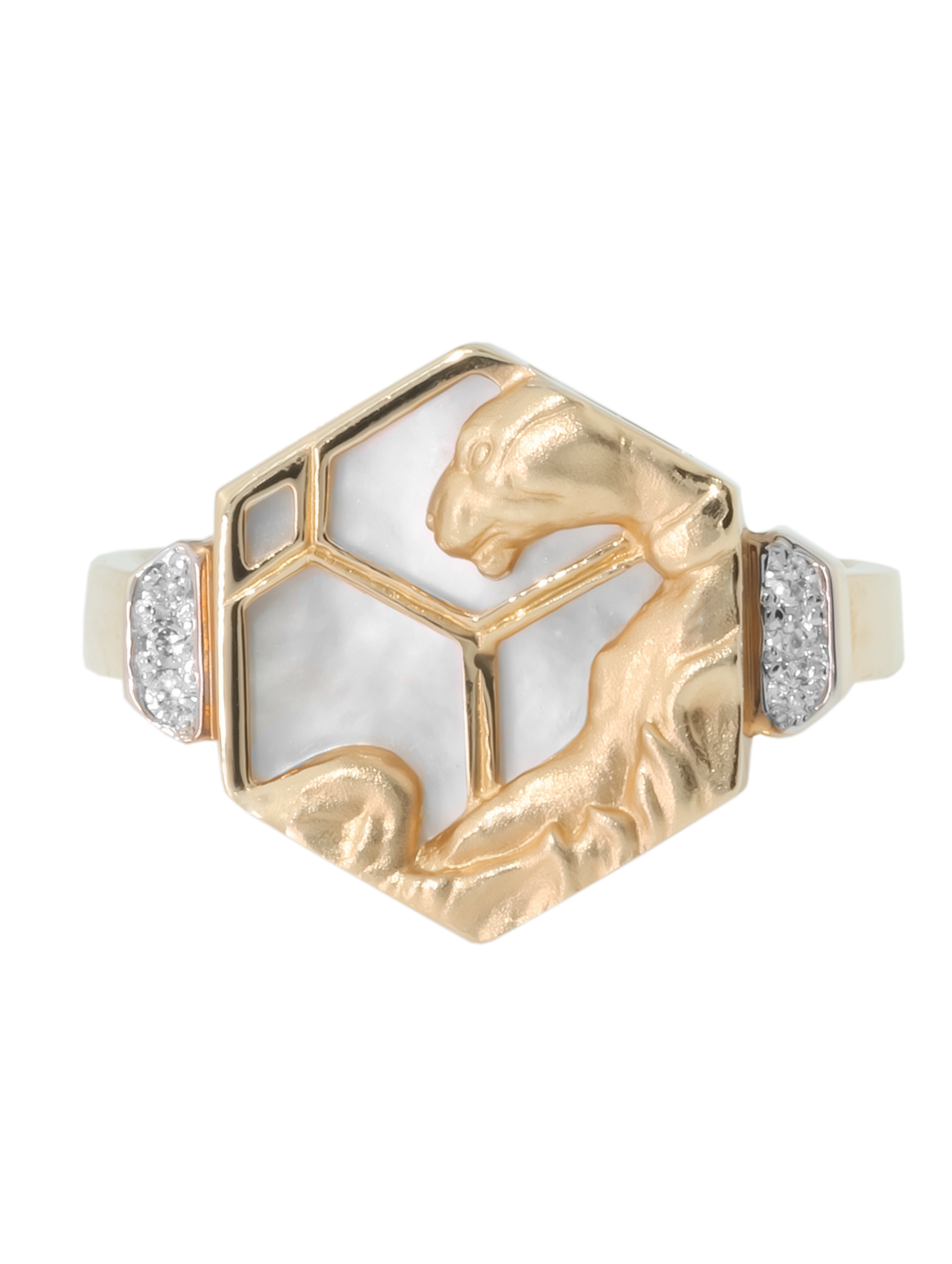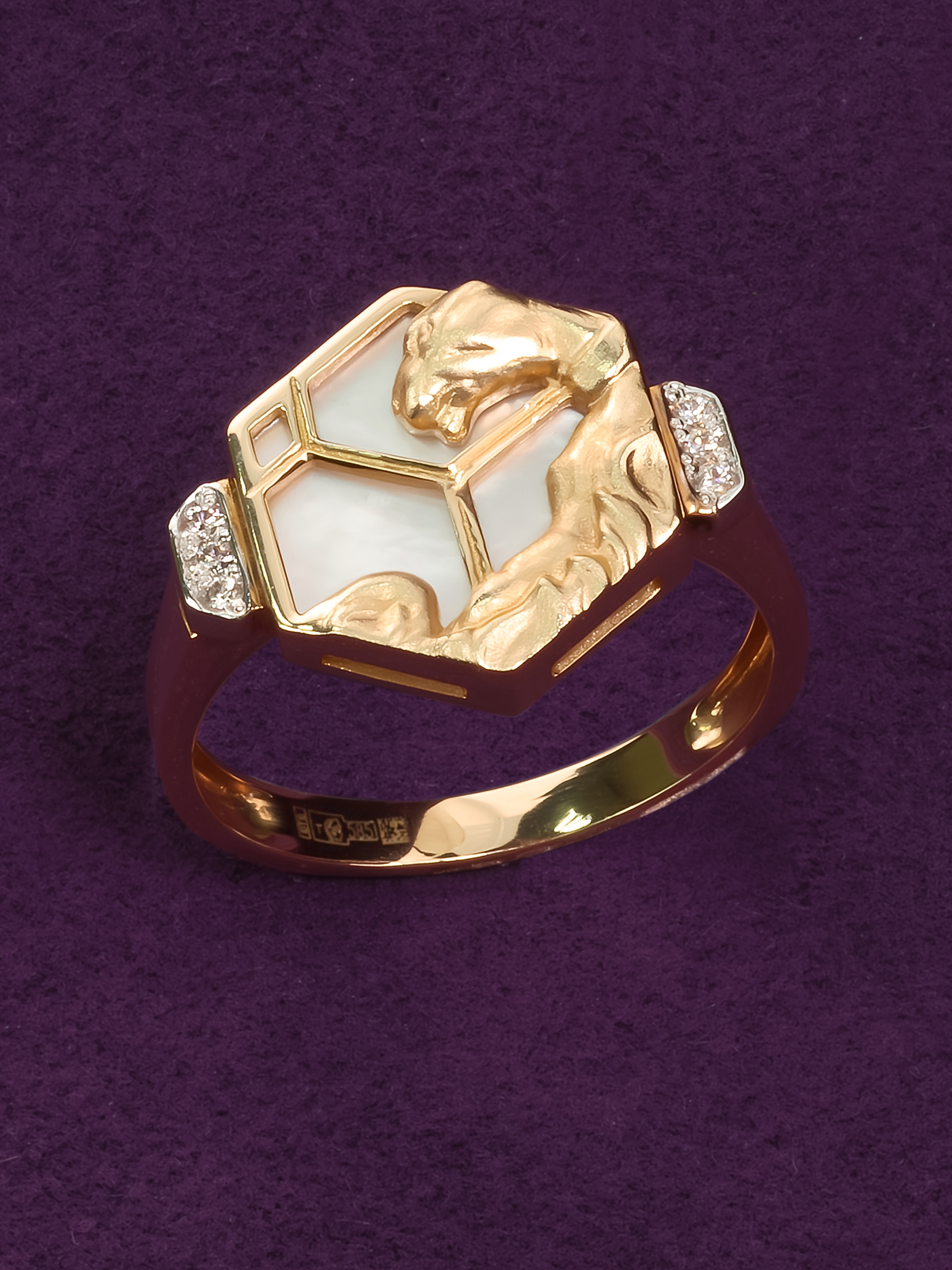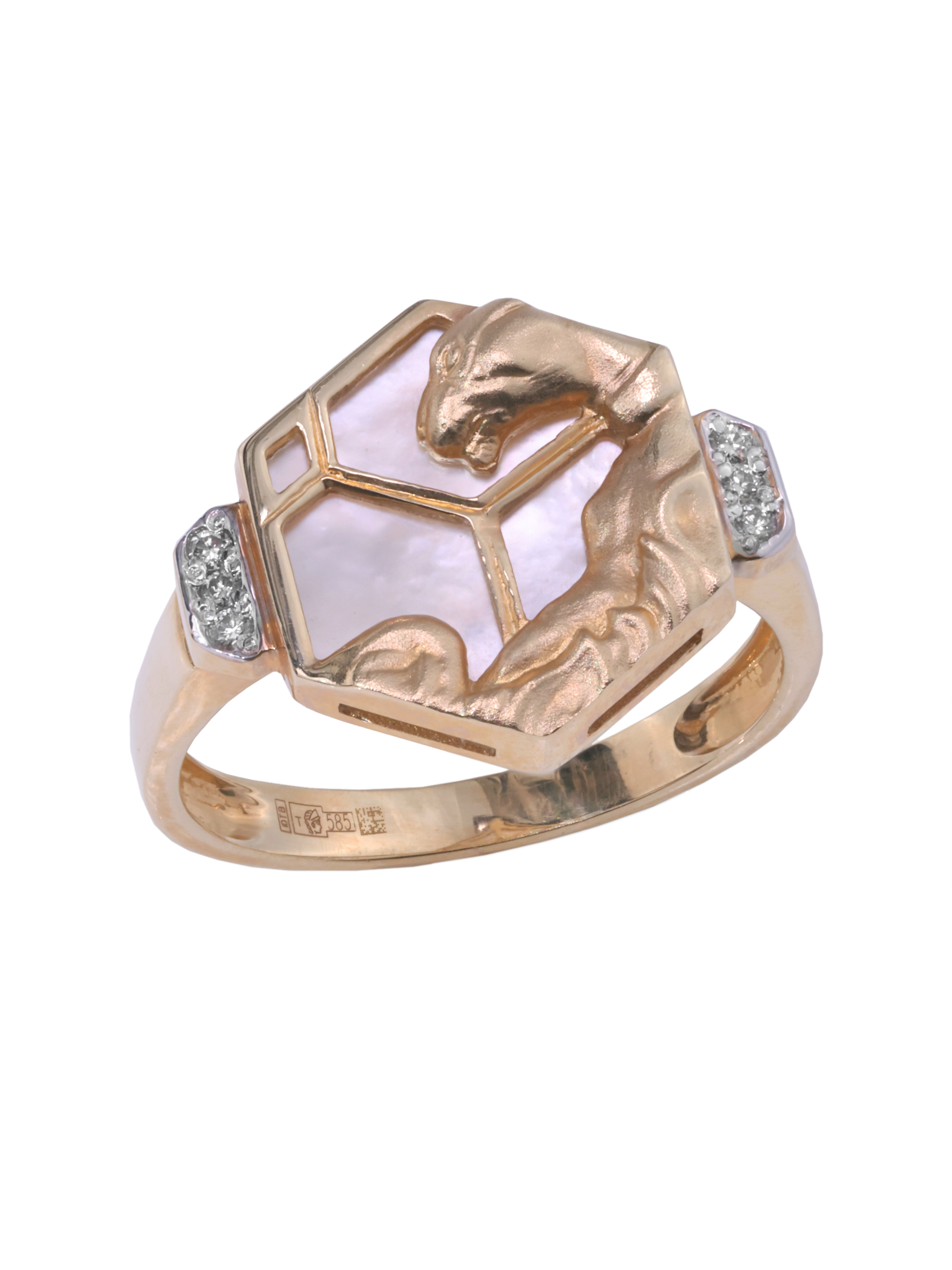 Кольцо из красного золота 585 пробы c бриллиантами и перламутром