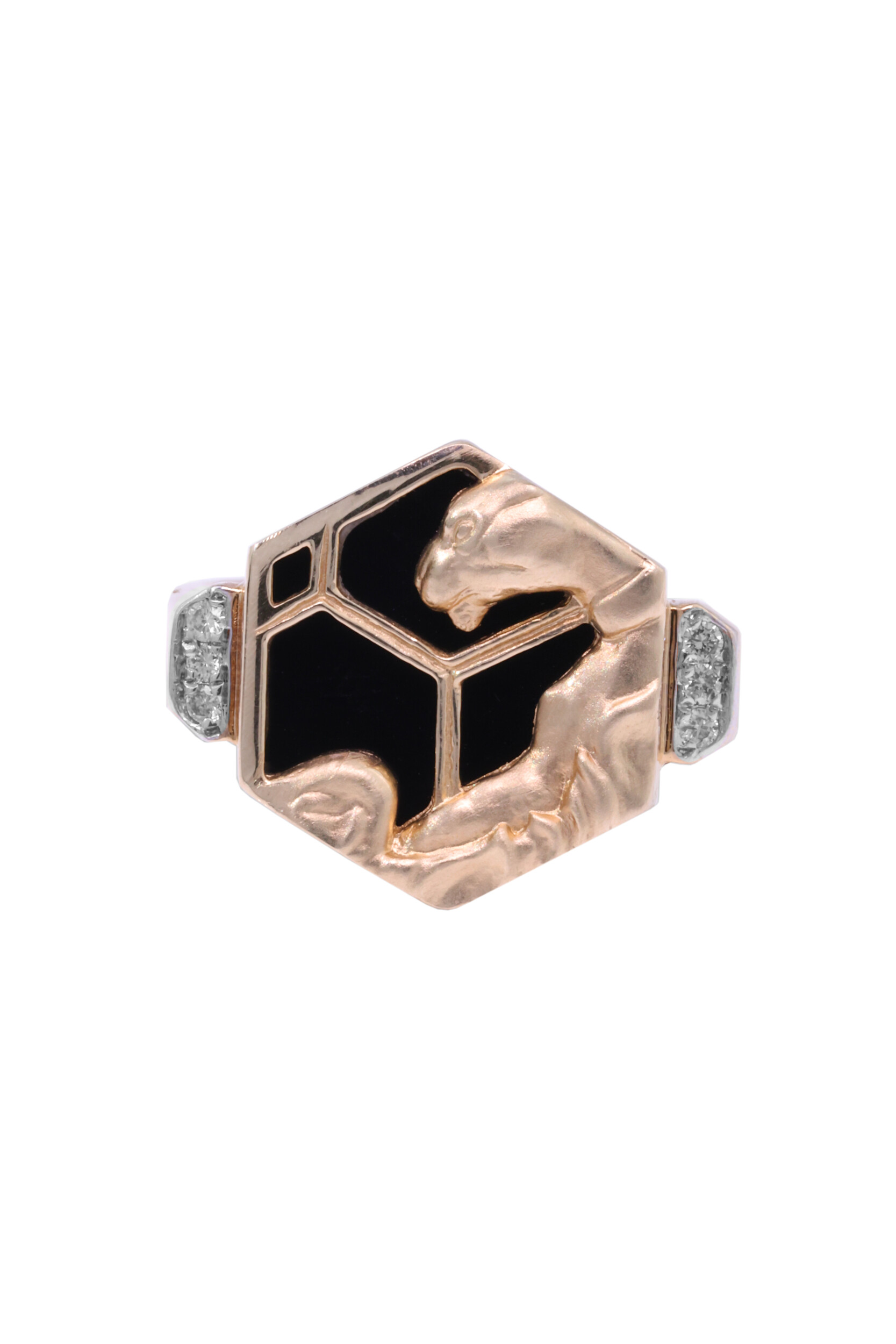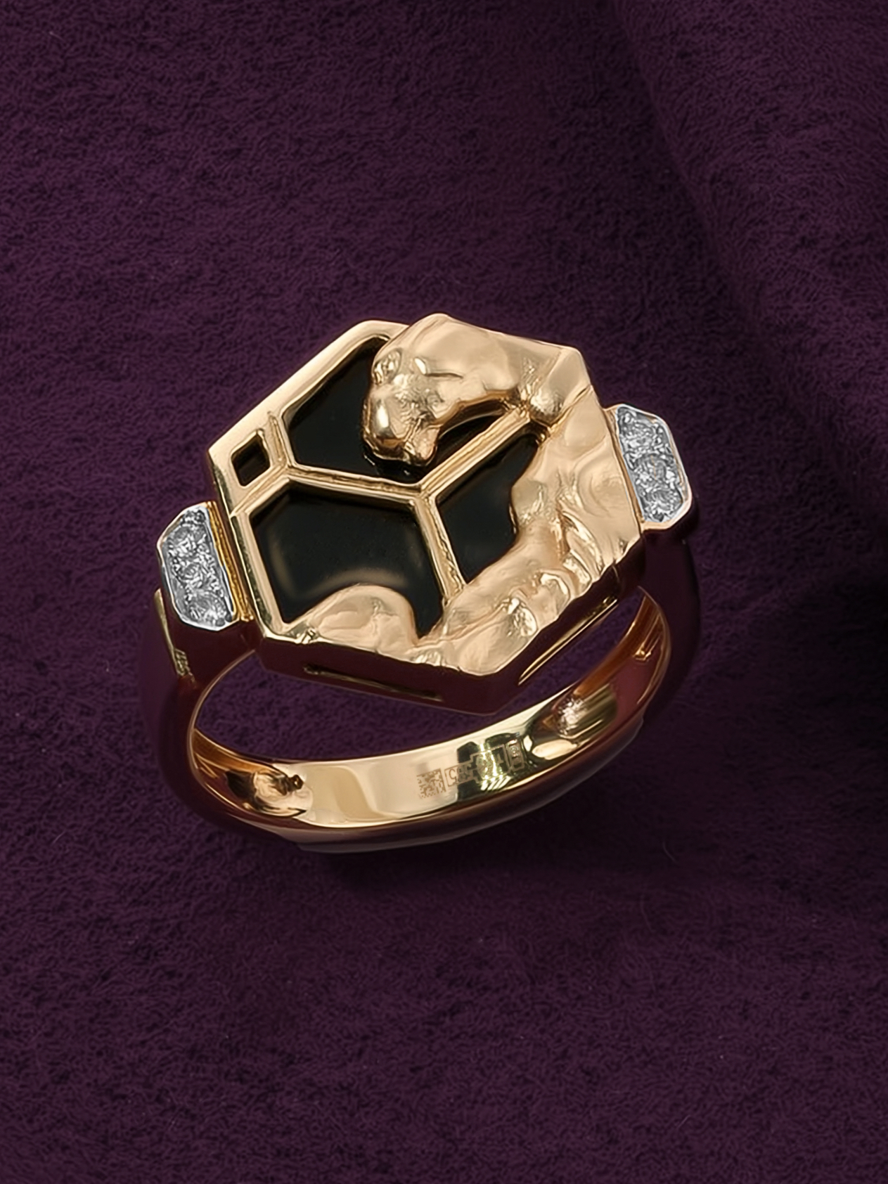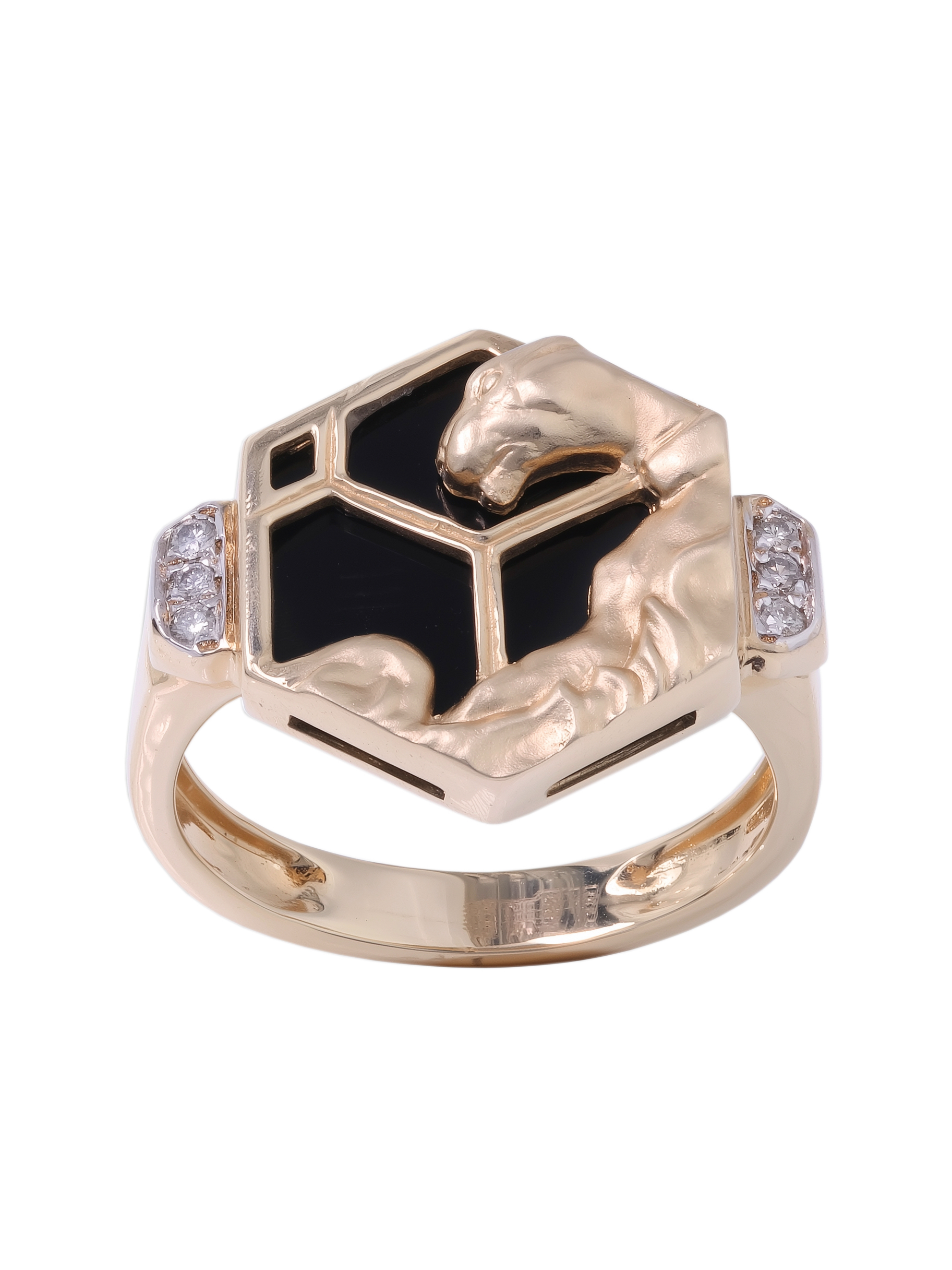 Кольцо из красного золота 585 пробы c бриллиантами и ониксом