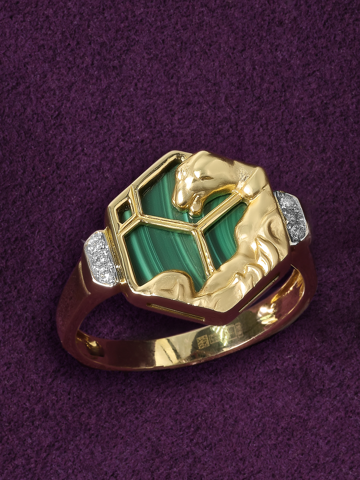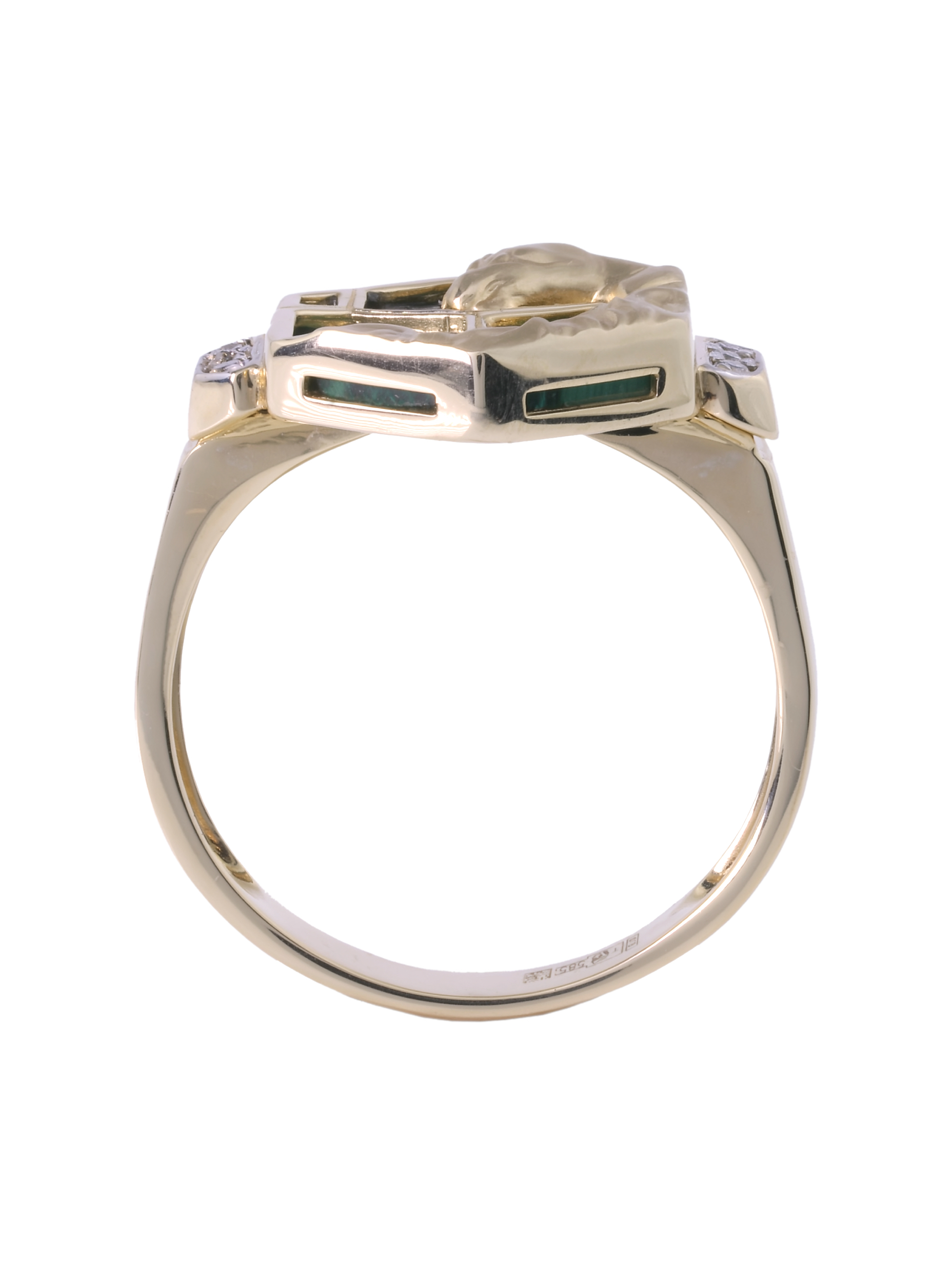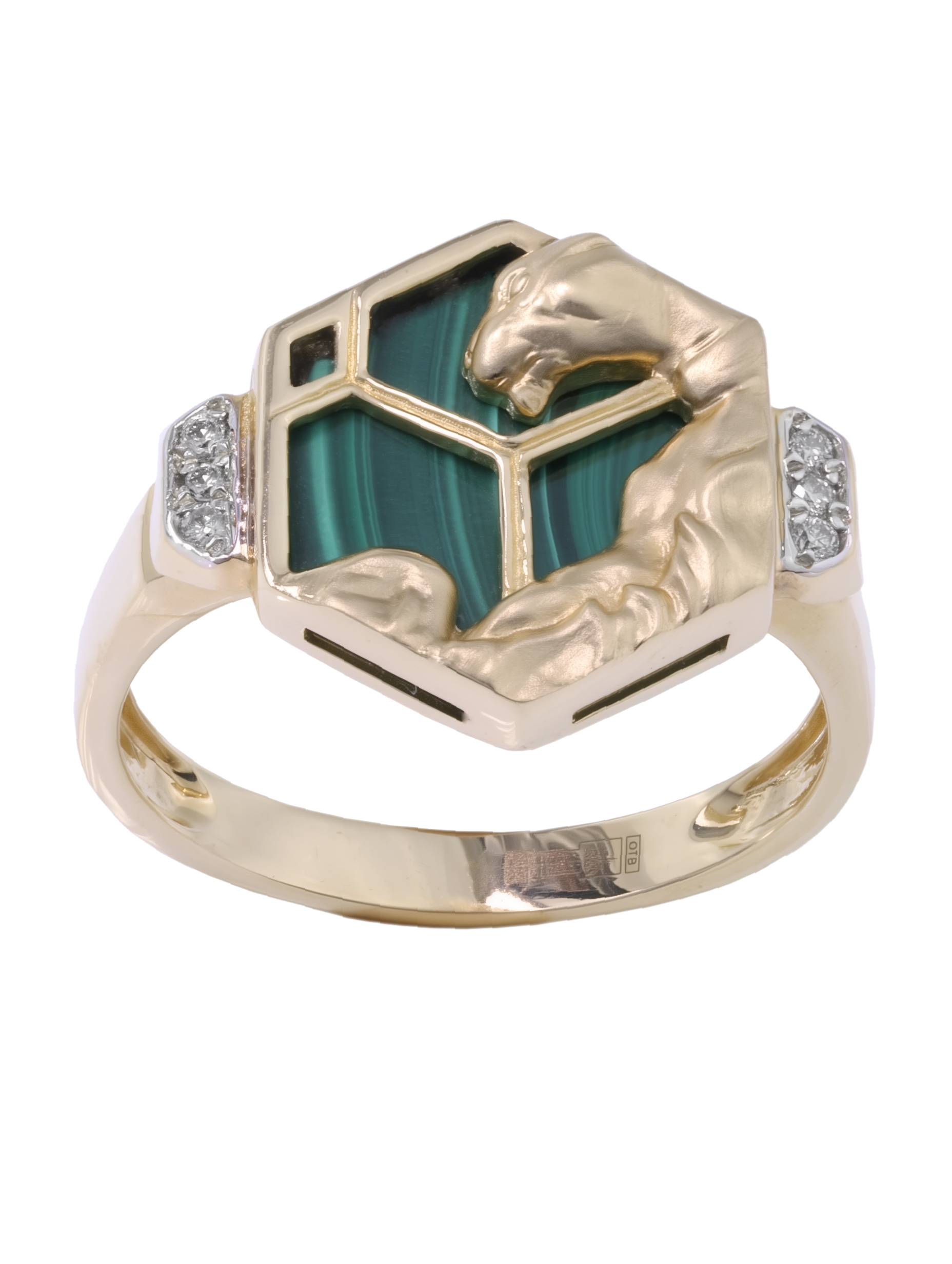 Кольцо из лимонного золота 585 пробы c бриллиантами и малахитом