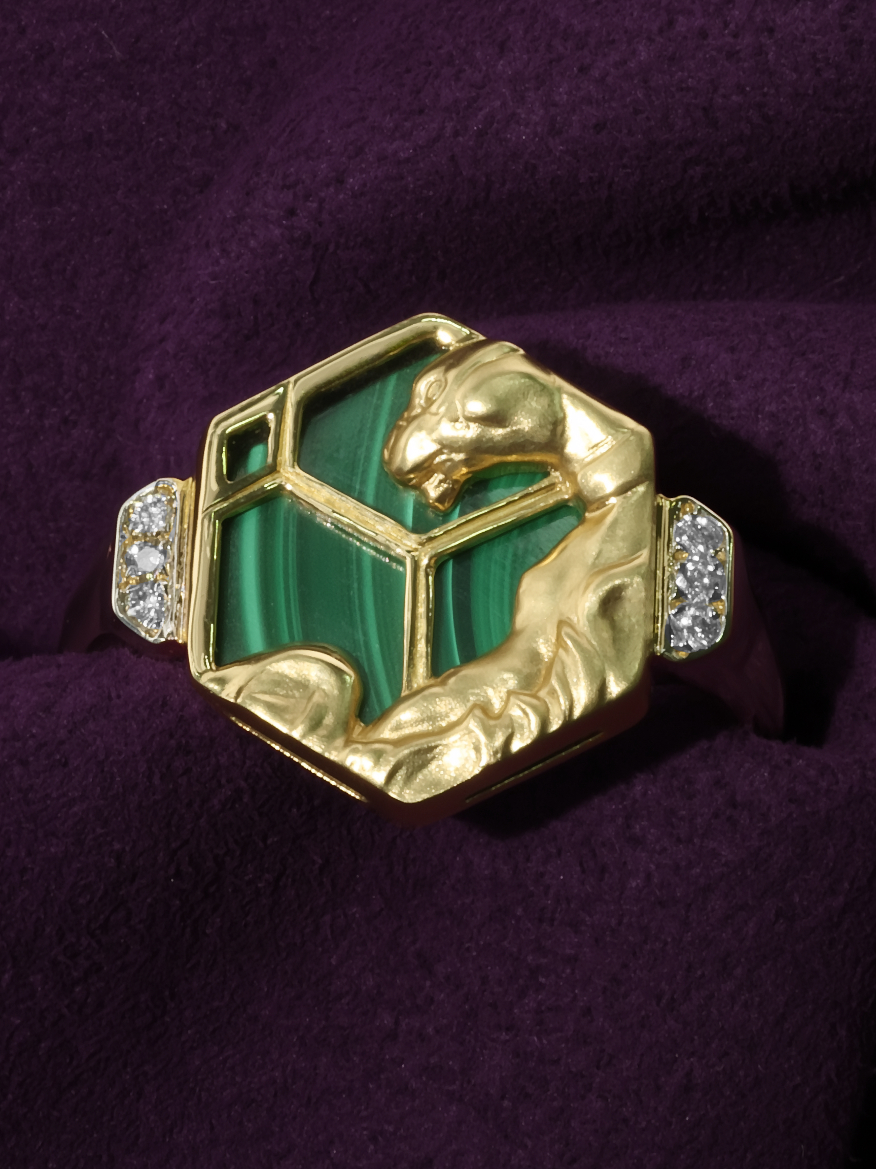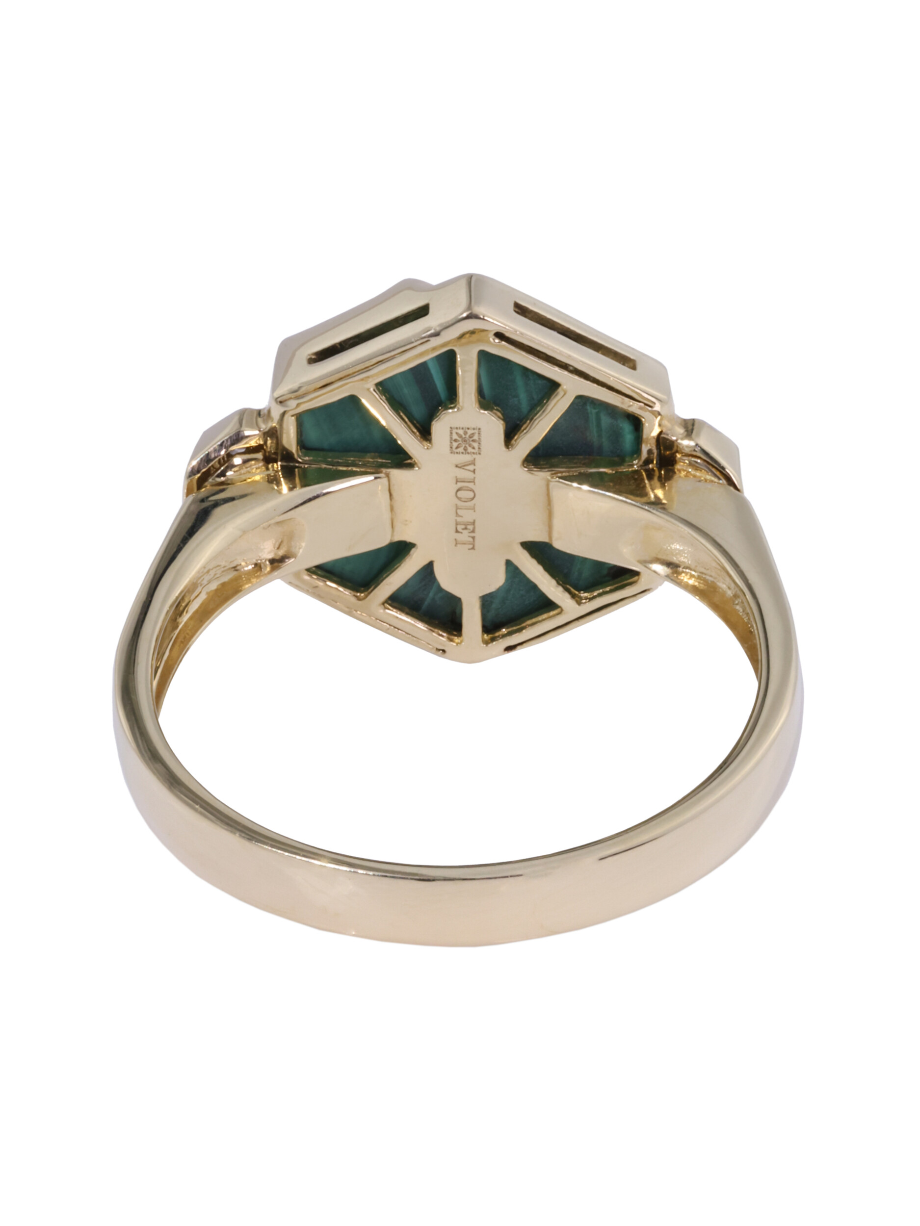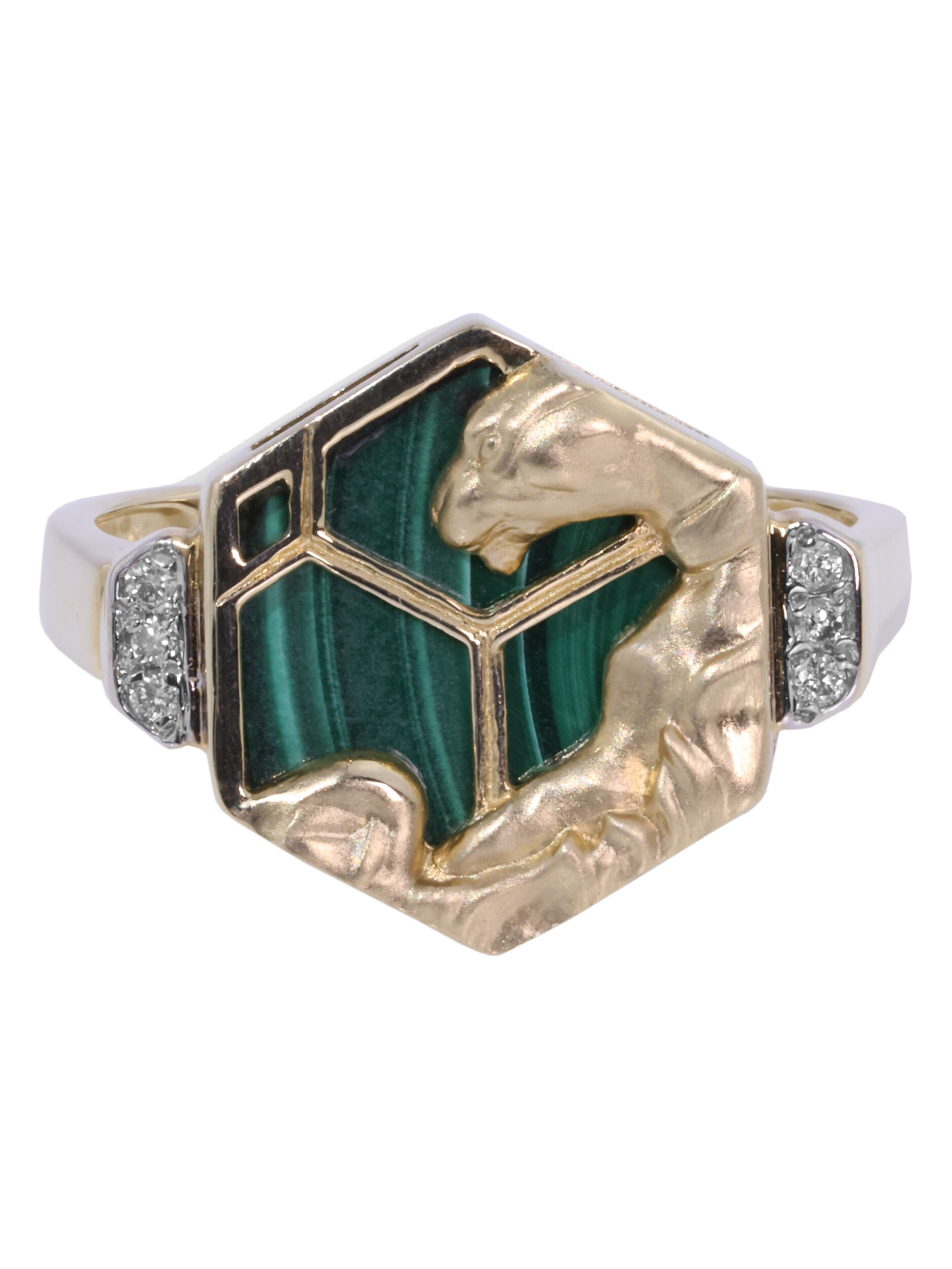 Кольцо из лимонного золота 585 пробы c бриллиантами и малахитом