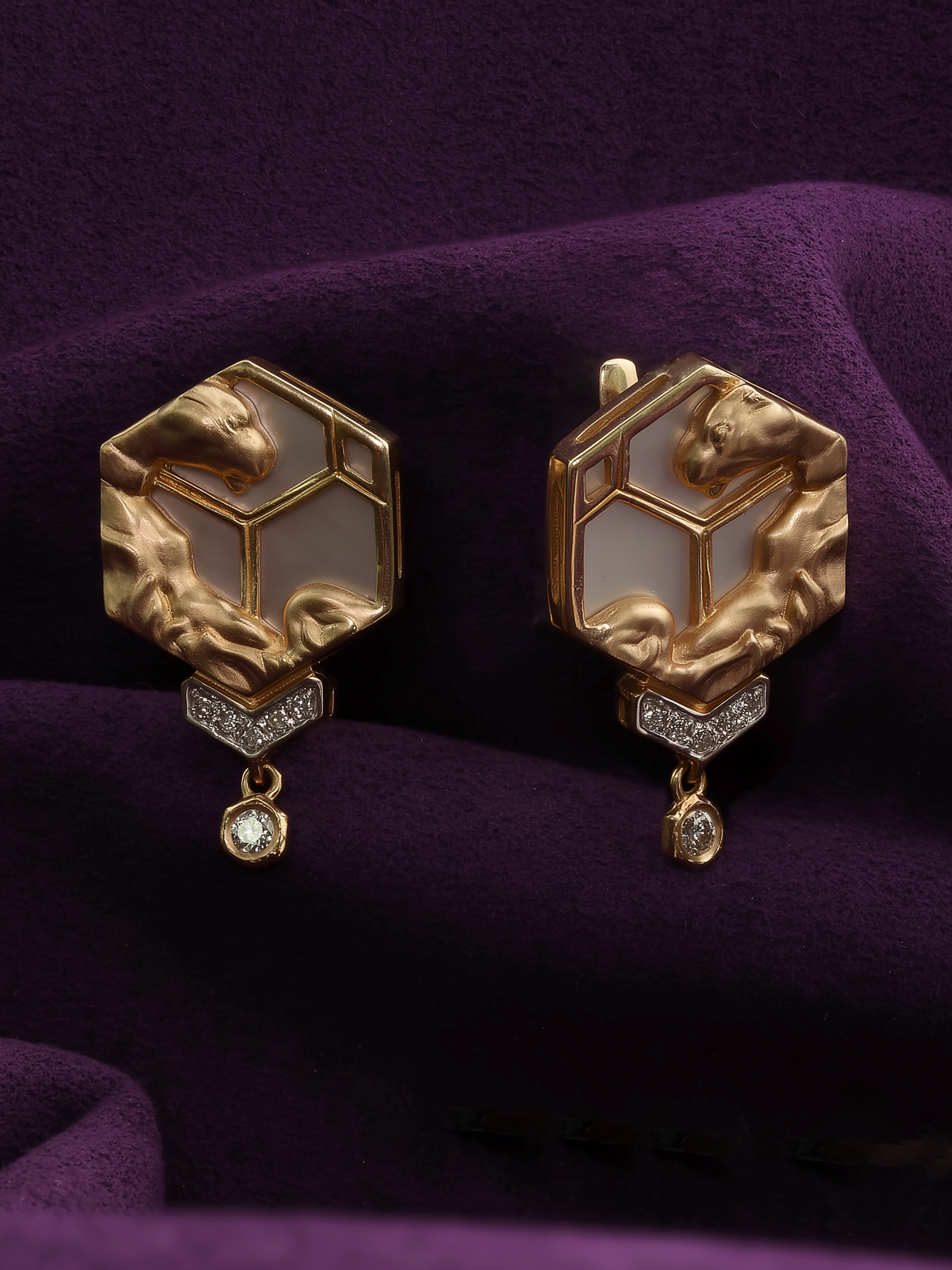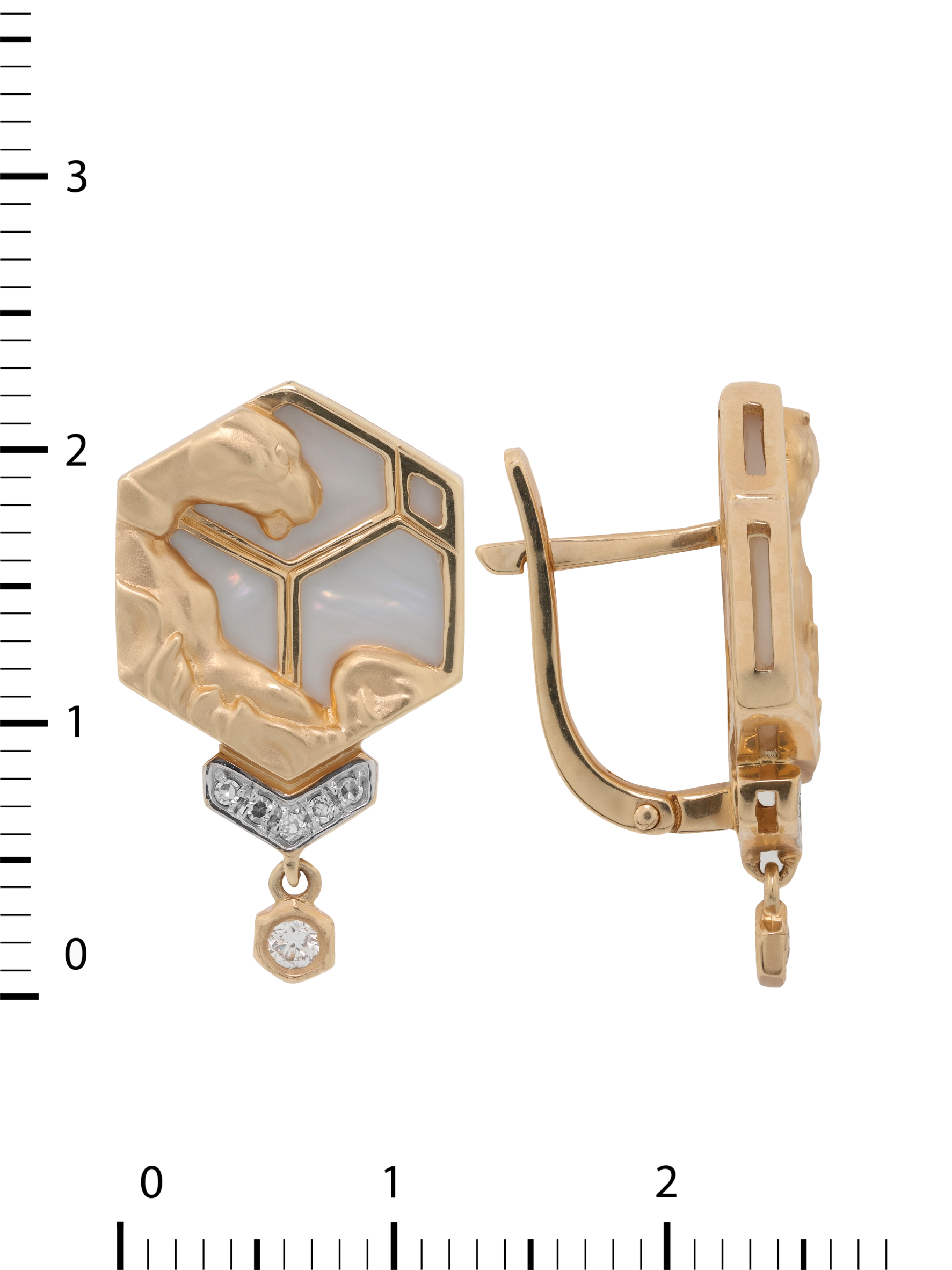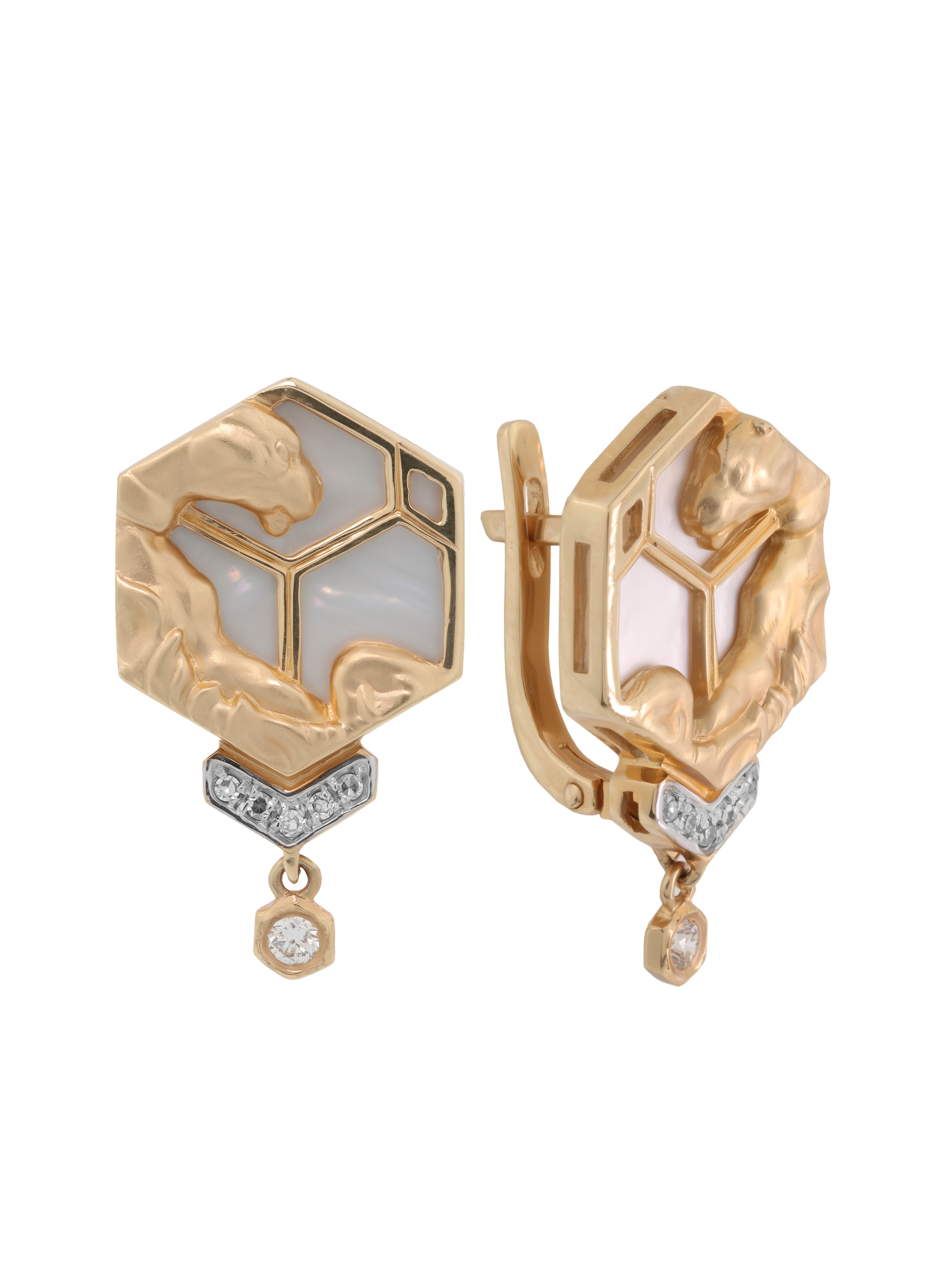 Серьги из красного золота 585 пробы c бриллиантами и перламутром