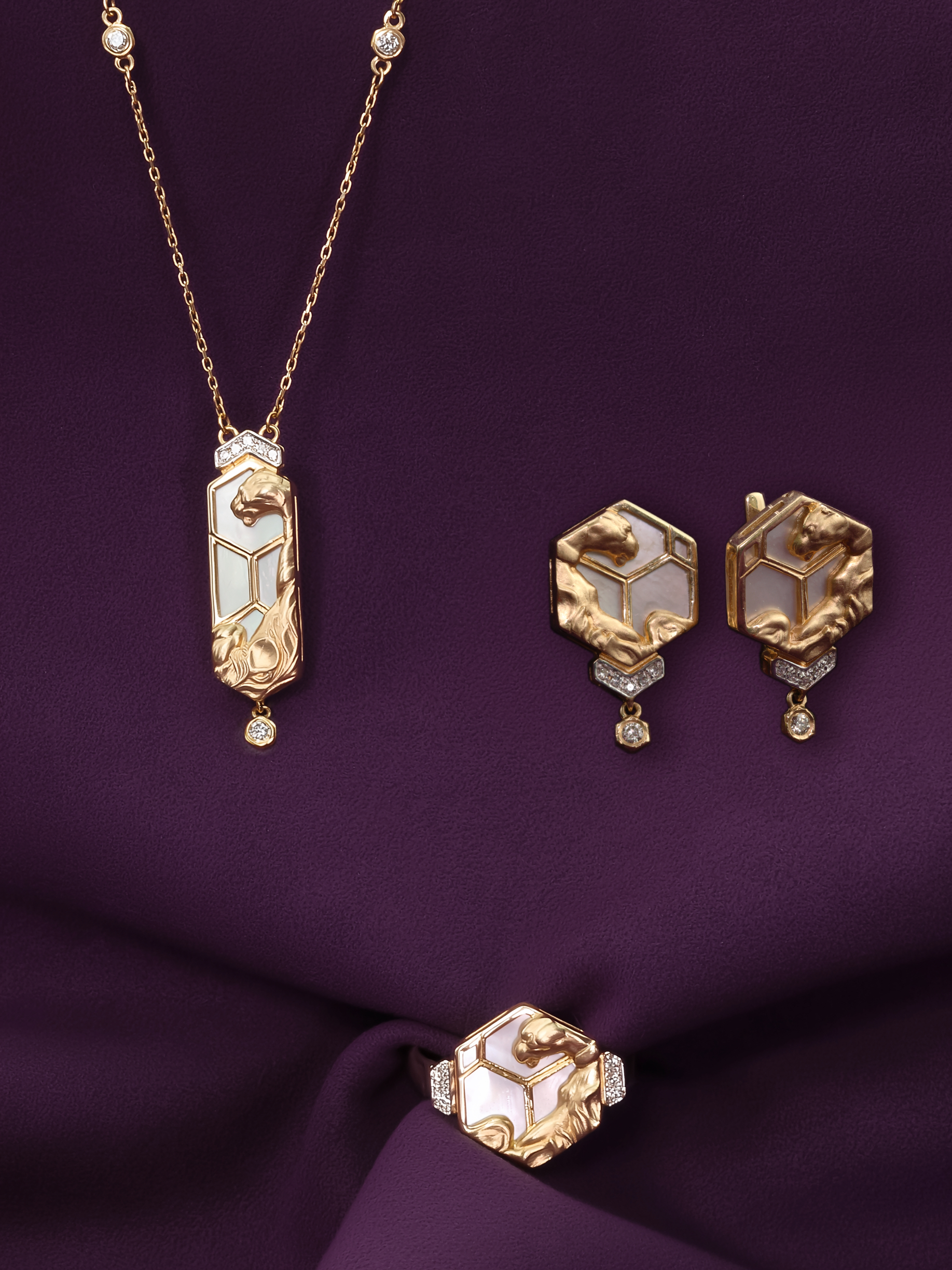 Колье из красного золота 585 пробы c бриллиантами и перламутром