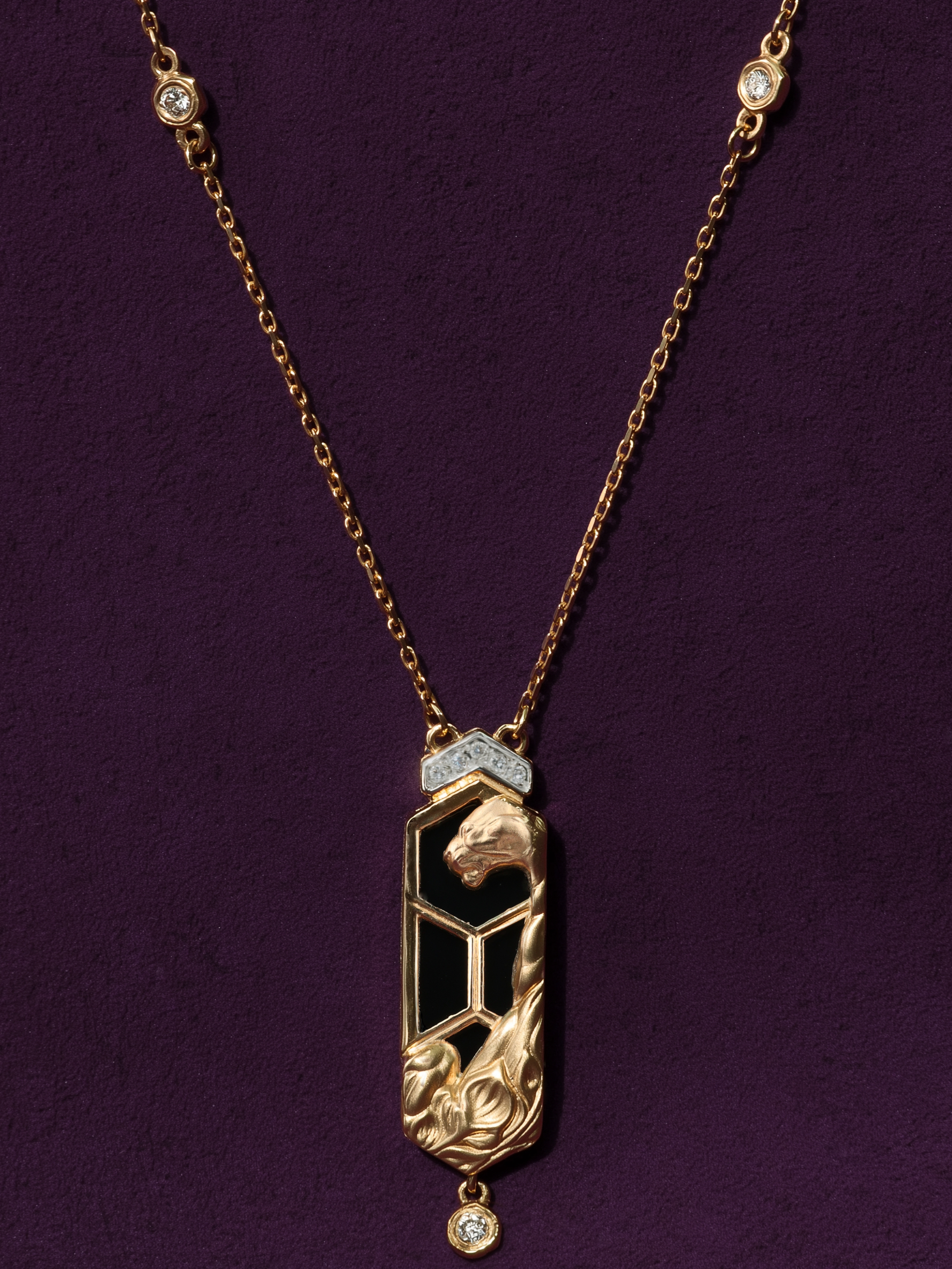 Колье из красного золота 585 пробы c бриллиантами и ониксом