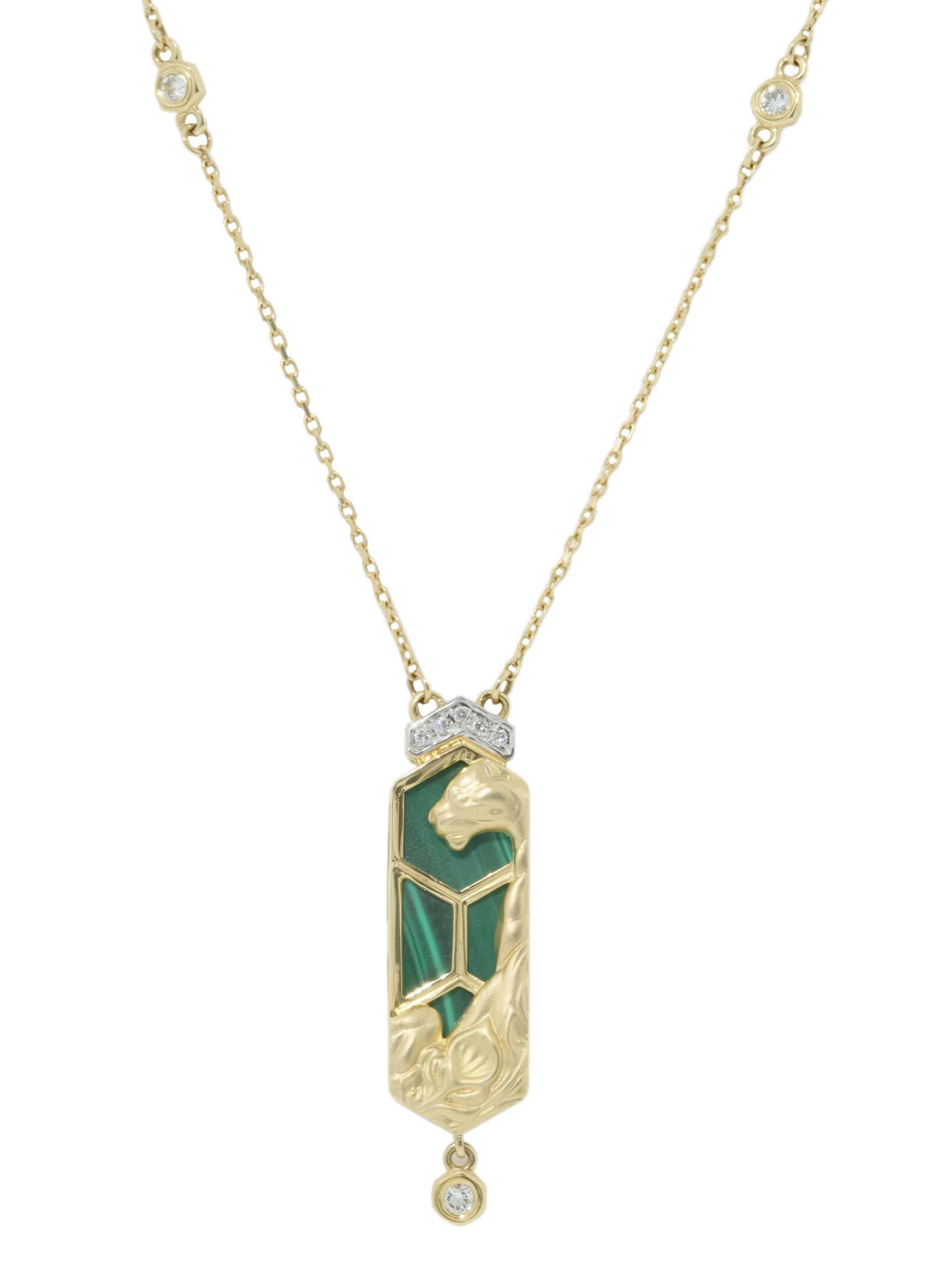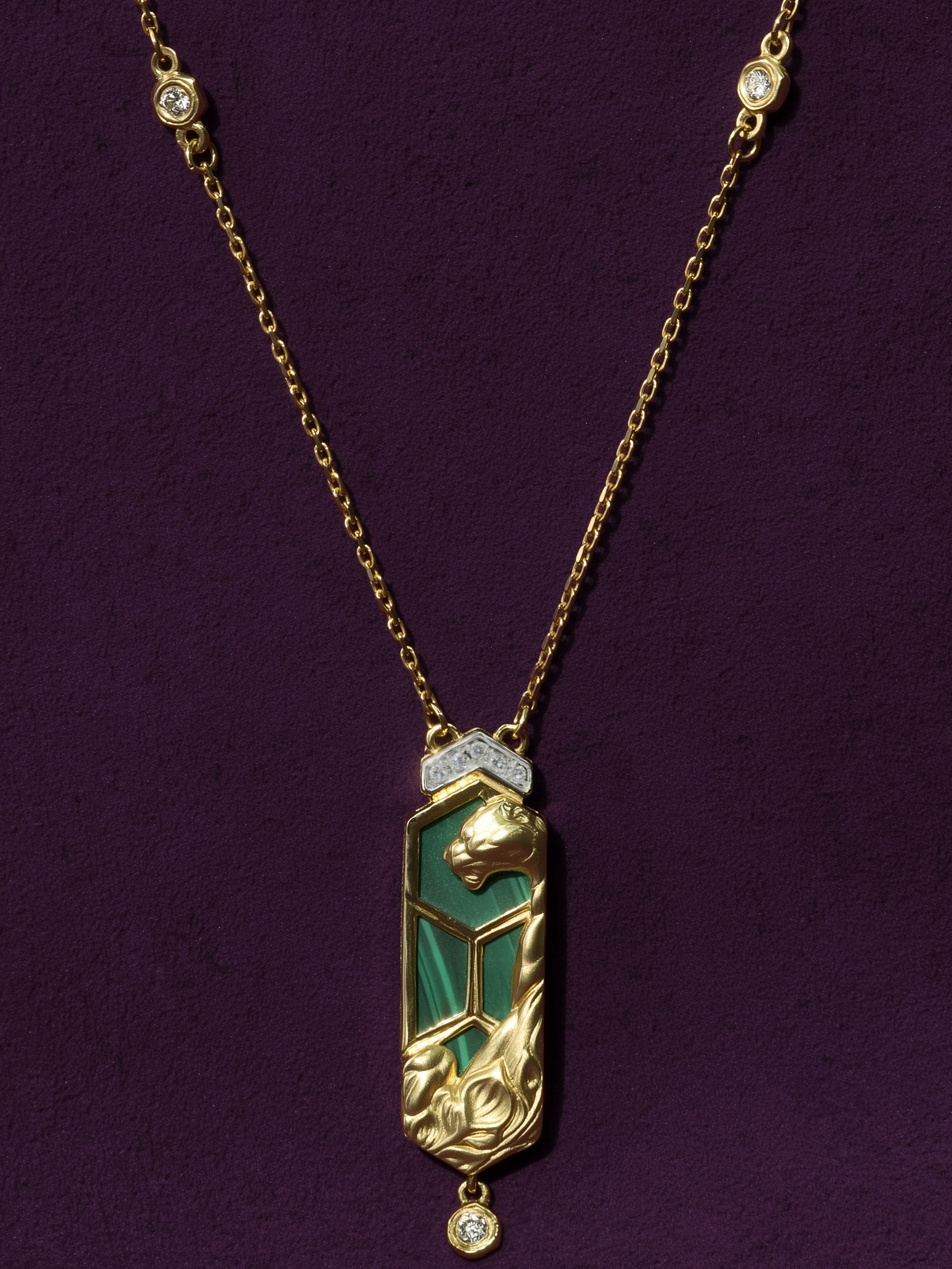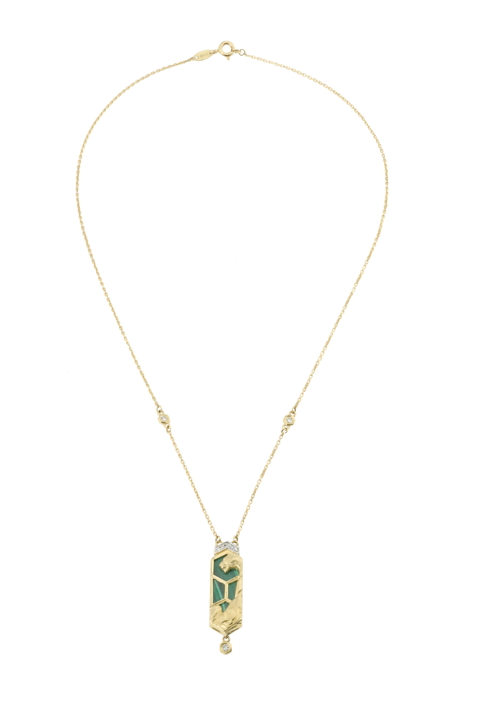 Колье из лимонного золота 585 пробы c бриллиантами и малахитом
