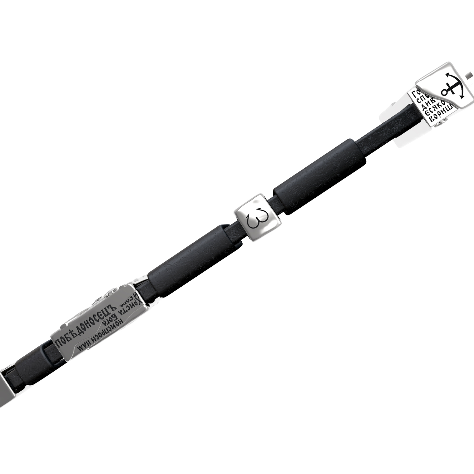 Браслет из белого золота 585 пробы c кожаным шнурком