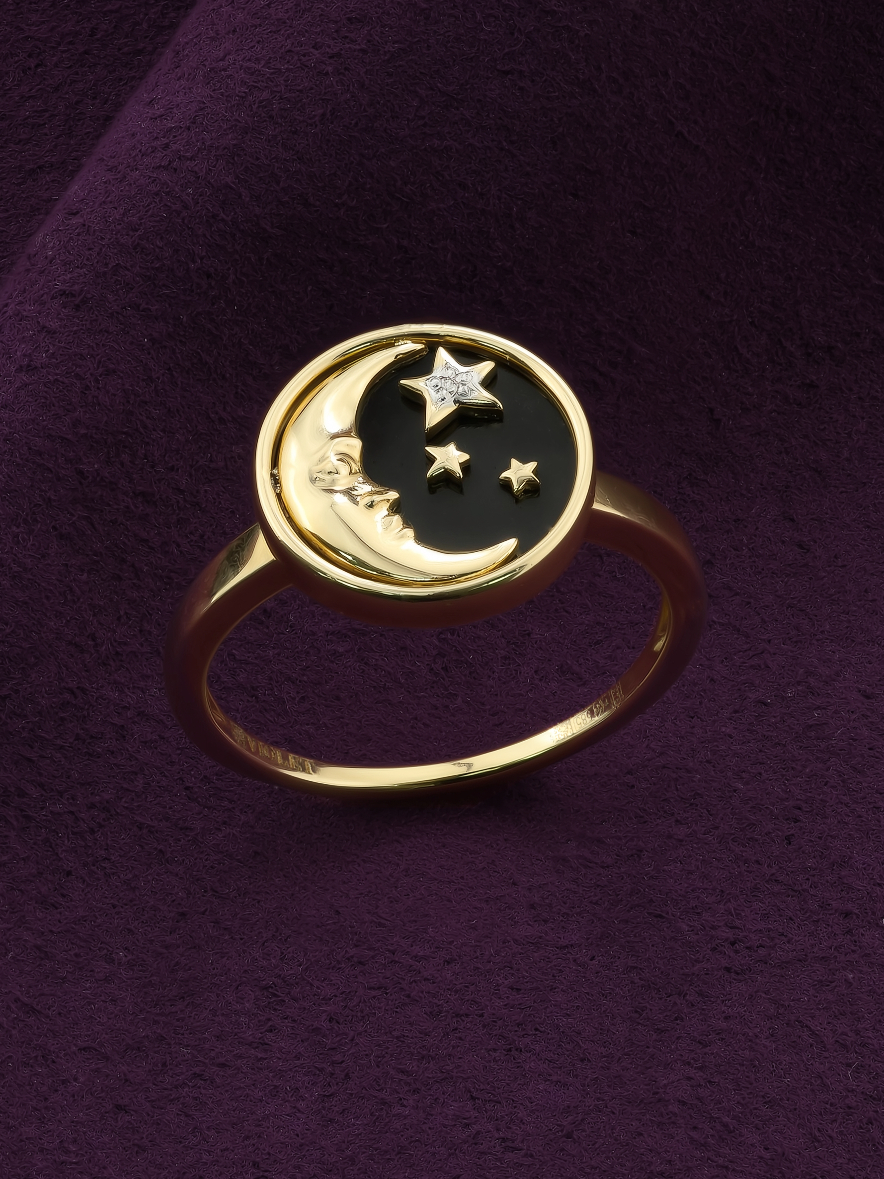 Кольцо из лимонного золота 585 пробы c бриллиантами и ониксом
