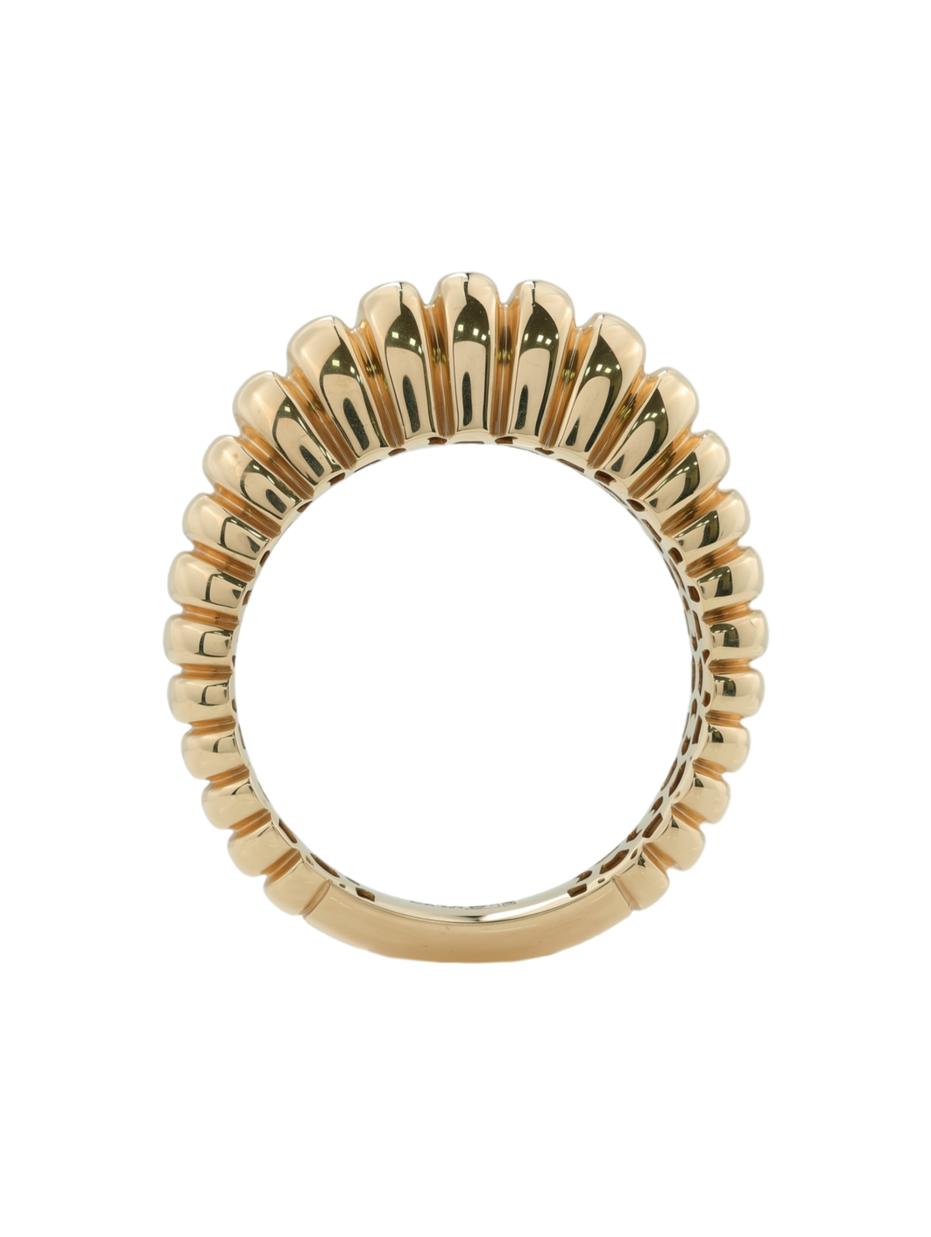 Кольцо из золота — это воплощение современного стиля и уверенности, которое станет ключевым акцентом вашего образа. Изделие выполнено из благородного красного золота 585 пробы, что обеспечивает украшению долговечность и глубокий, теплый оттенок. Дизайн модели отличается оригинальной фактурой в виде рельефных шипов, которая придает украшению дерзкий и выразительный характер.
