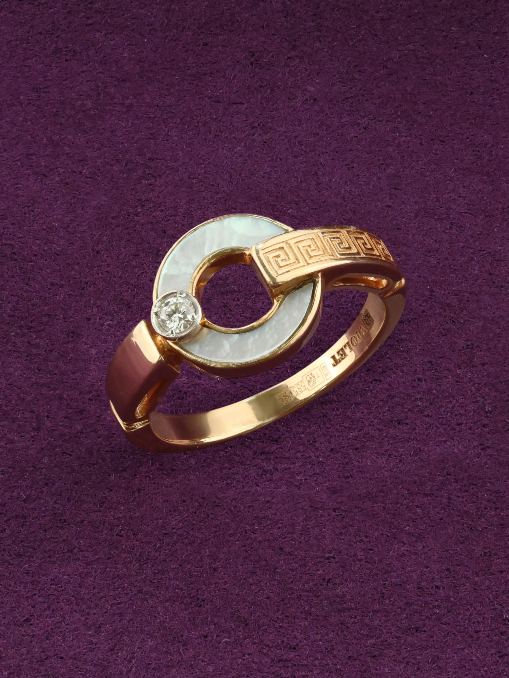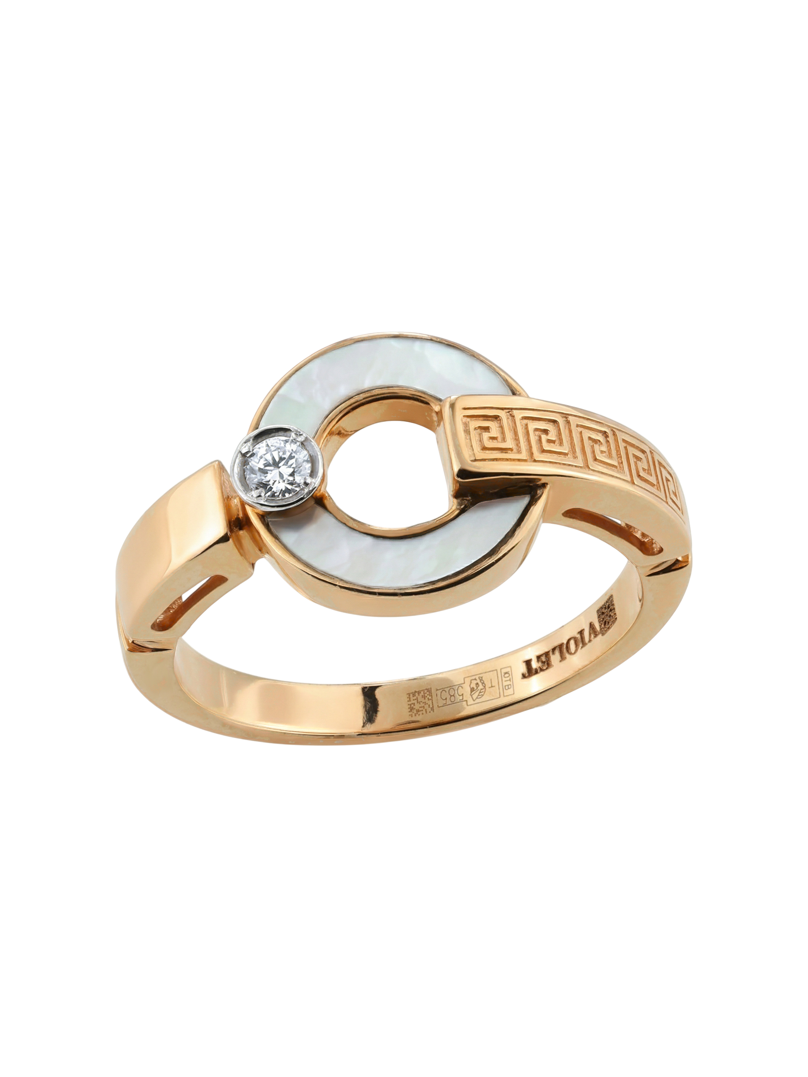 Кольцо из красного золота 585 пробы c бриллиантами и перламутром