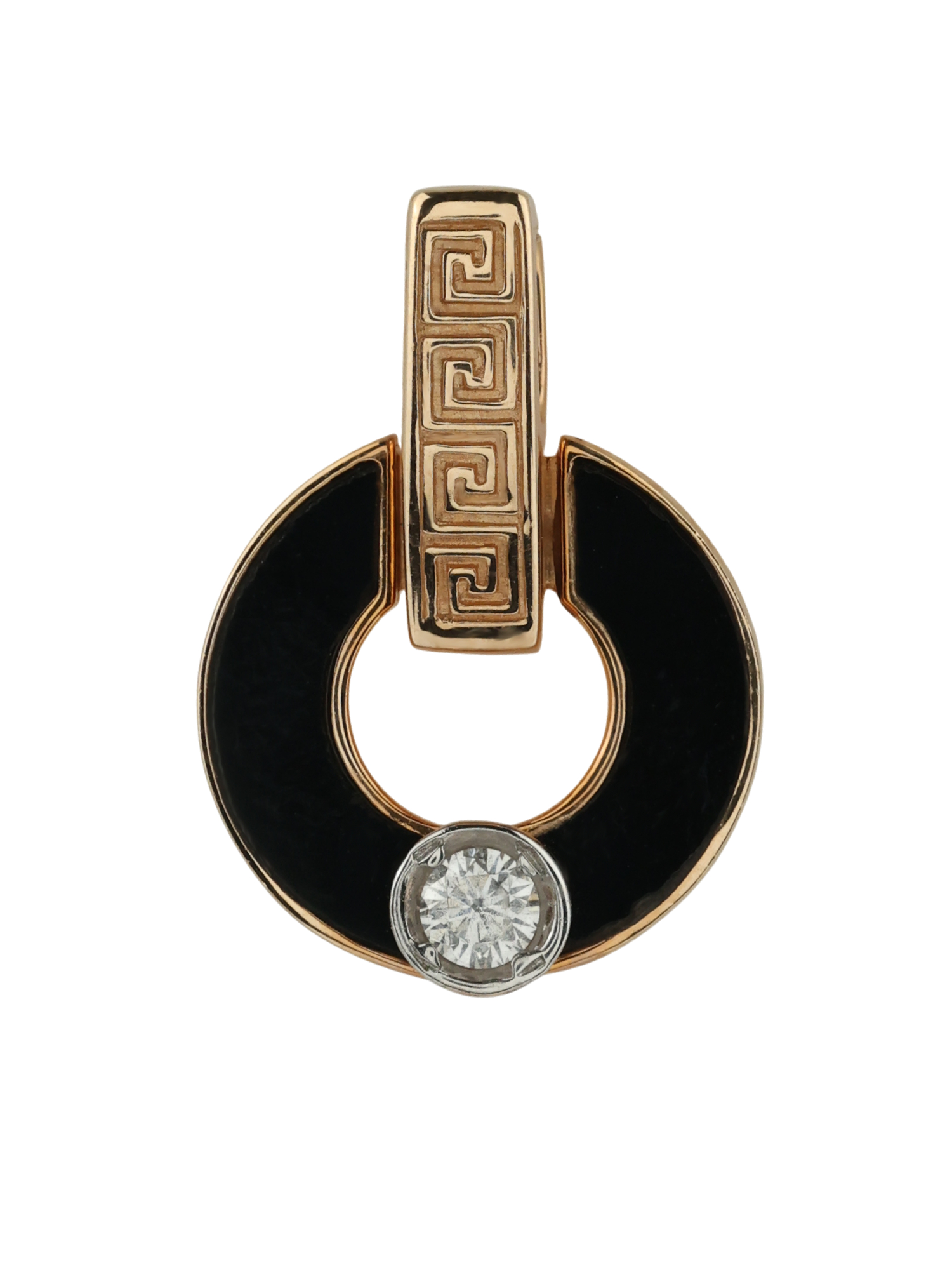 Подвеска из красного золота 585 пробы c бриллиантами и ониксом