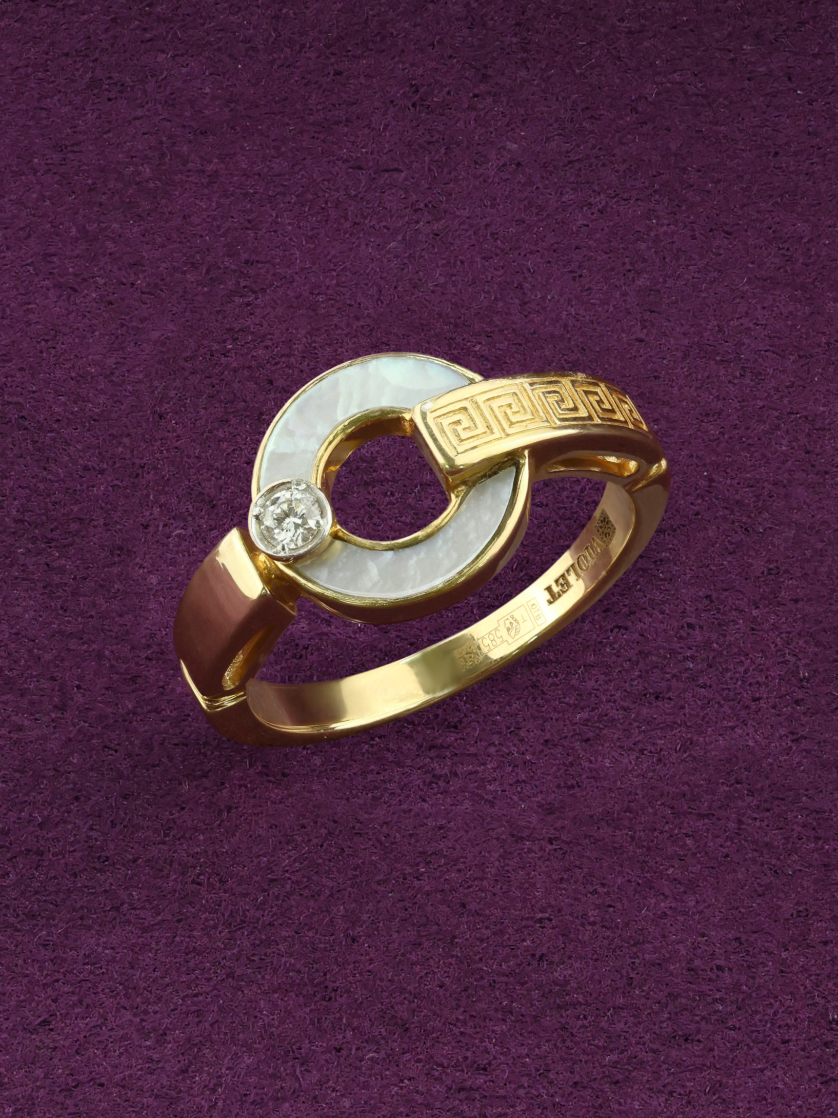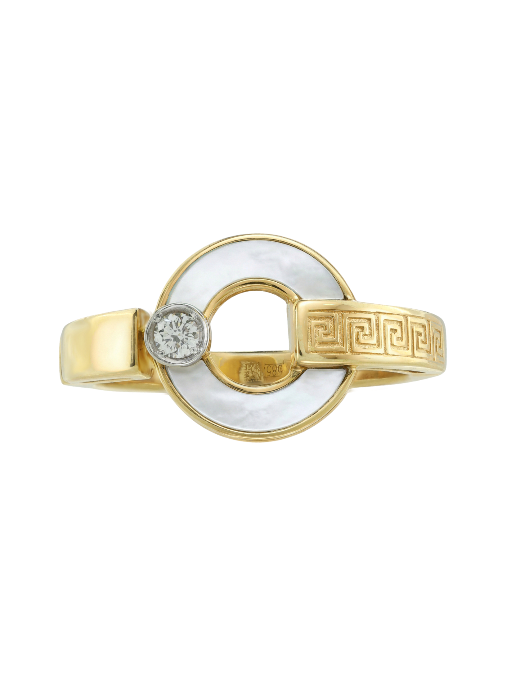 Кольцо из лимонного золота 585 пробы c бриллиантами и перламутром