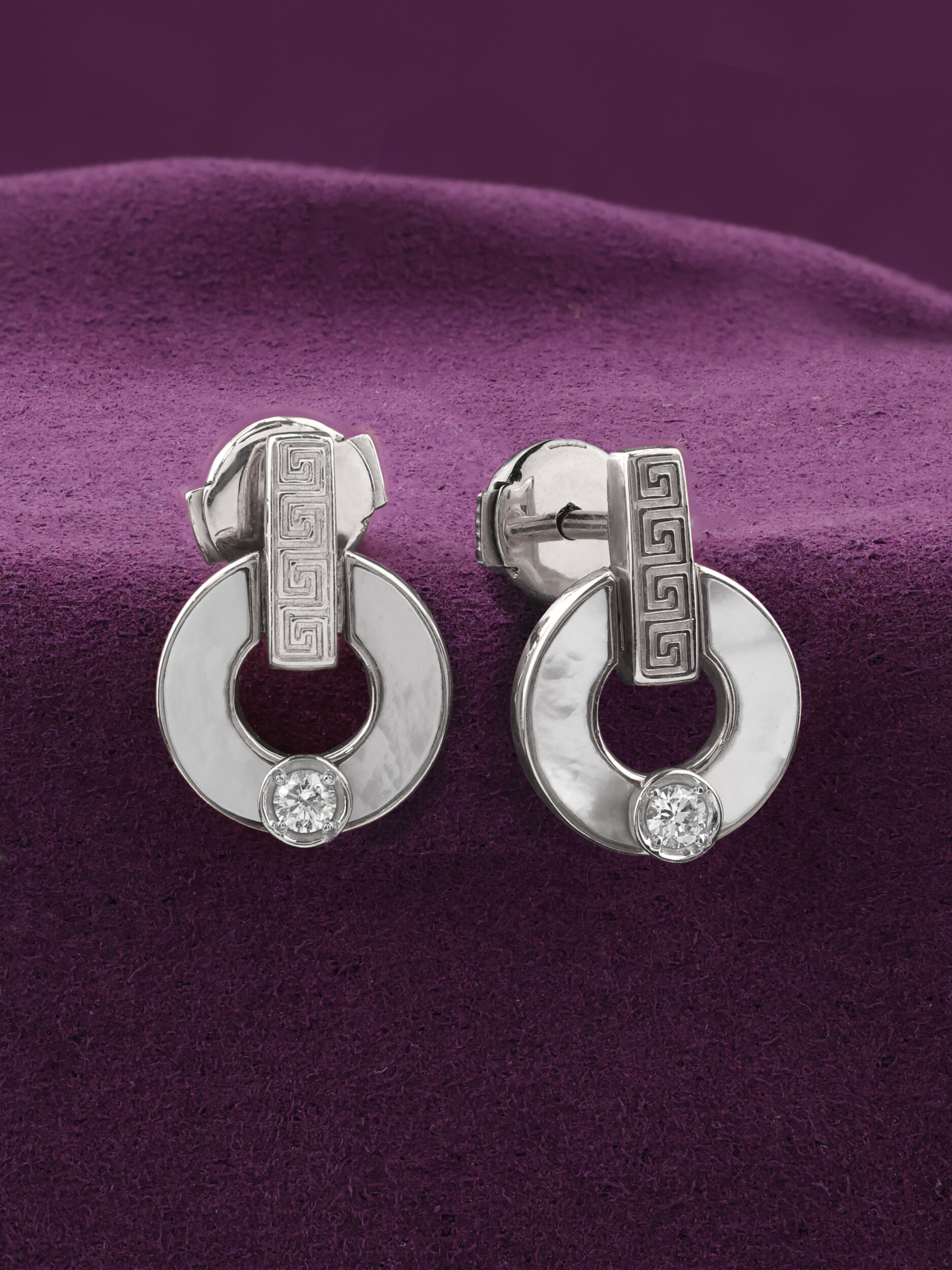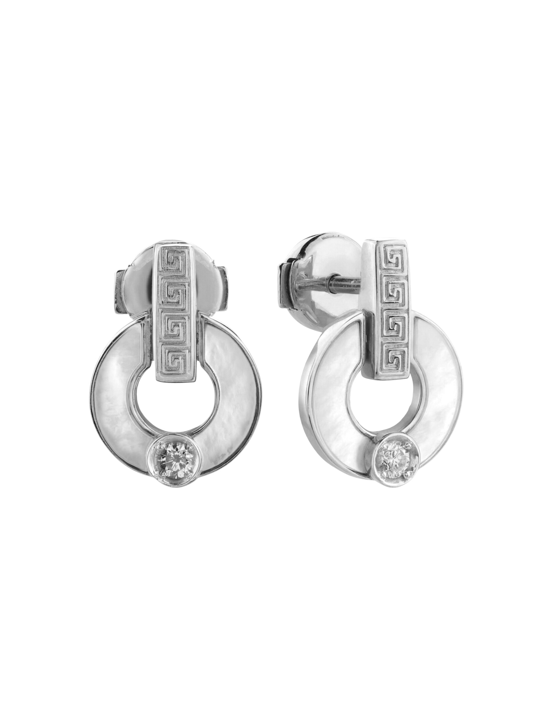 Серьги из белого золота 585 пробы c бриллиантами и перламутром