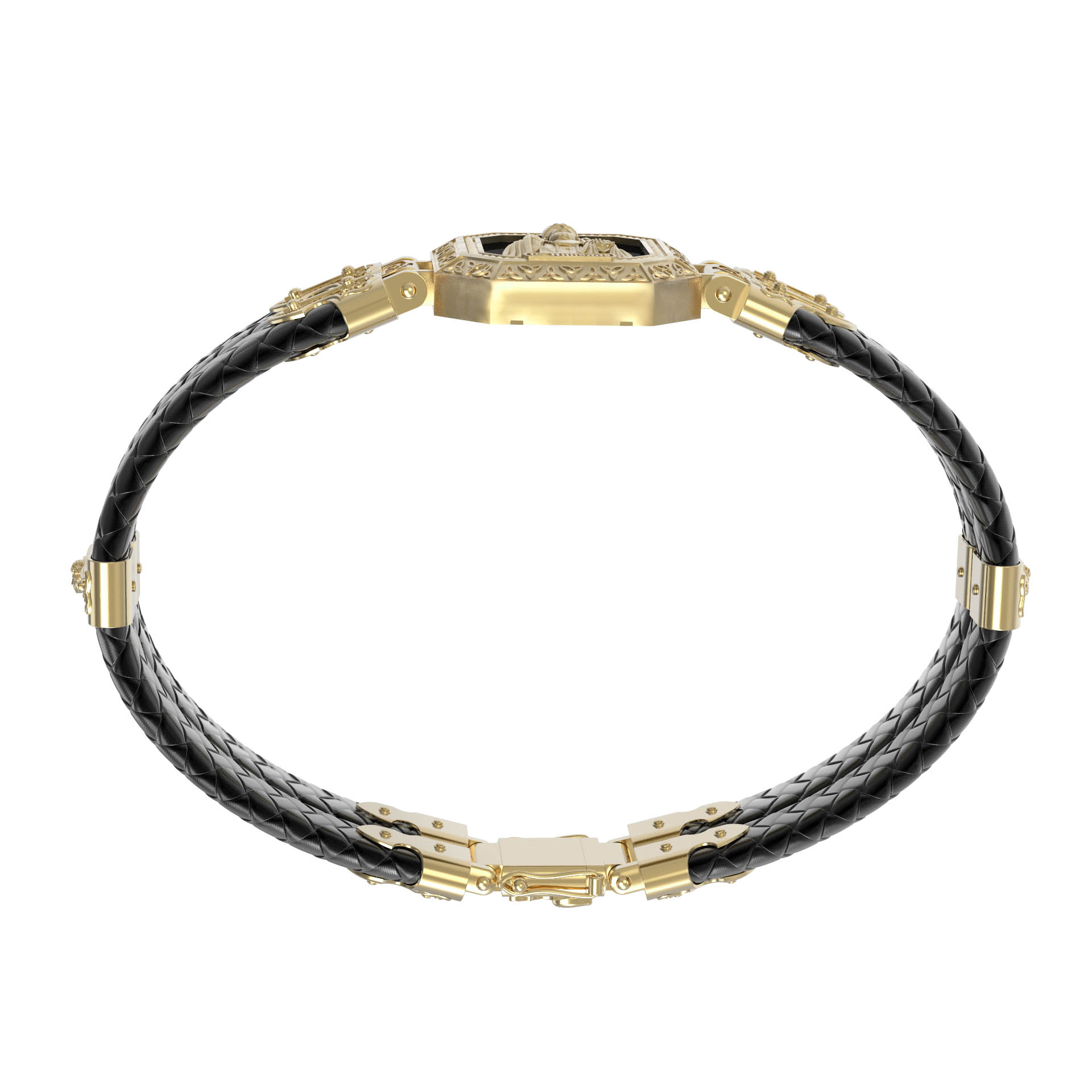 Браслет из лимонного золота c шнурком и ониксом
